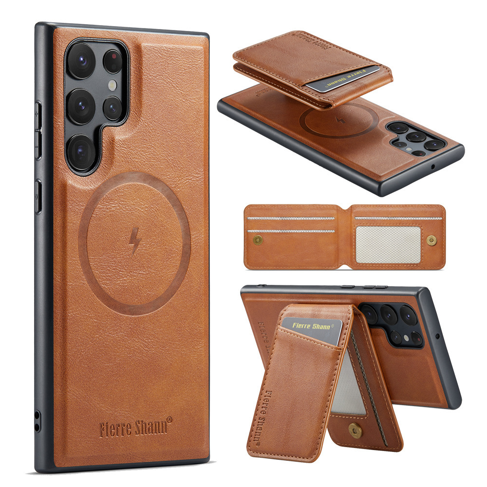 Support Magsafe wireless magnetic charging leather card holder case For iPhone