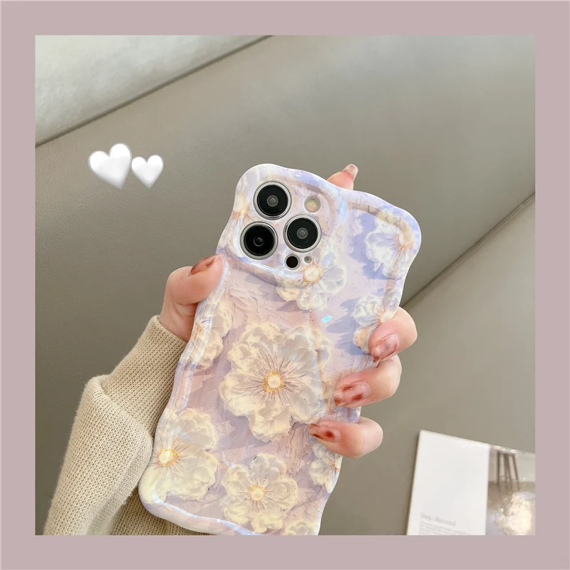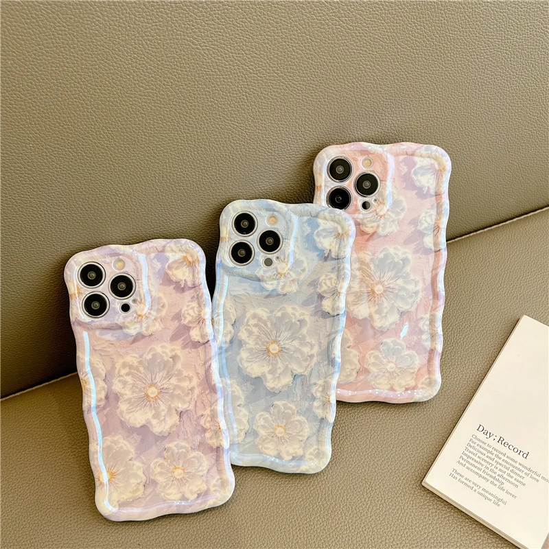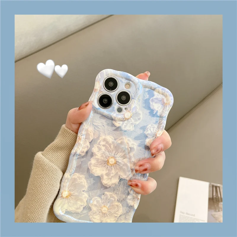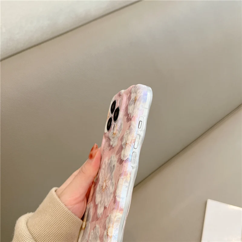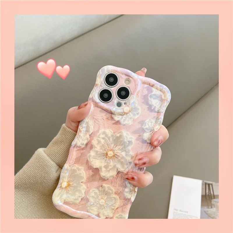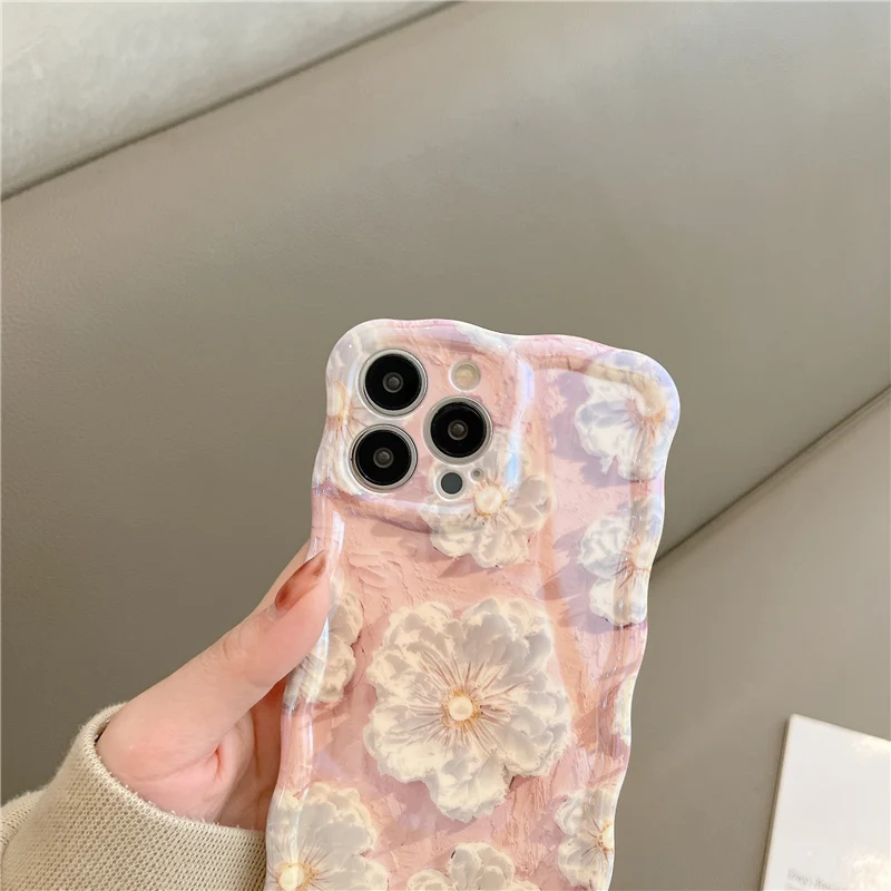 Twisted edge oil painting flower silicone shockproof case for iPhone
