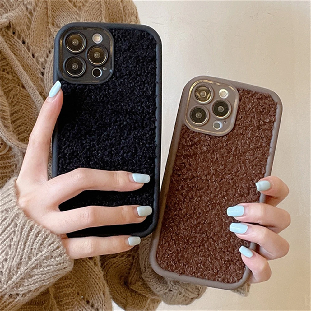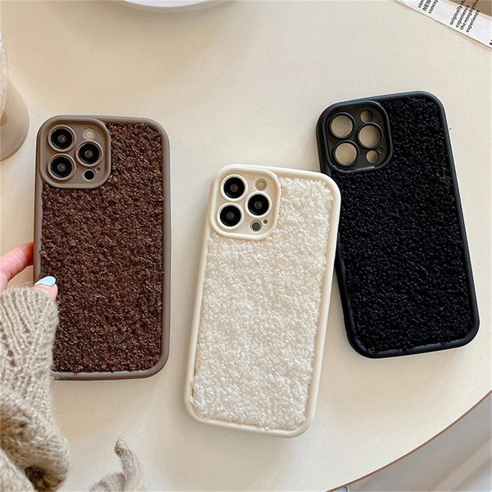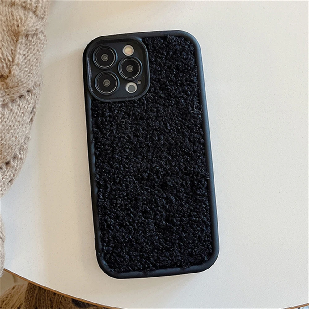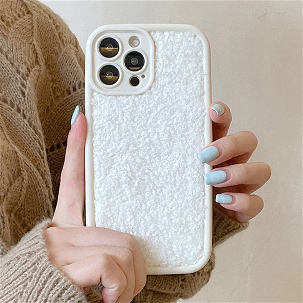Warm Winter Soild Color Plush Cloth Soft Case For iPhone