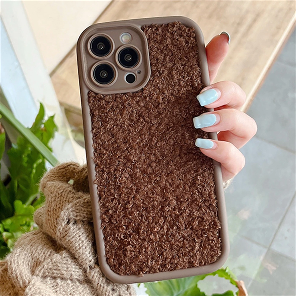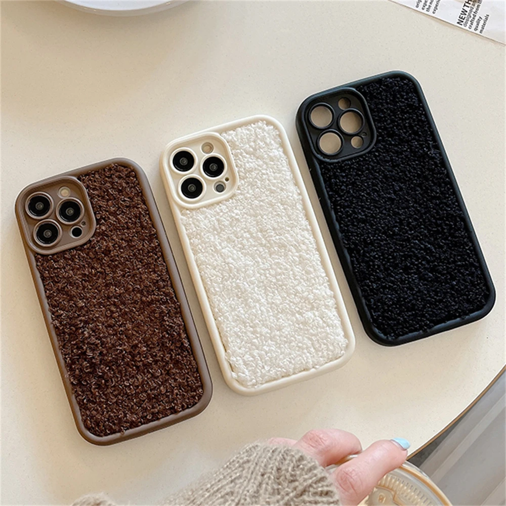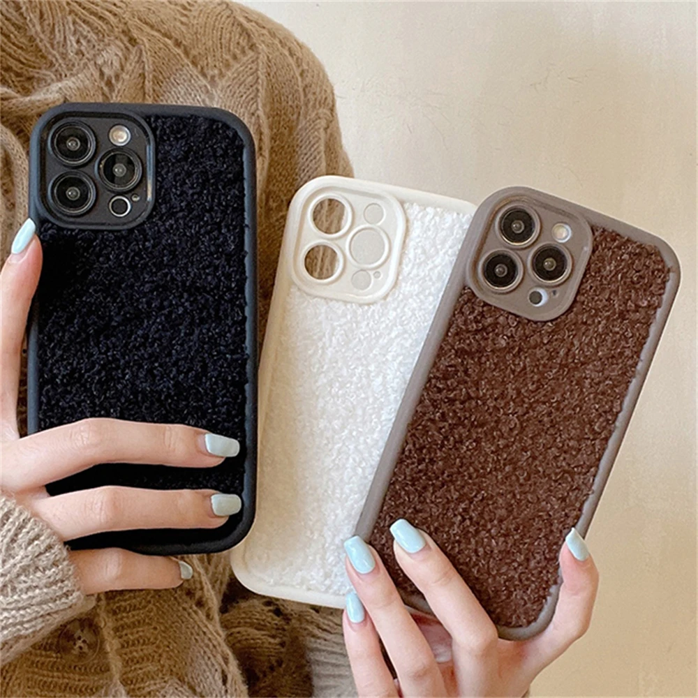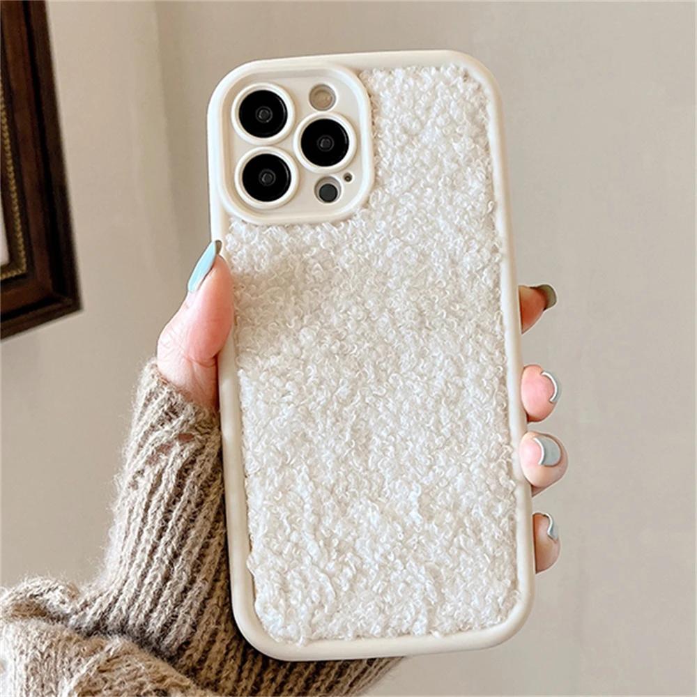Warm Winter Soild Color Plush Cloth Soft Case For iPhone