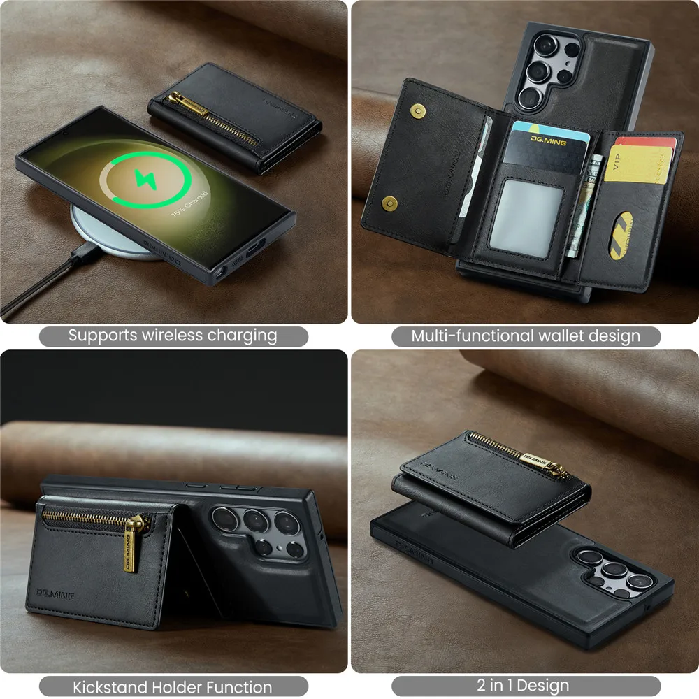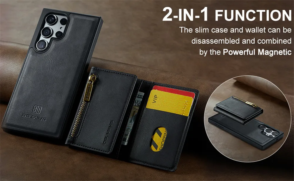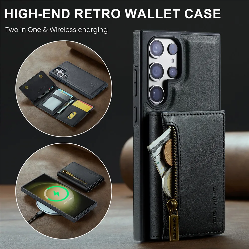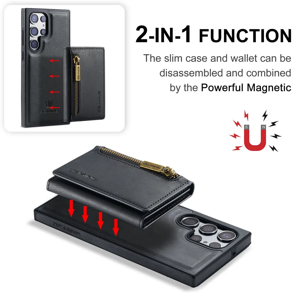 2 in 1 Detachable Magnetic Leather Wallet Case For Samsung