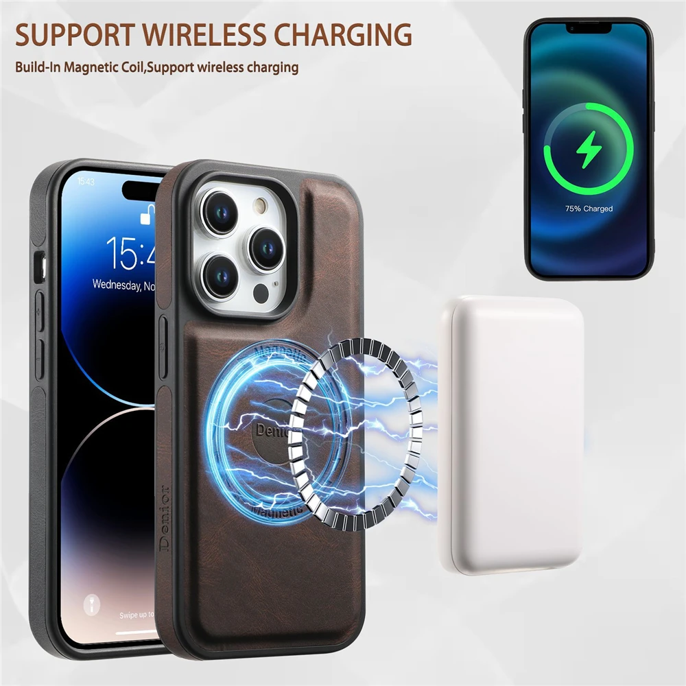 Magnetic Wireless Charging Leather Wallet Case for iPhone