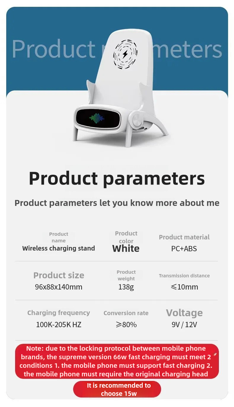 Q18 White pure wireless charger-mobile phone needs to support wireless charging + small fan