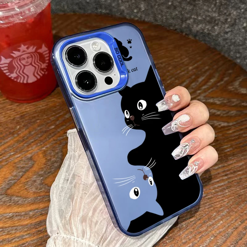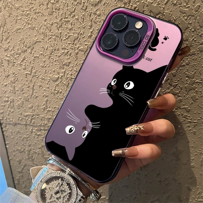 Cute Cartoon Black Cat Shockproof Silicone Soft Phone Case For iPhone