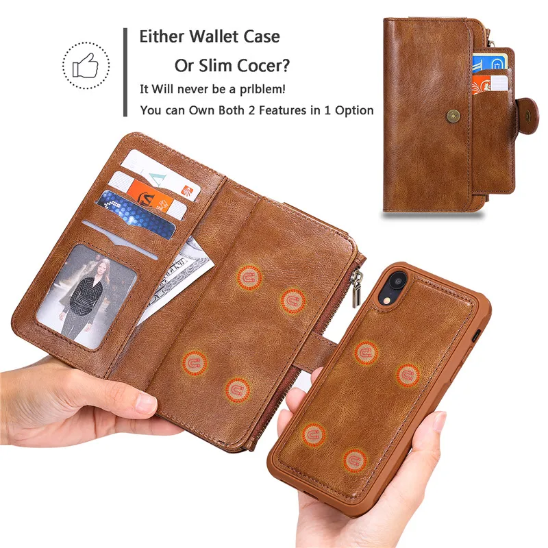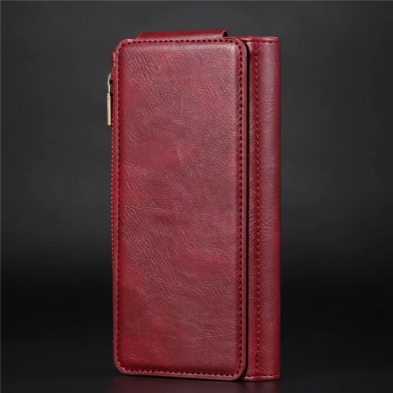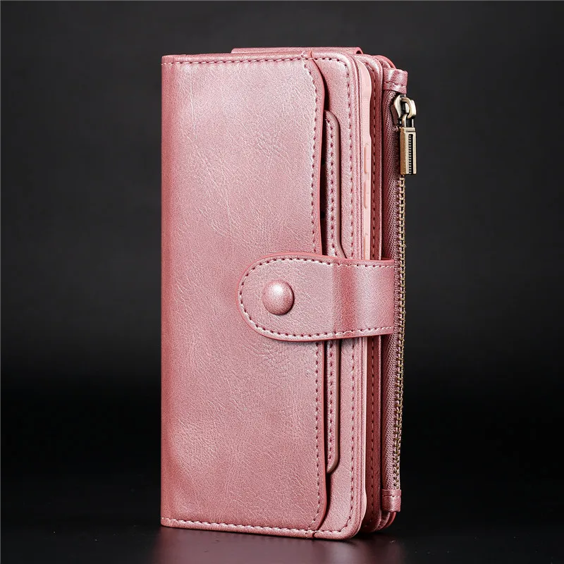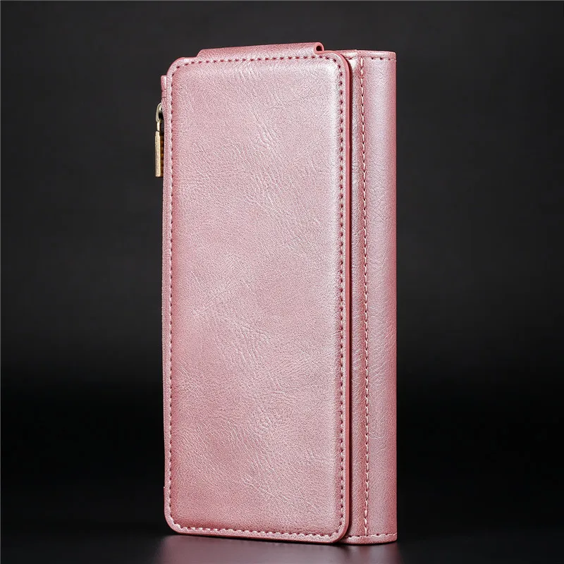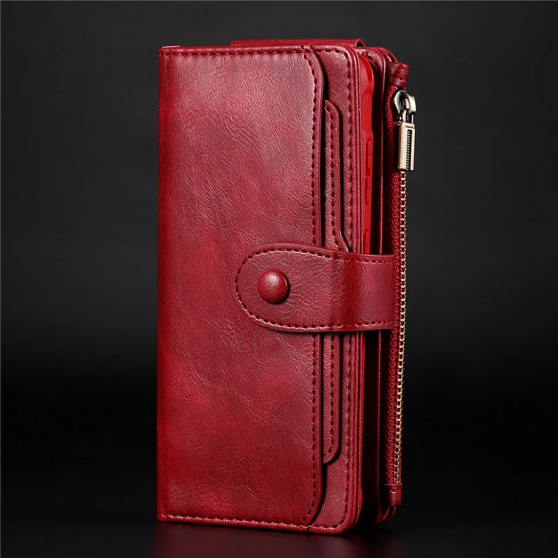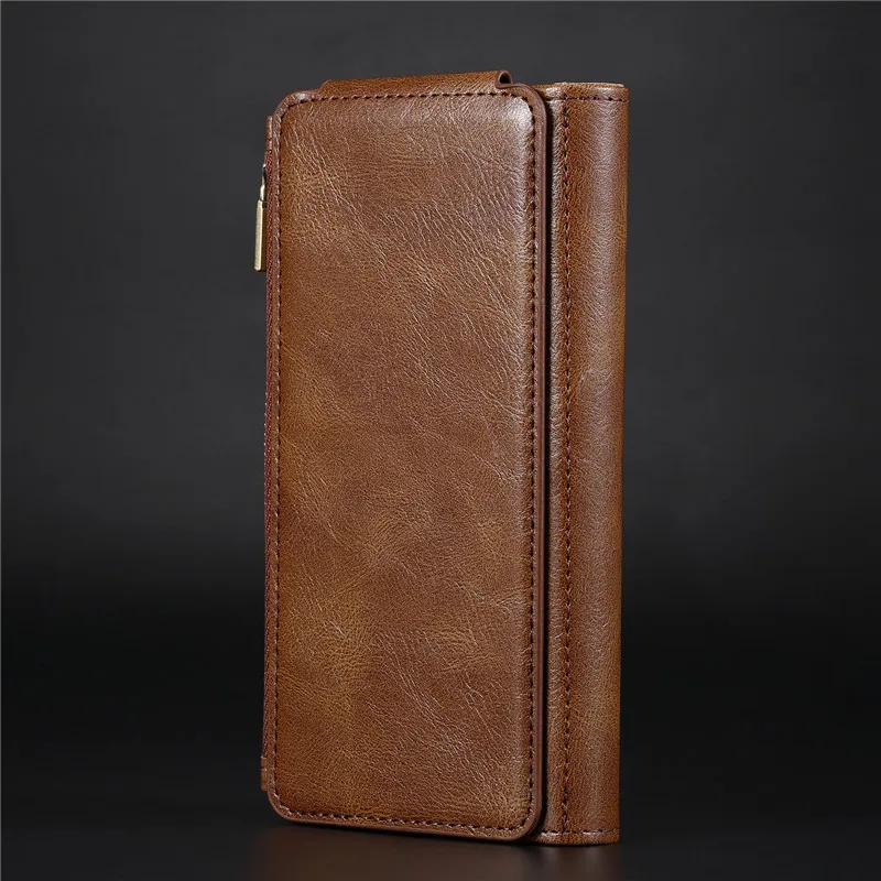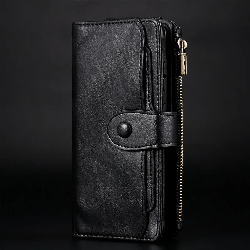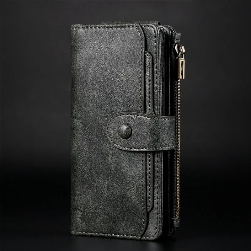 Detachable Magnetic Flip Zipper Wallet Leather Case for iPhone