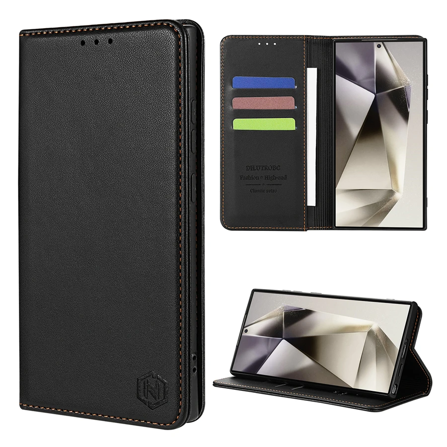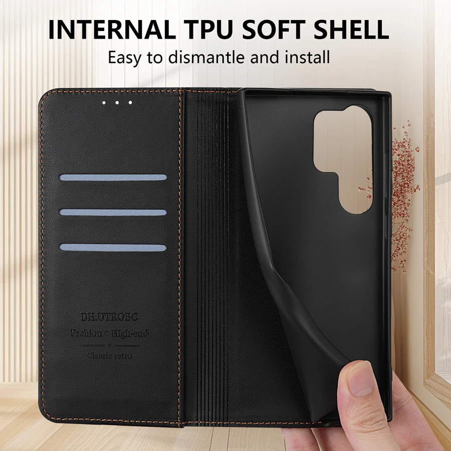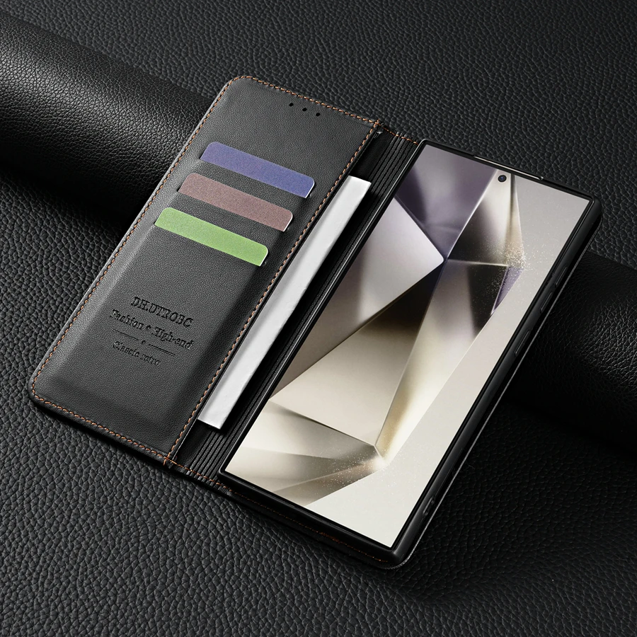 Wallet Skin friendly Card Slot Strong Magnetic Flip Leather Case For Samsung