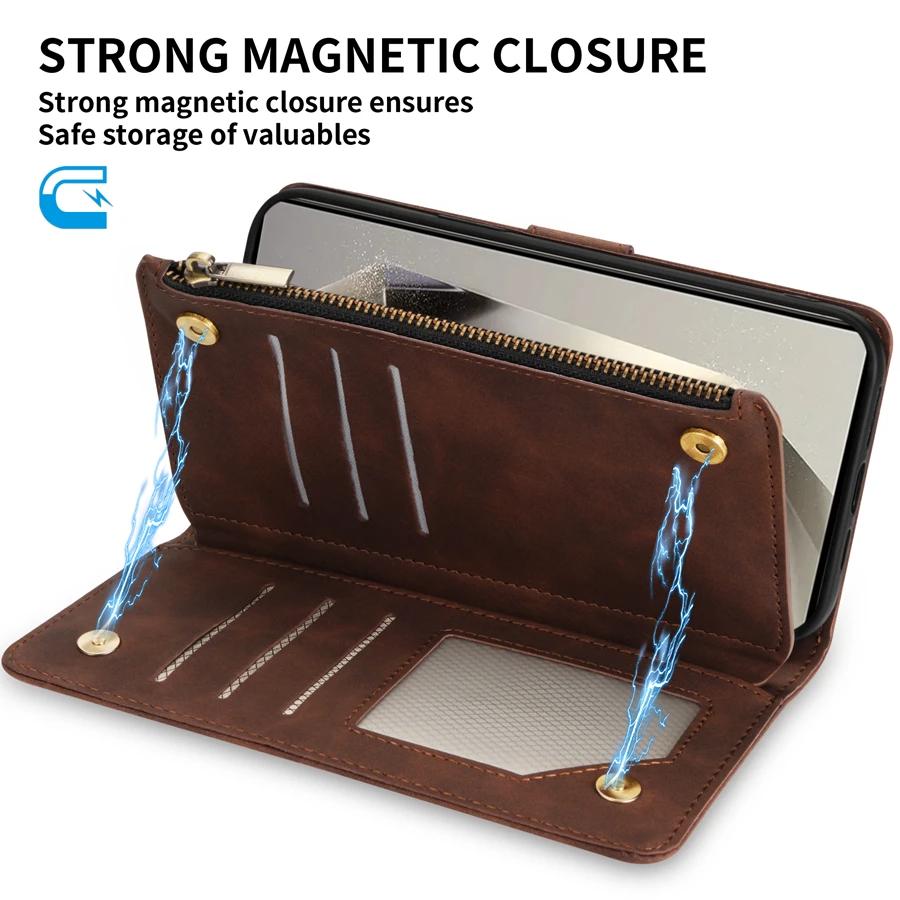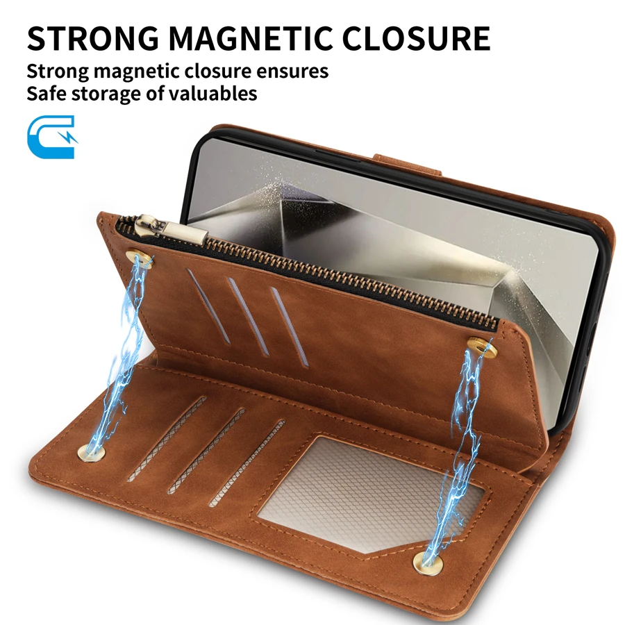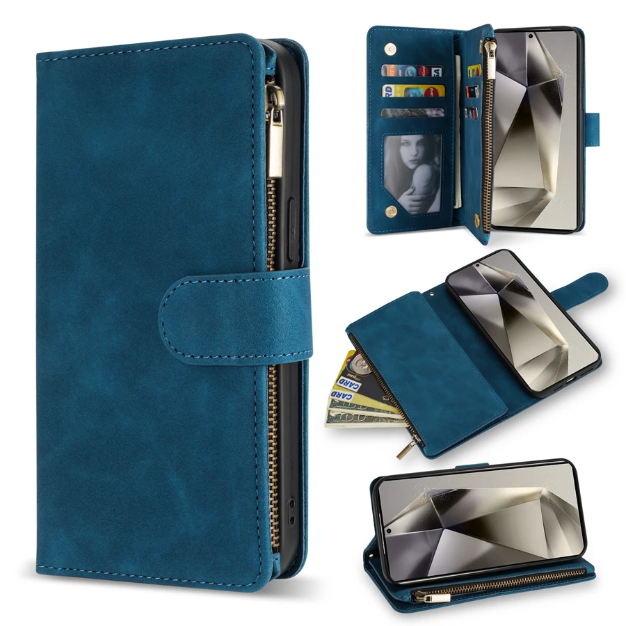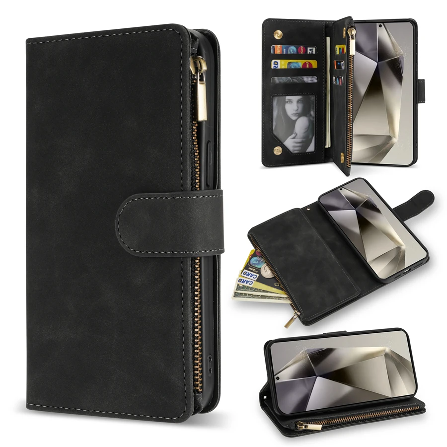 Wallet Multi-card Zipper Kickstand Magnetic Flip Leather Case For Samsung