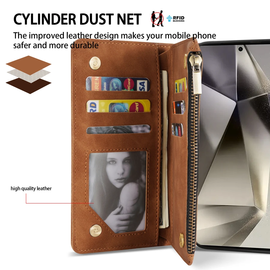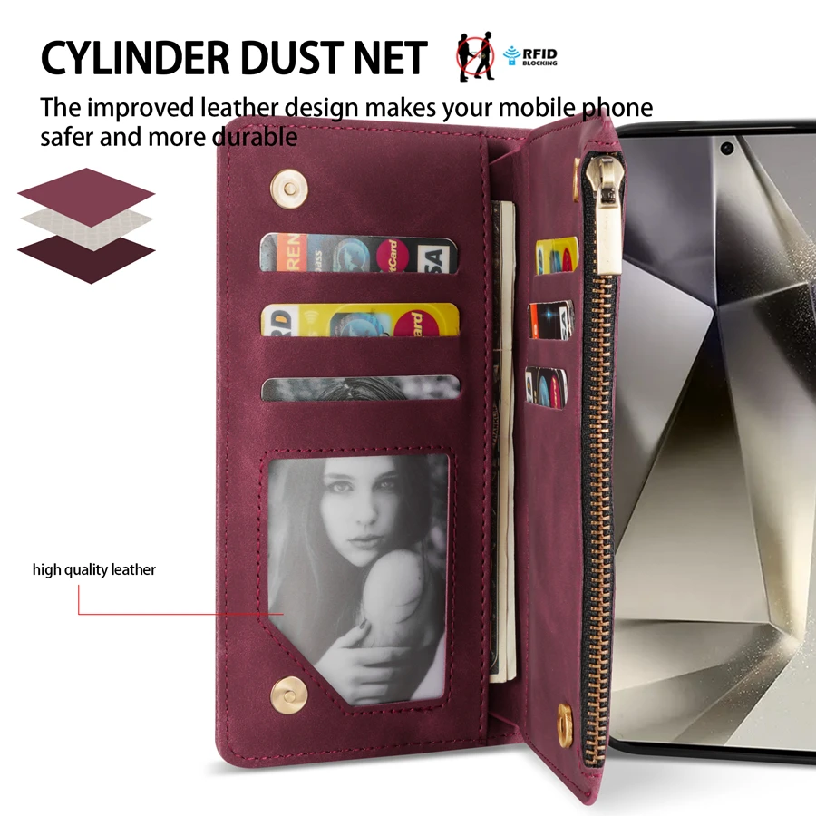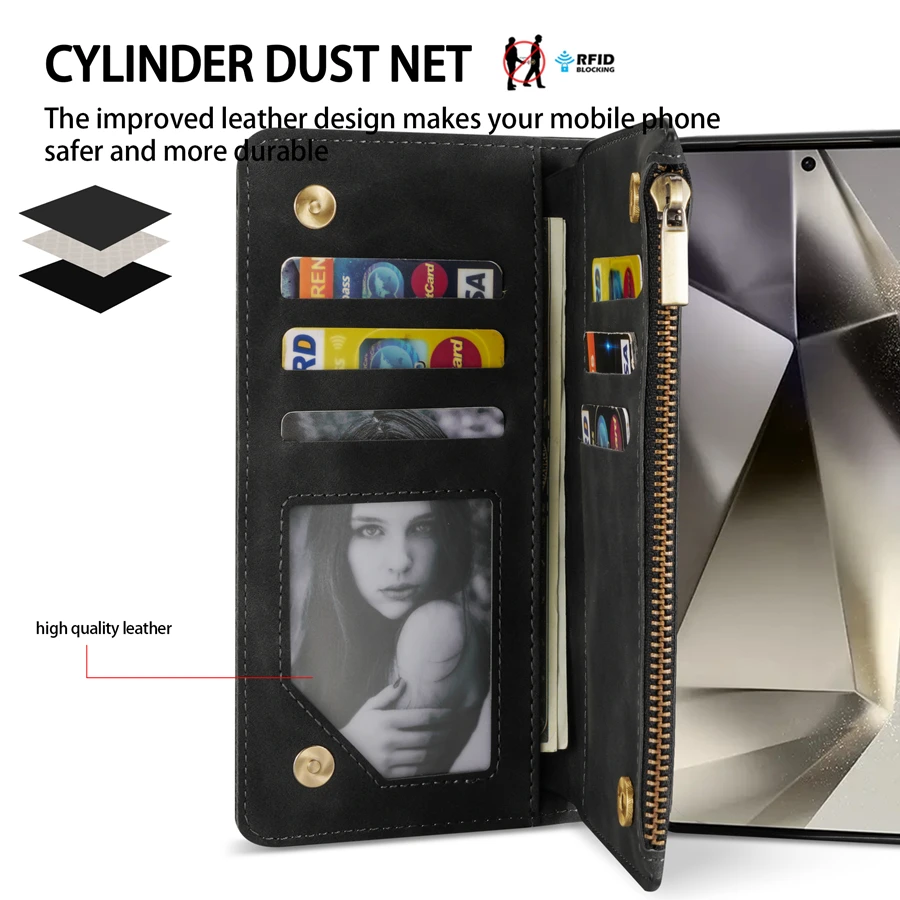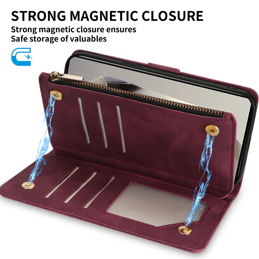 Wallet Multi-card Zipper Kickstand Magnetic Flip Leather Case For Samsung