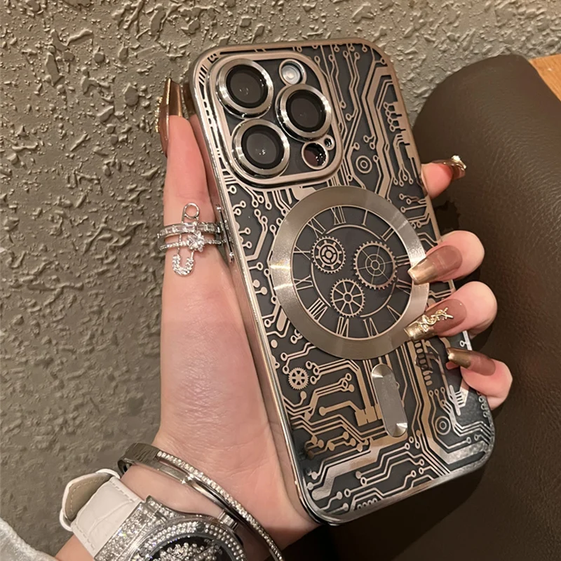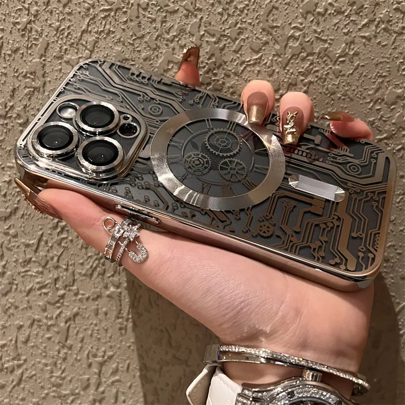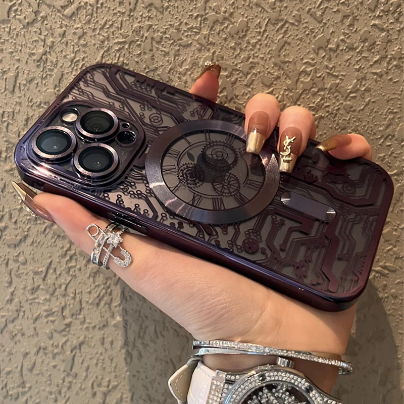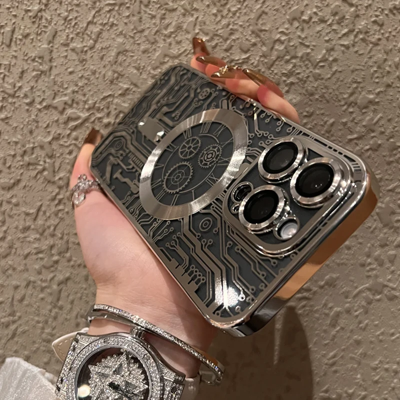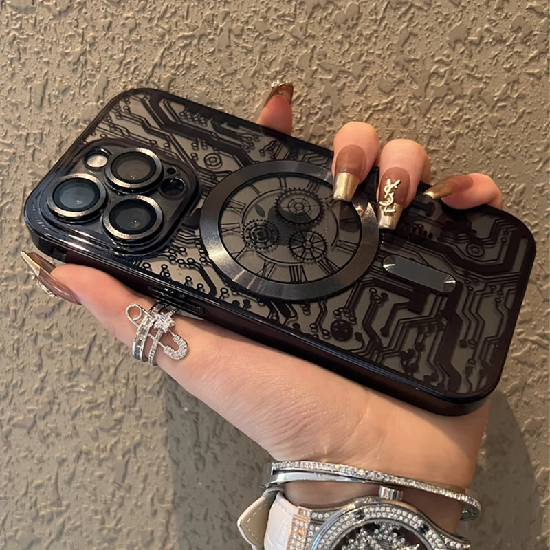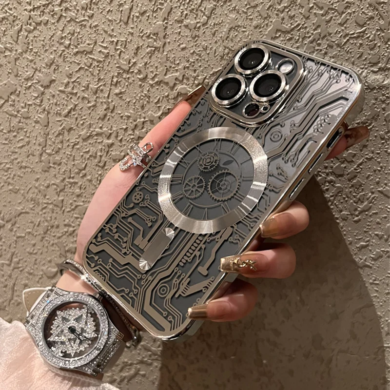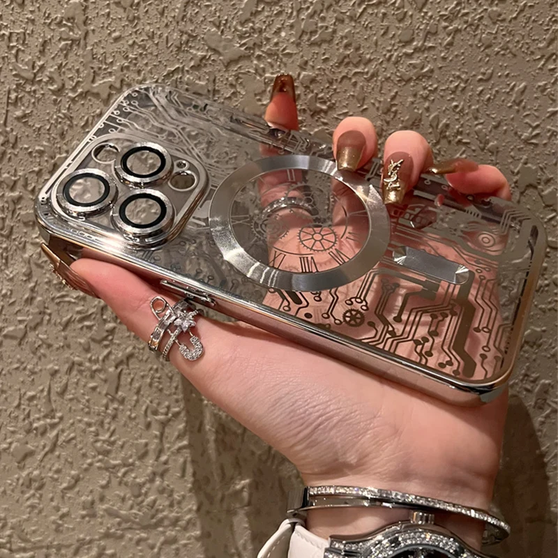Plating Circuit Pattern Magnetic Transparent Magsafe Wireless Charge Case For iPhone