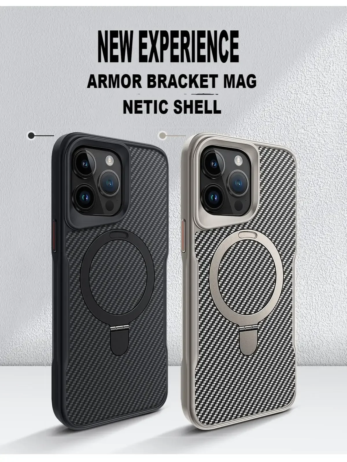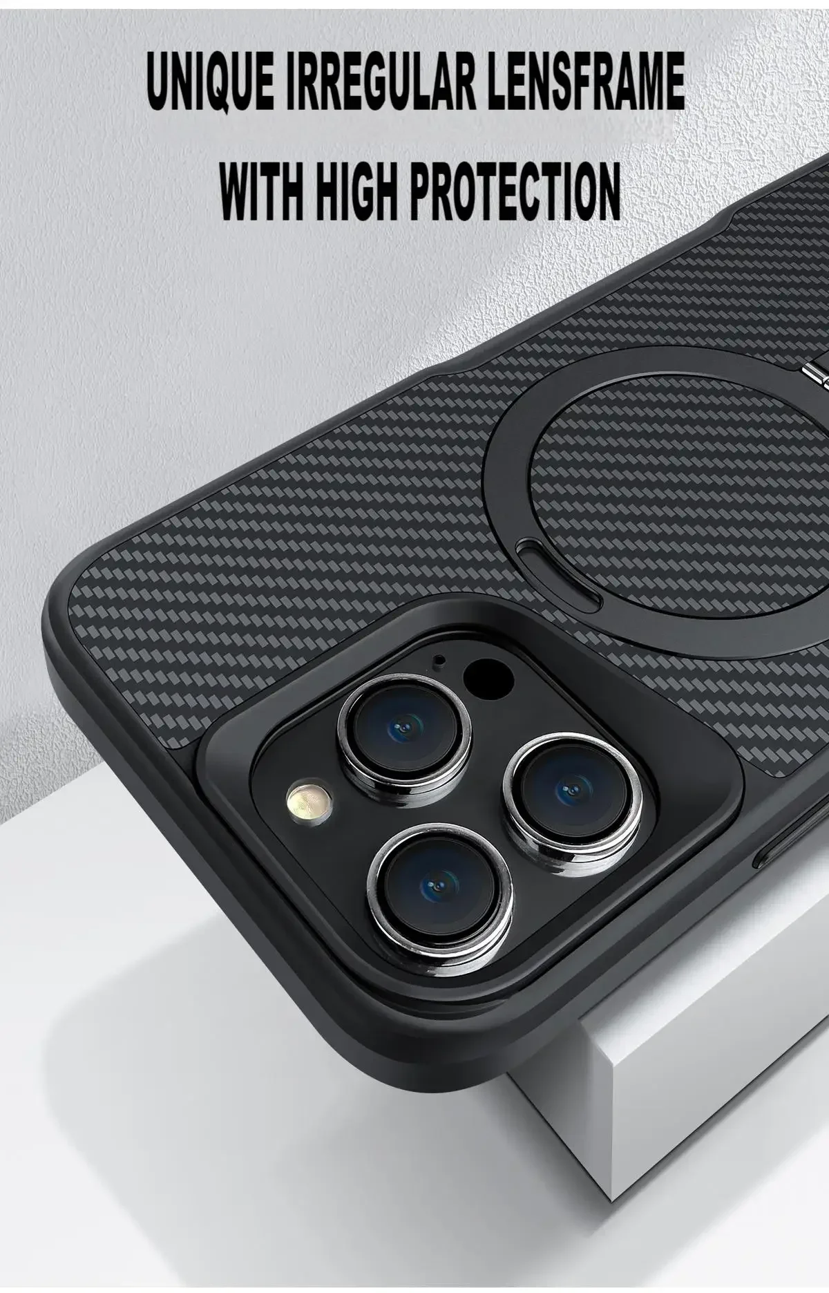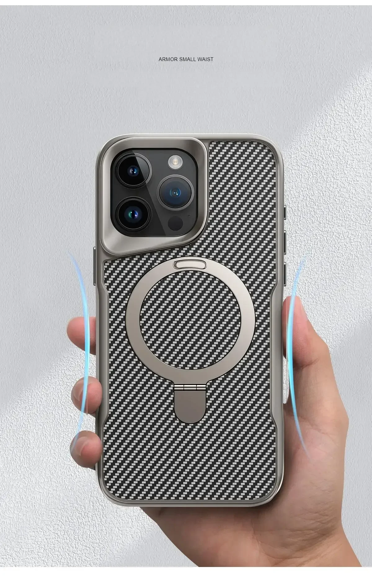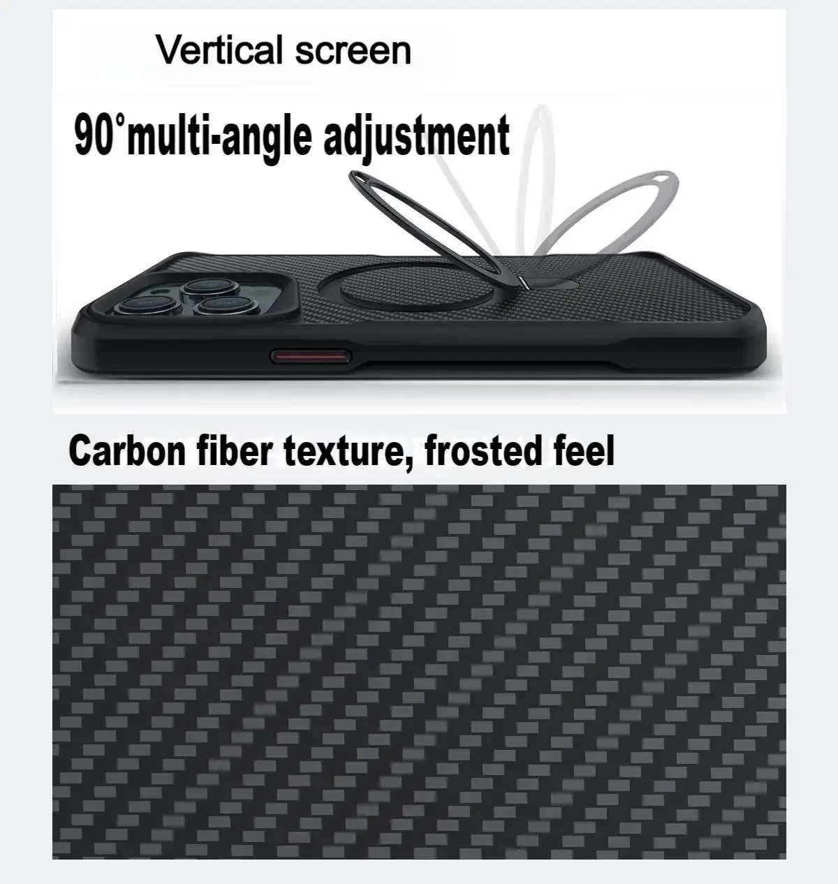 Super Luxury Magnetic and Carbon Fiber Phone Case For Iphone 15 14 13 12 Pro Max Vertical Screen 90° Stand Matte Feel Phone Case