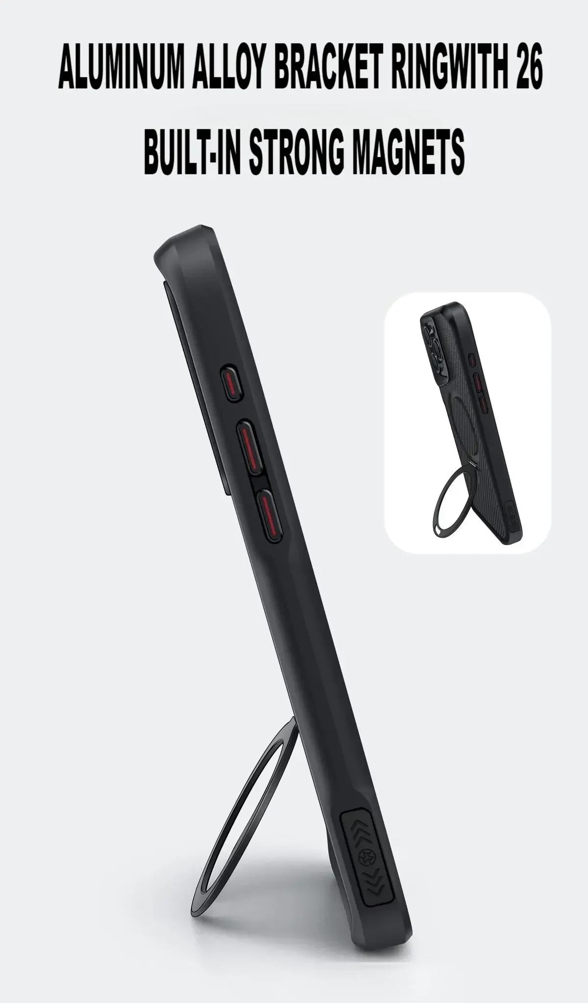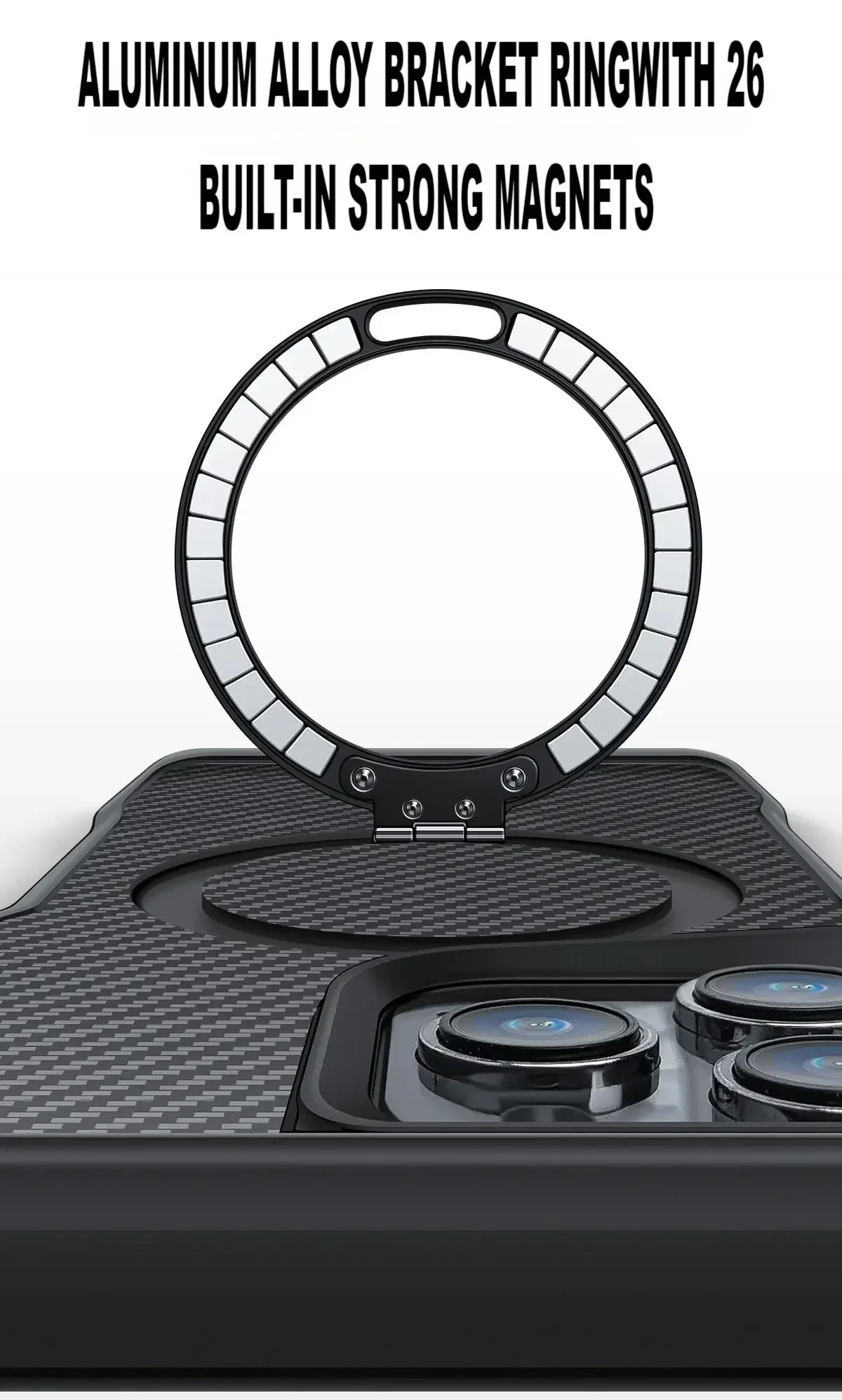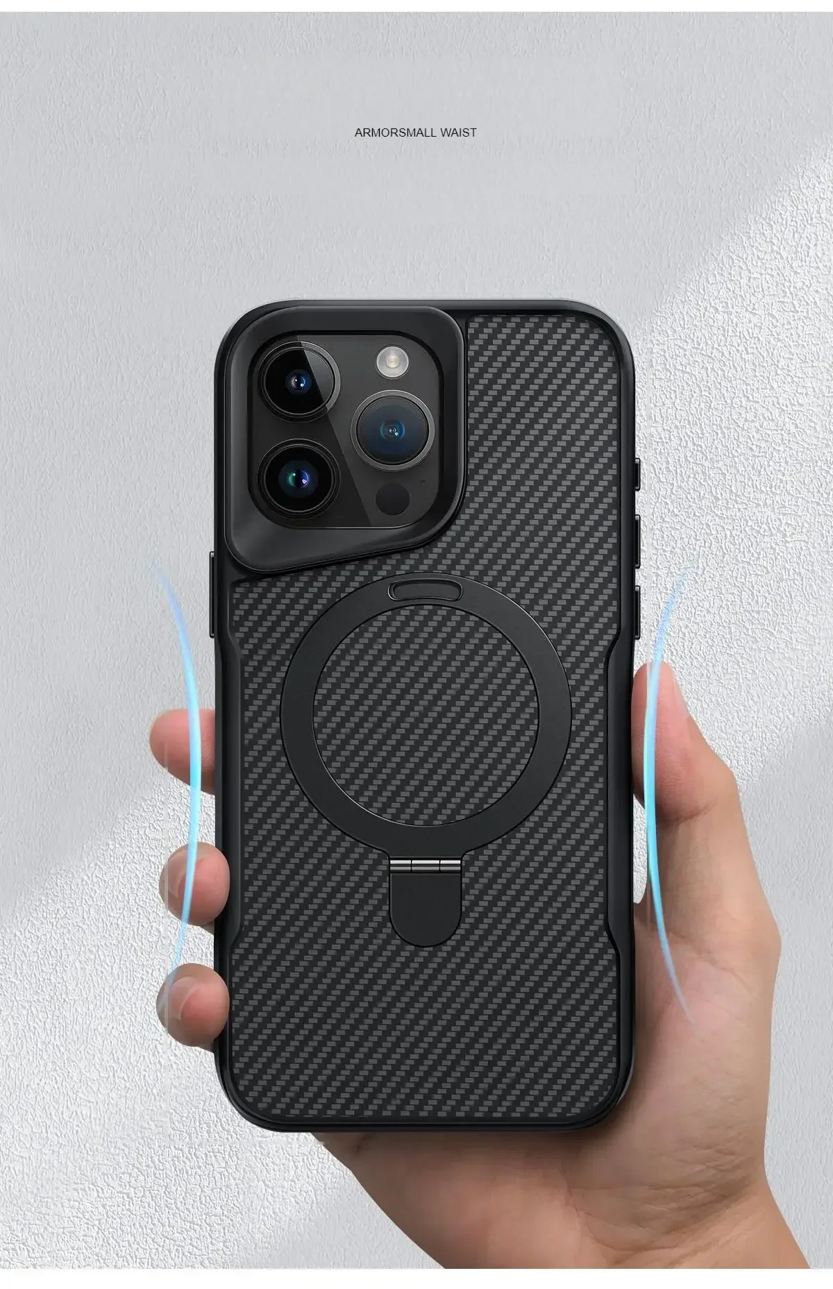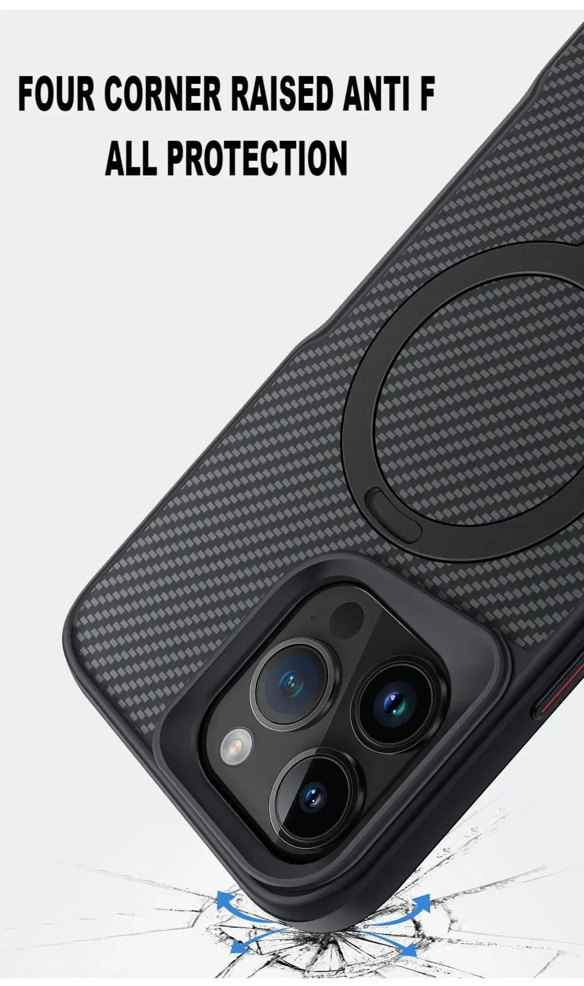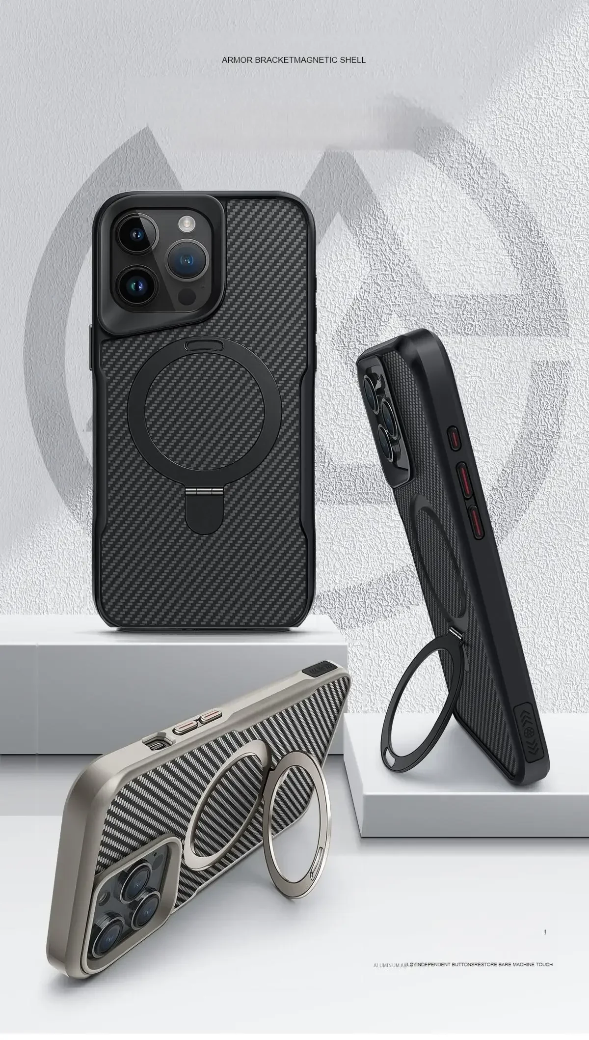 Super Luxury Magnetic and Carbon Fiber Phone Case For Iphone 15 14 13 12 Pro Max Vertical Screen 90° Stand Matte Feel Phone Case