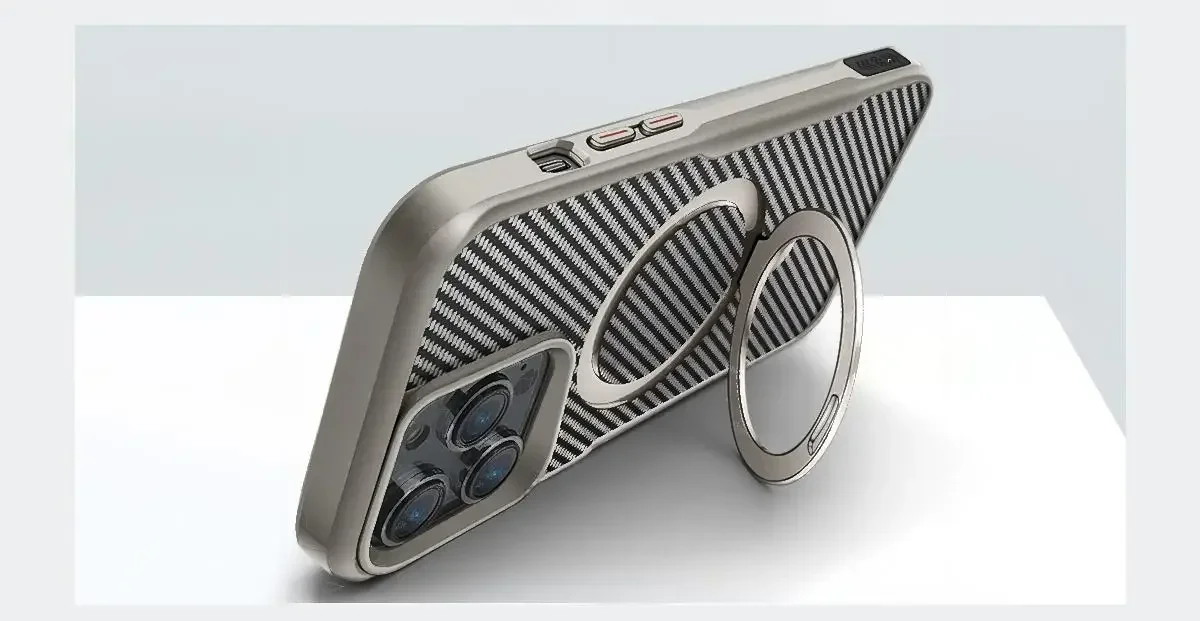 Carbon Fiber Pattern Aluminum Alloy Stand Magnetic Case For Iphone
