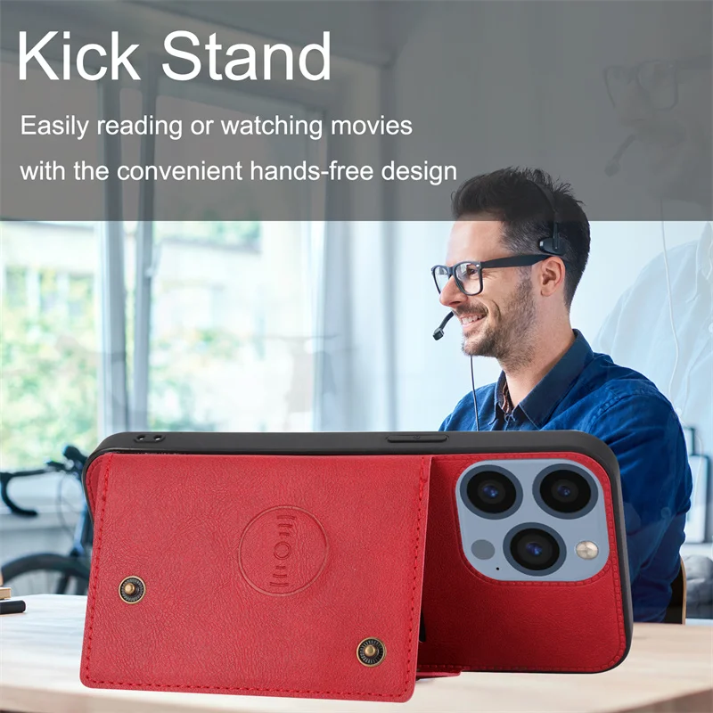 Leather Magnetic Multi Card Slot Holder Case For iPhone