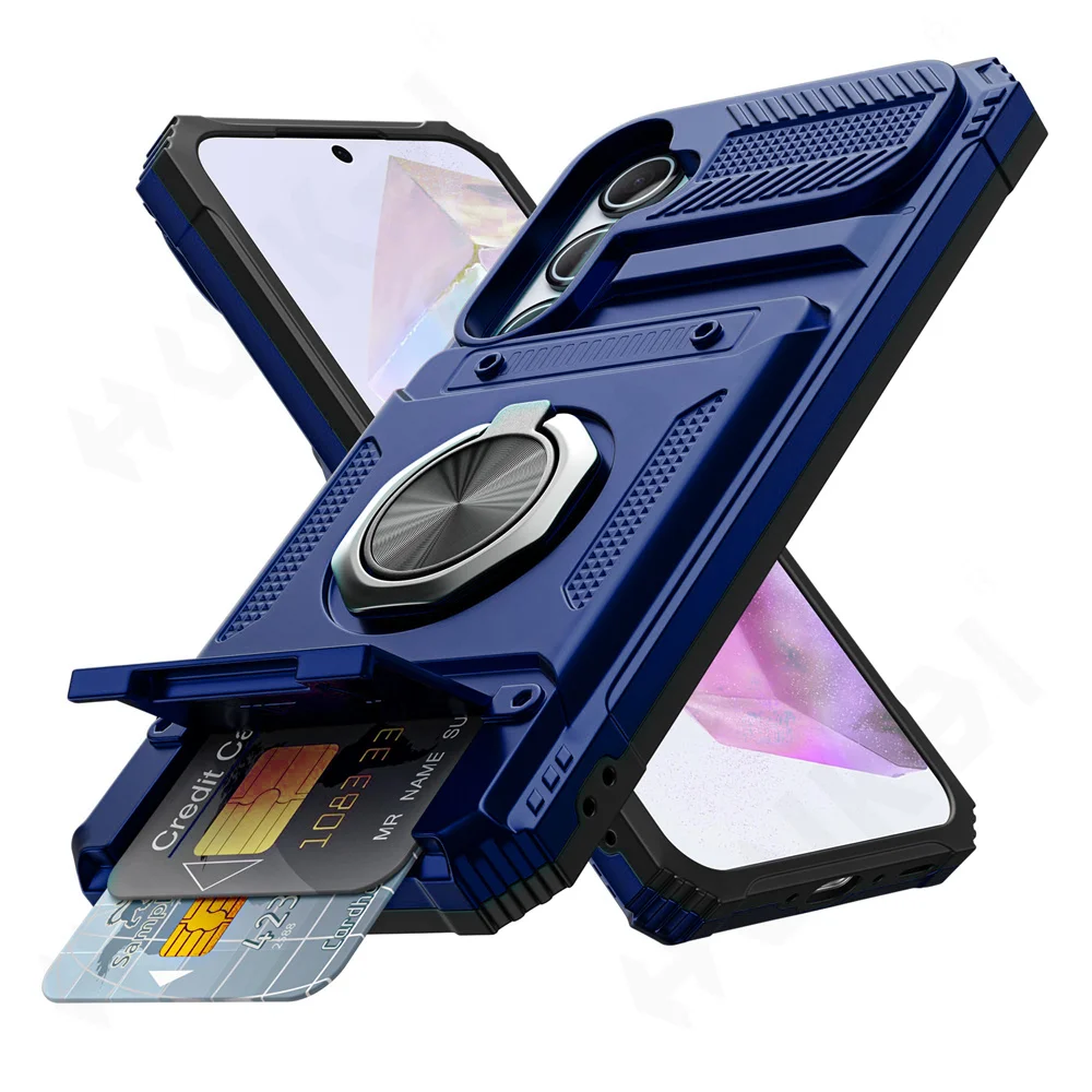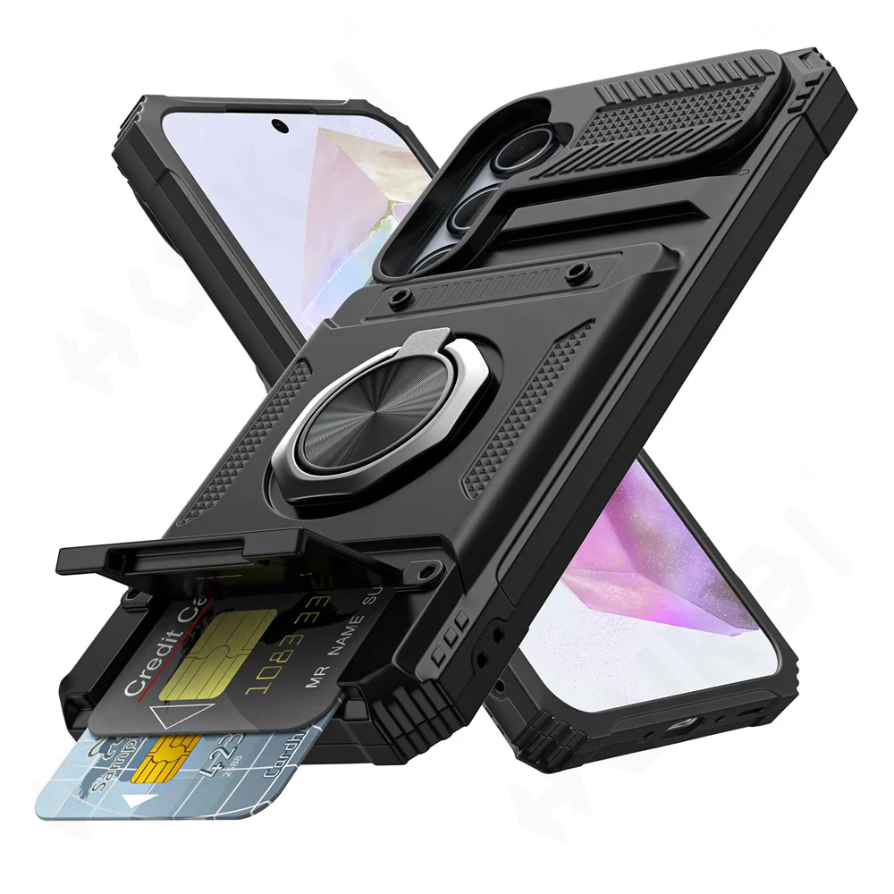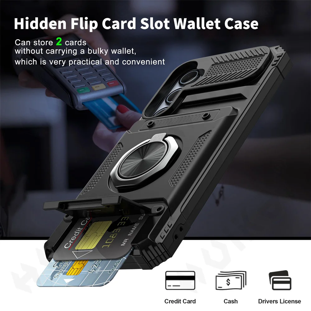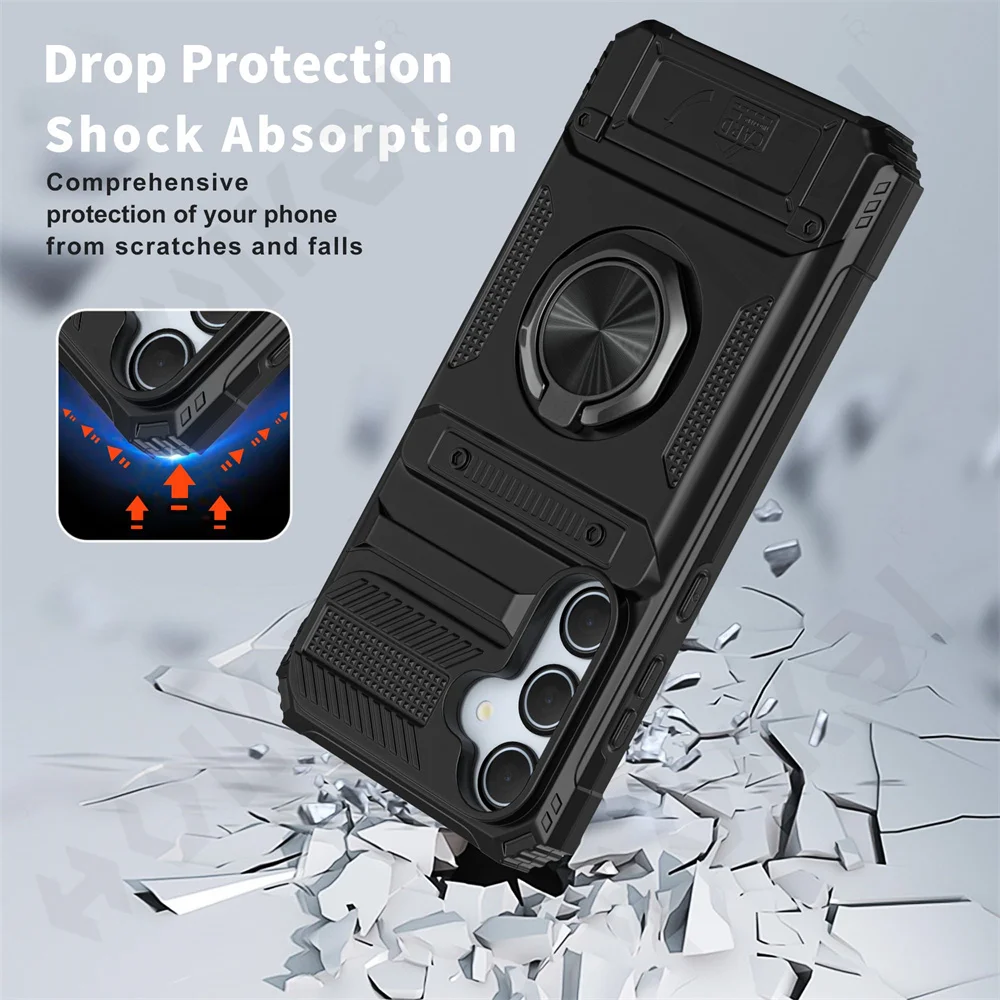 Magnetic Rotating Ring Kickstand Heavy Drop Wallet Case For Samsung