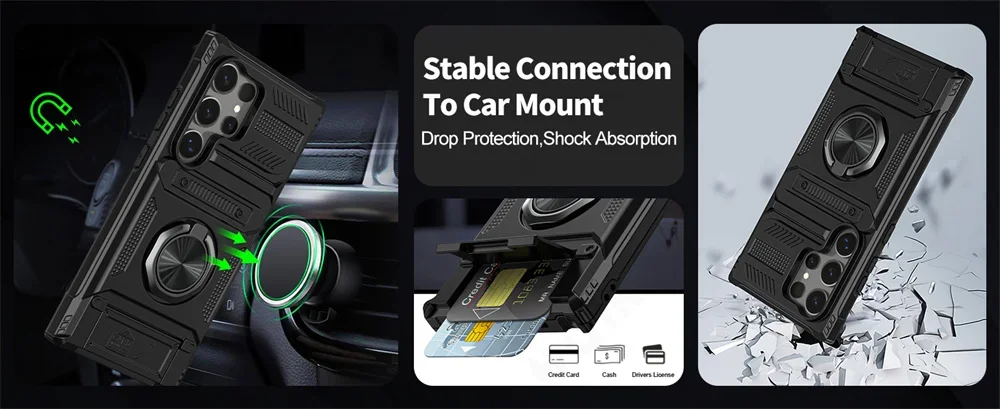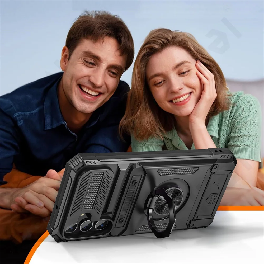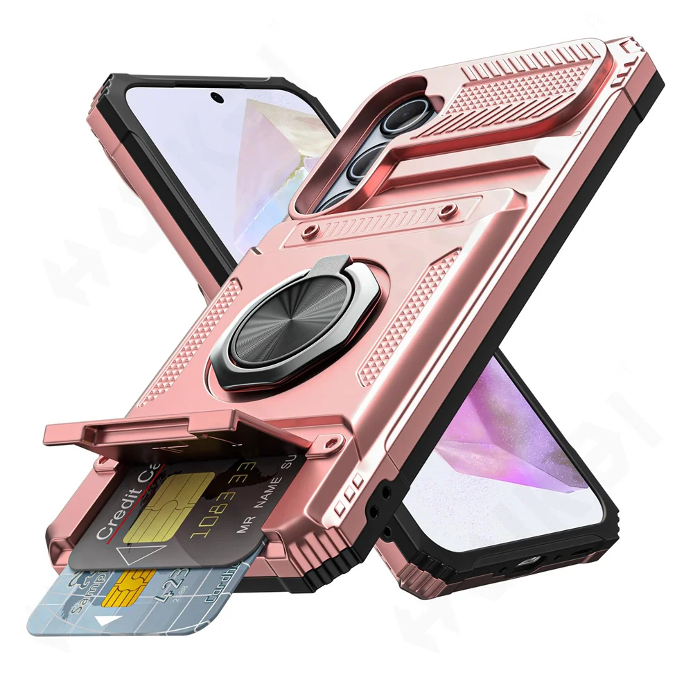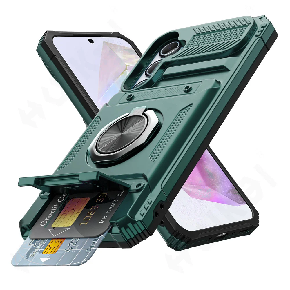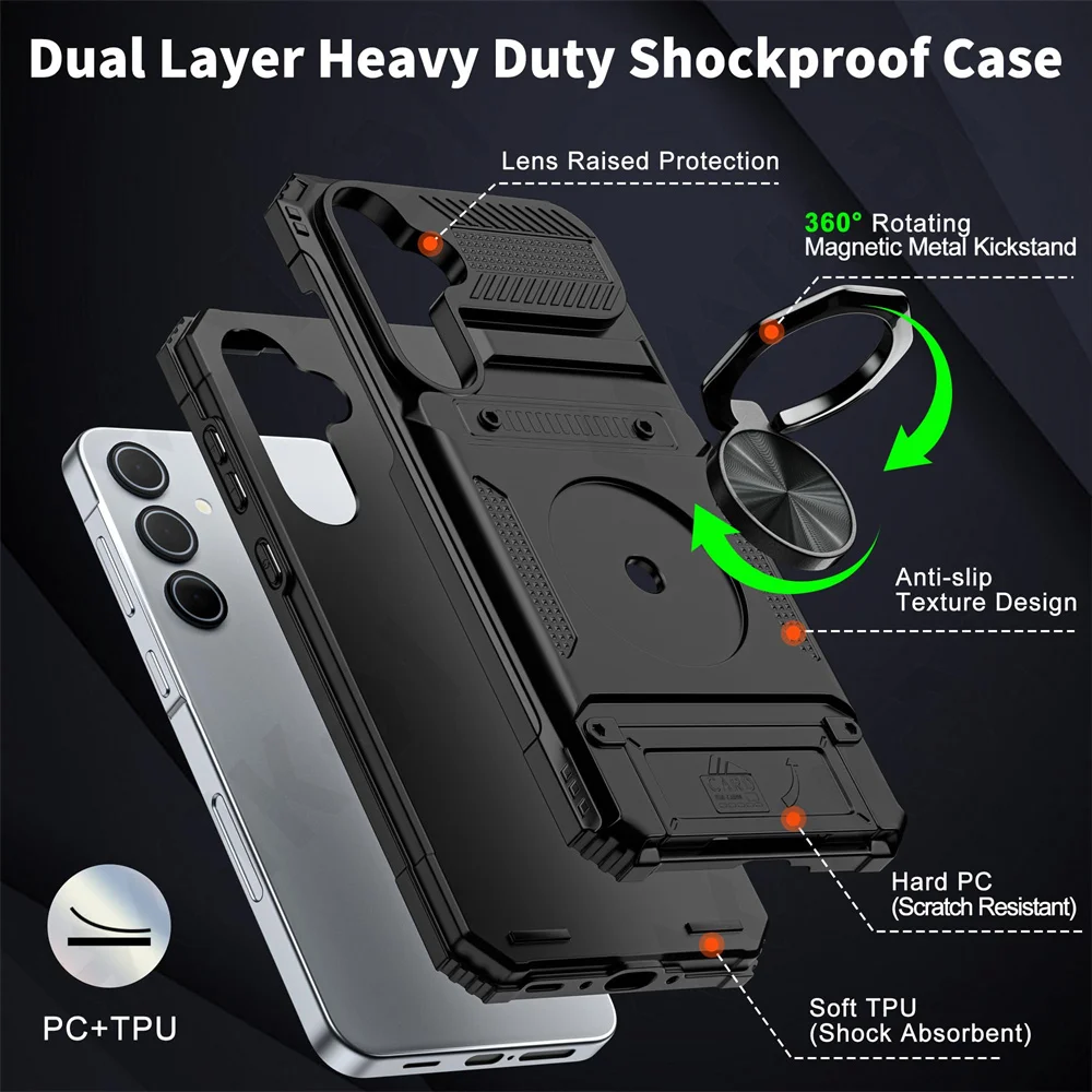 Magnetic Rotating Ring Kickstand Heavy Drop Wallet Case For Samsung