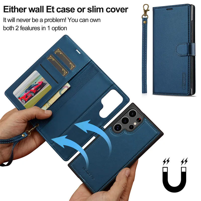 Flip Leather Wallet Card Slot Magnetic Case for Samsung