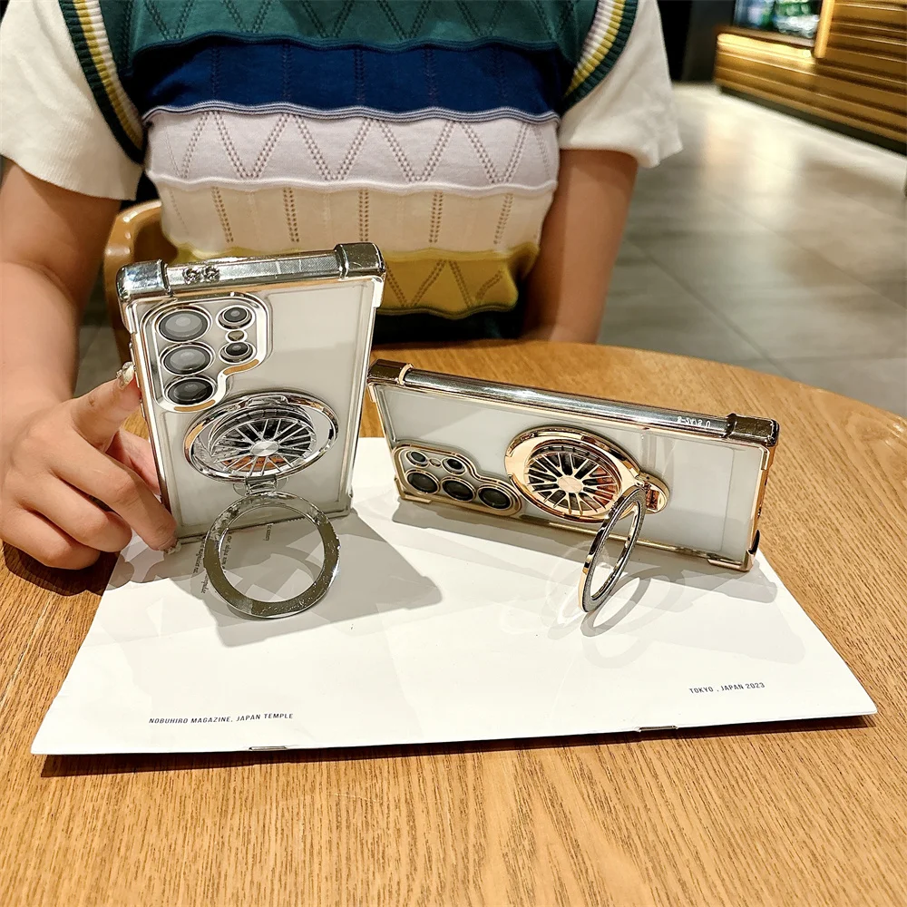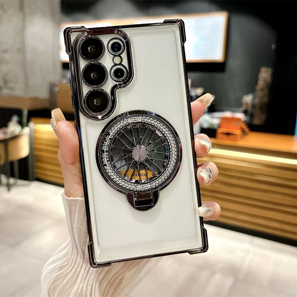 Electroplating Anti-drop Rotating Gyro Magnetic Stand Case For Samsung