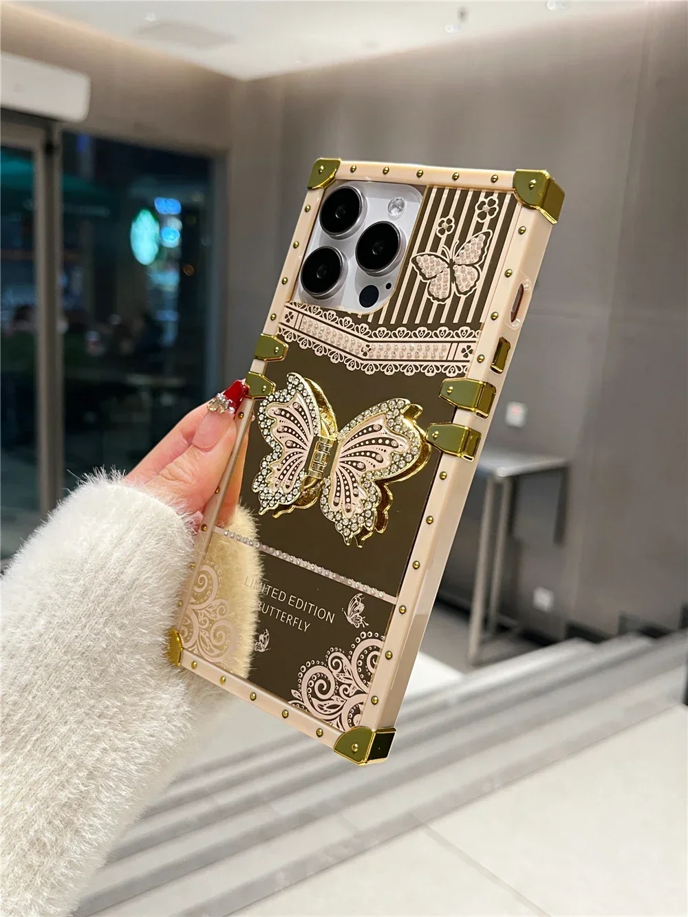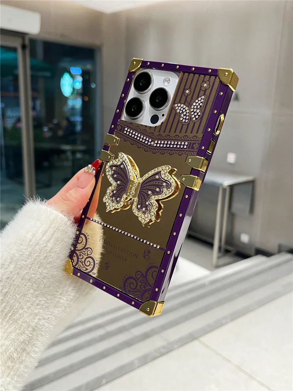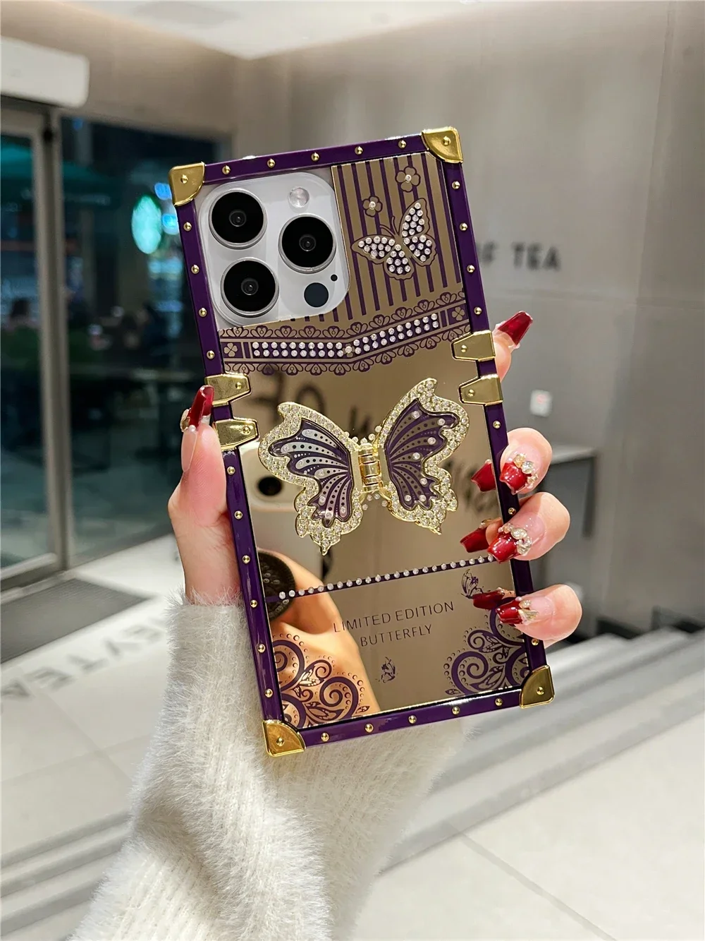 Luxury Bling Glitter Butterfly Foldable Stand Bracket Cover For iPhone