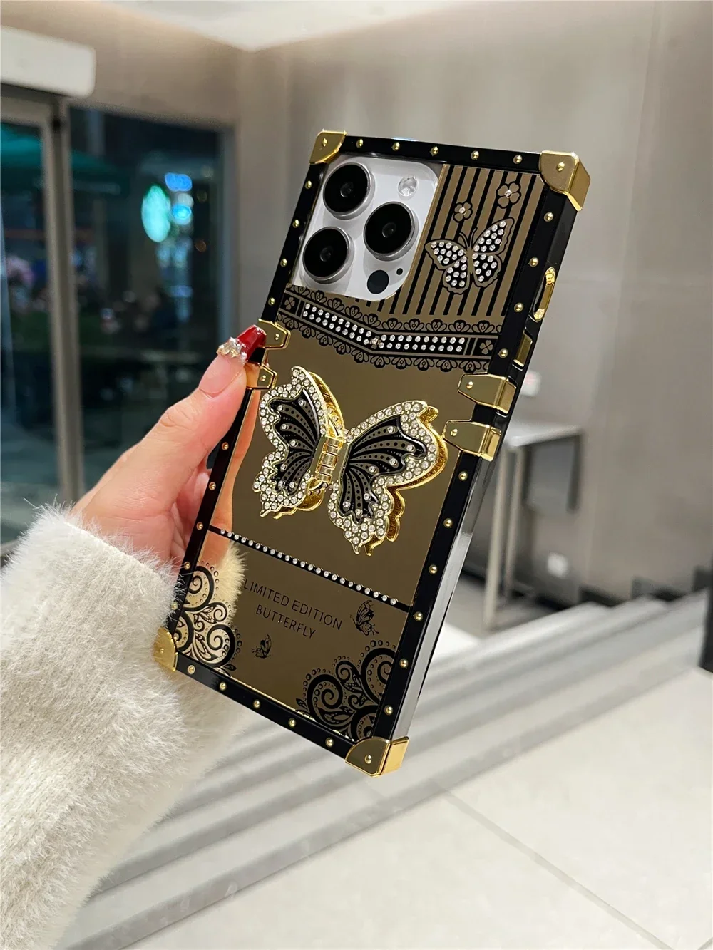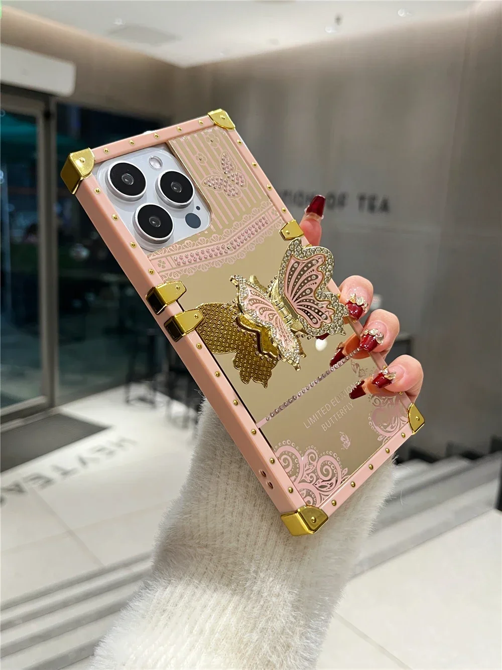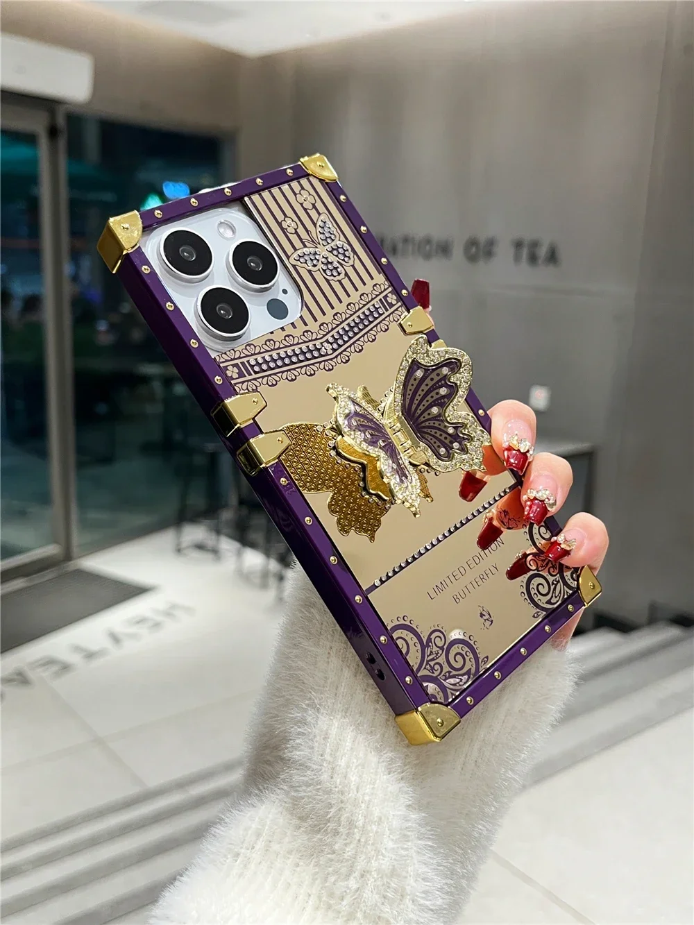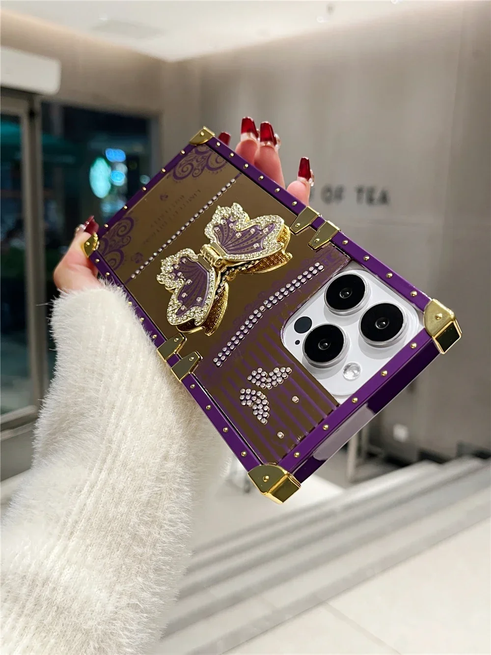 Luxury Bling Glitter Butterfly Foldable Stand Bracket Cover For iPhone