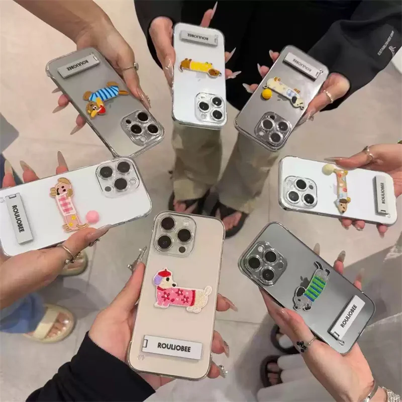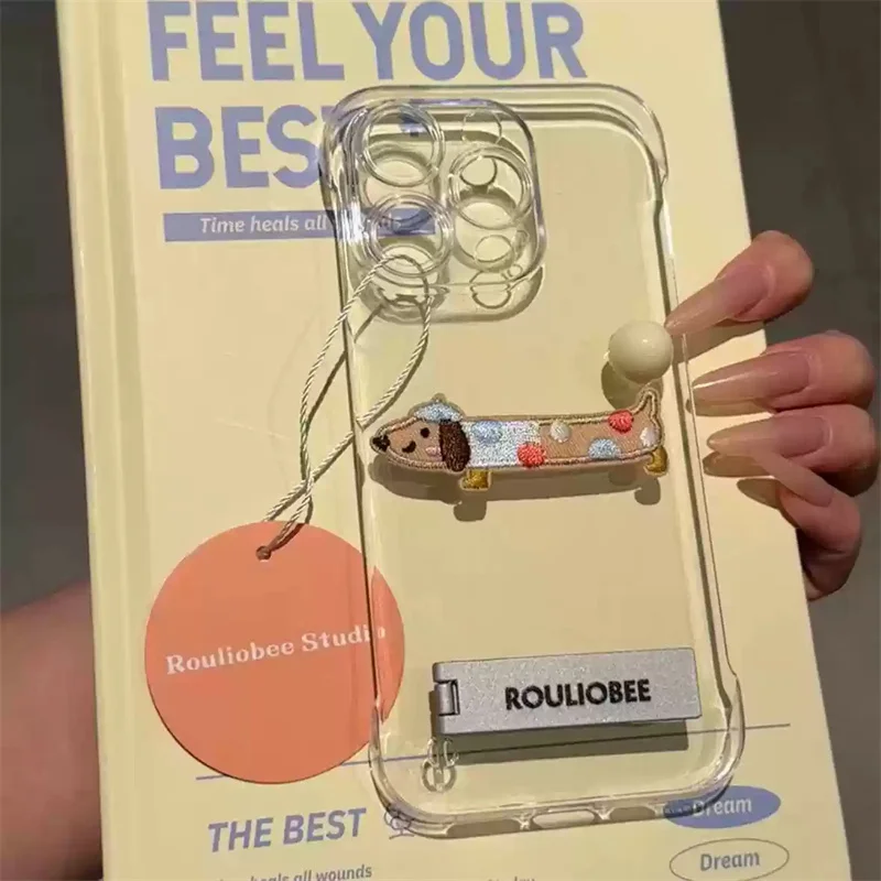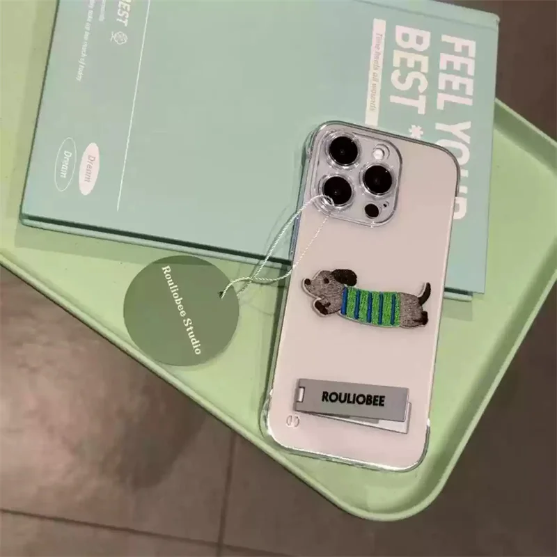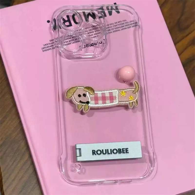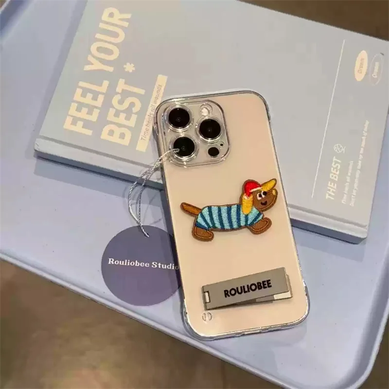 Cute Cartoon Embroidery Transparent Metal Holder Case For iPhone
