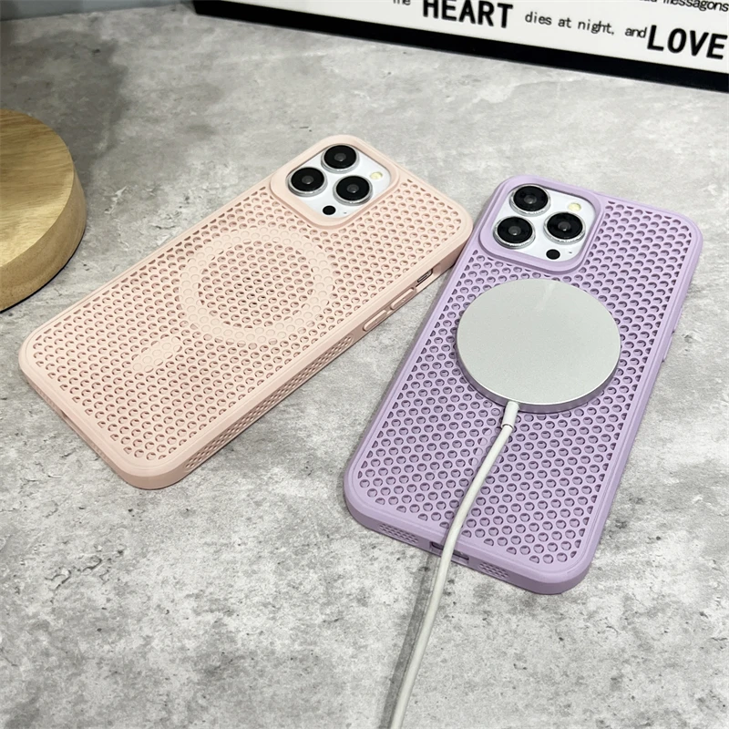 Magsafe Magnetic Wireless Charging Heat Dissipation Mesh Case For iPhone