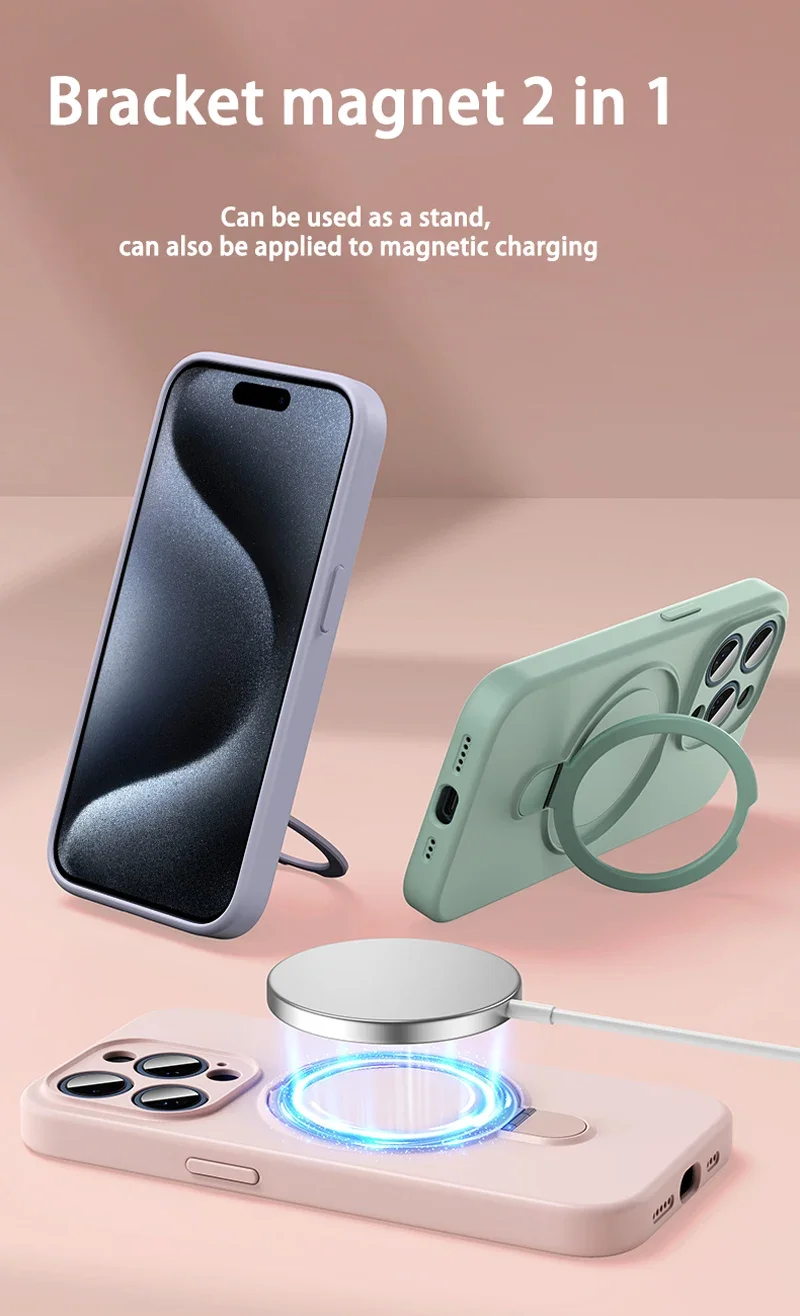 Liquid Silicone Magsafe Wireless Charging Invisible Holder Case For iPhone