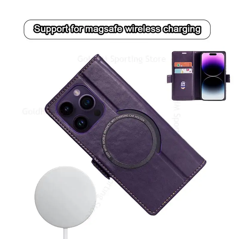 For Magsafe Magnetic Flip Leather Wallet Case For iPhone
