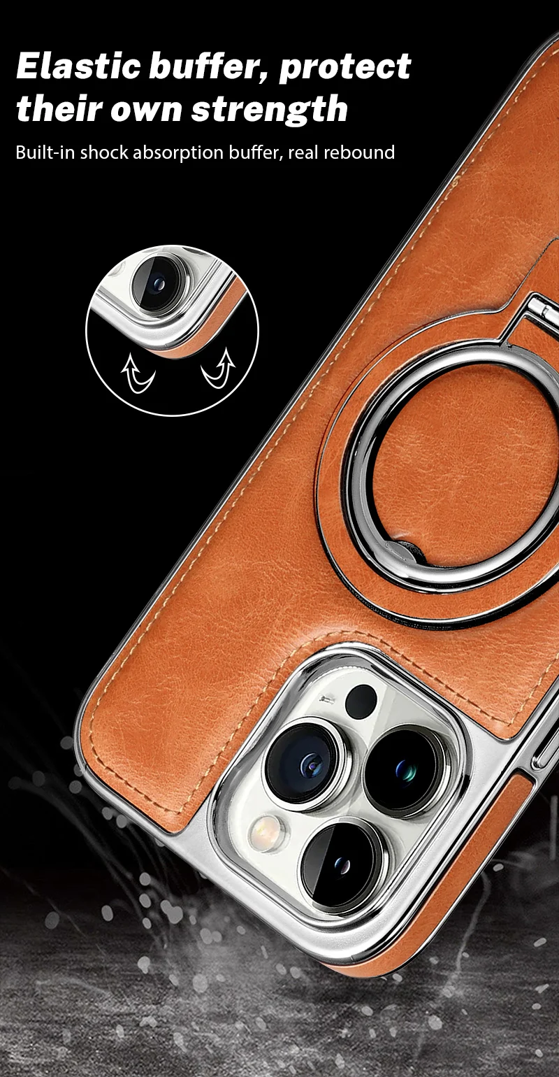 Electroplated Leather Invisible Stand Case For iPhone