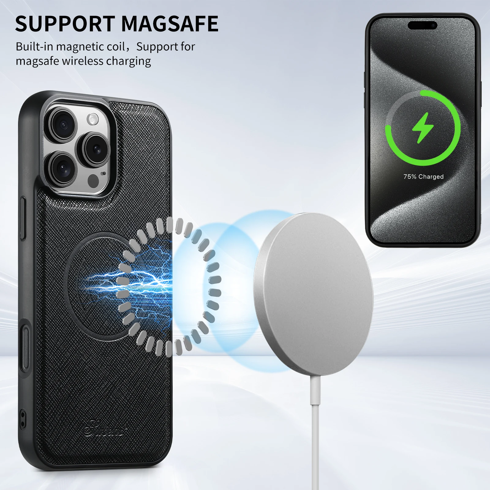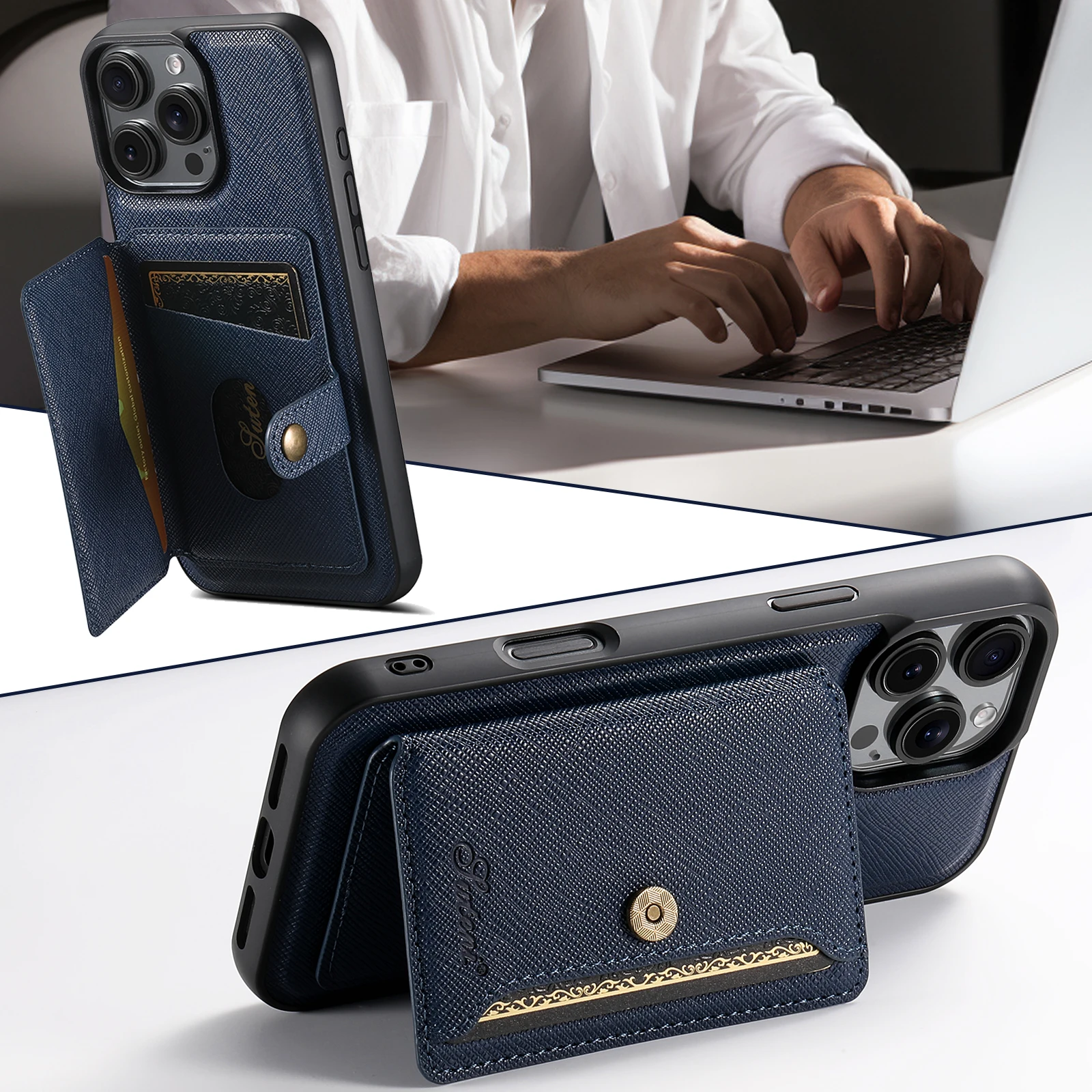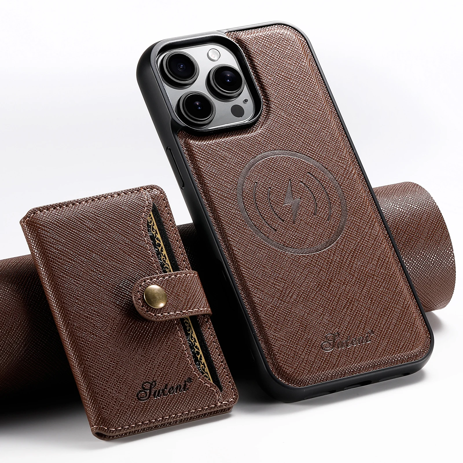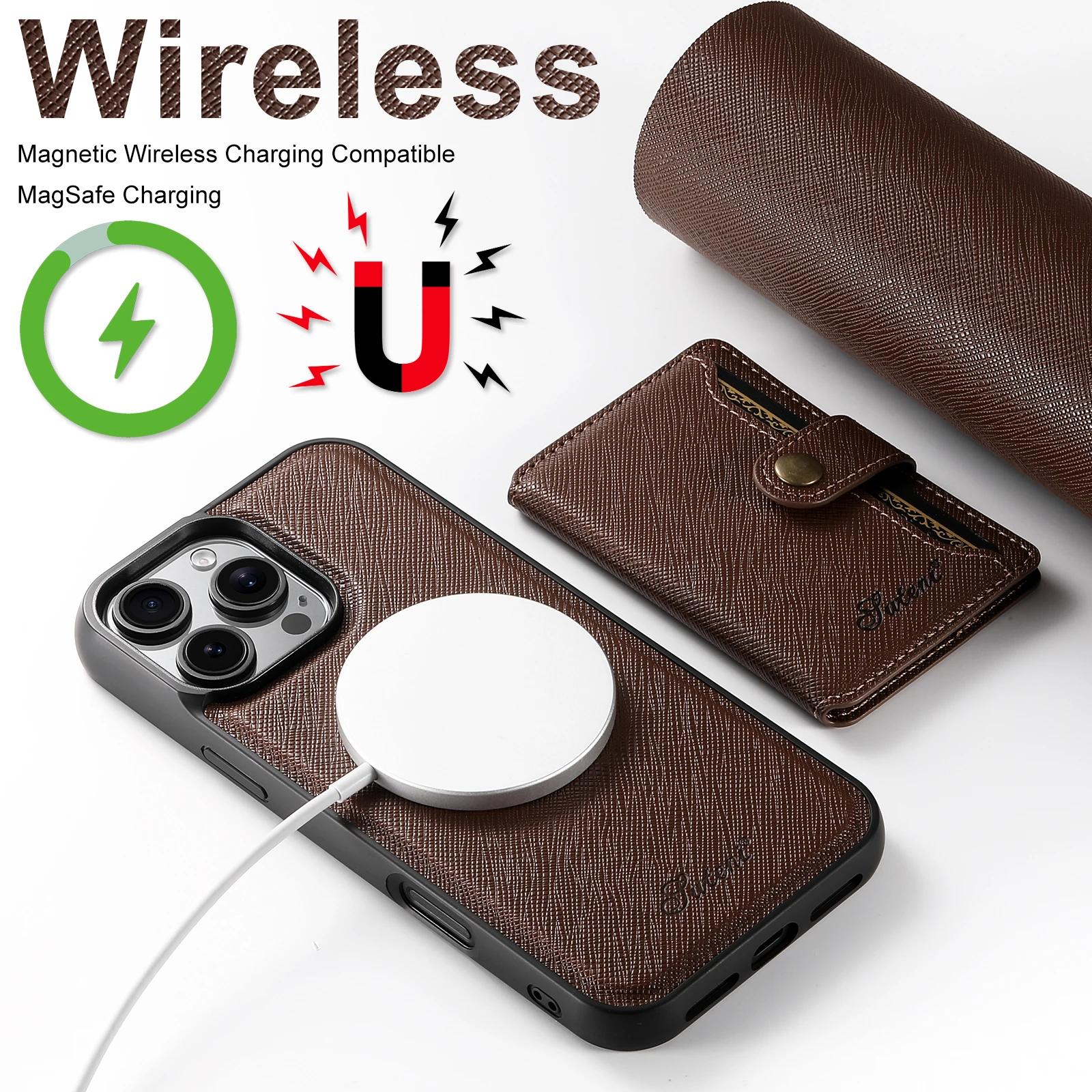2-in-1 Card Holder Leather Wallet Case Support Wireless Charging for iPhone