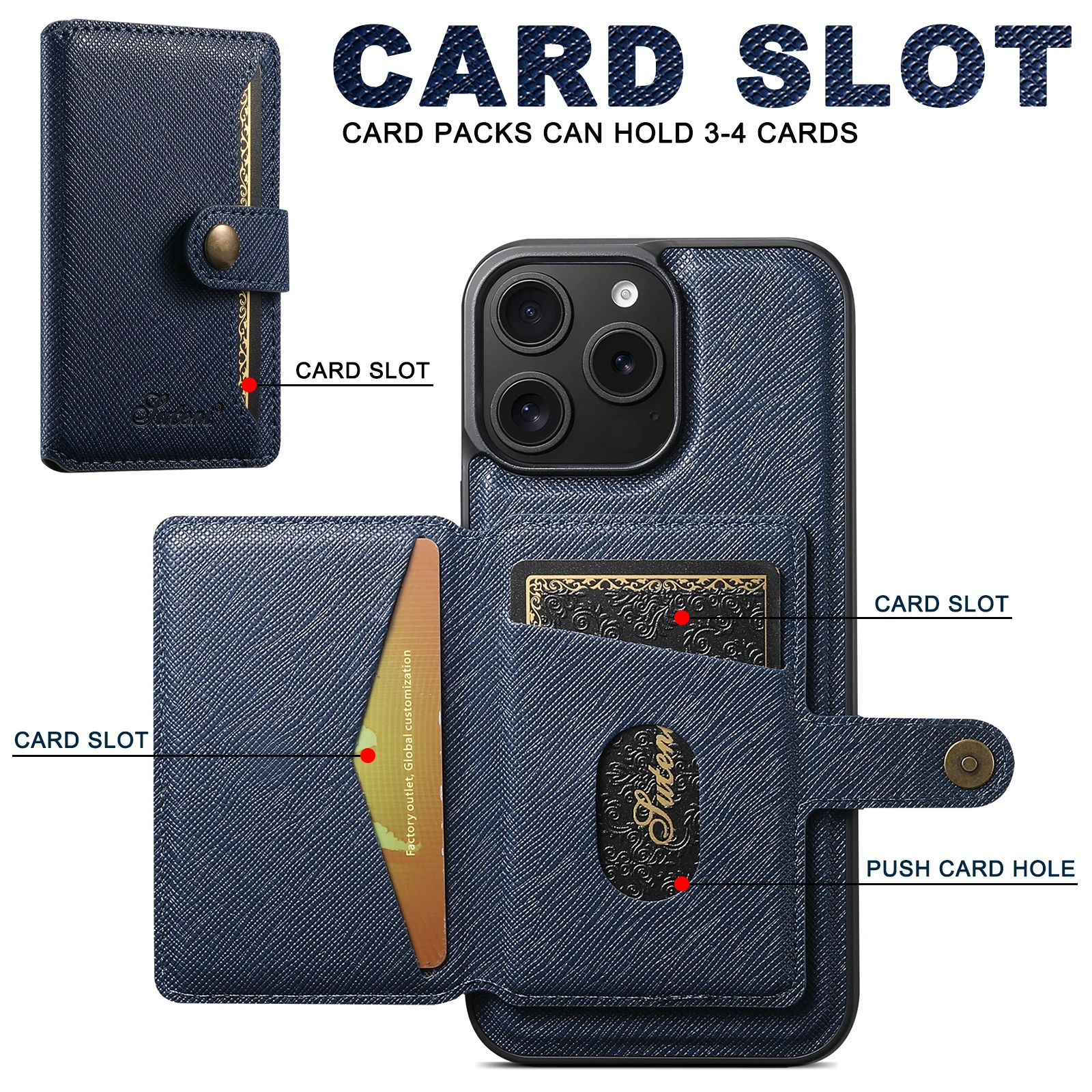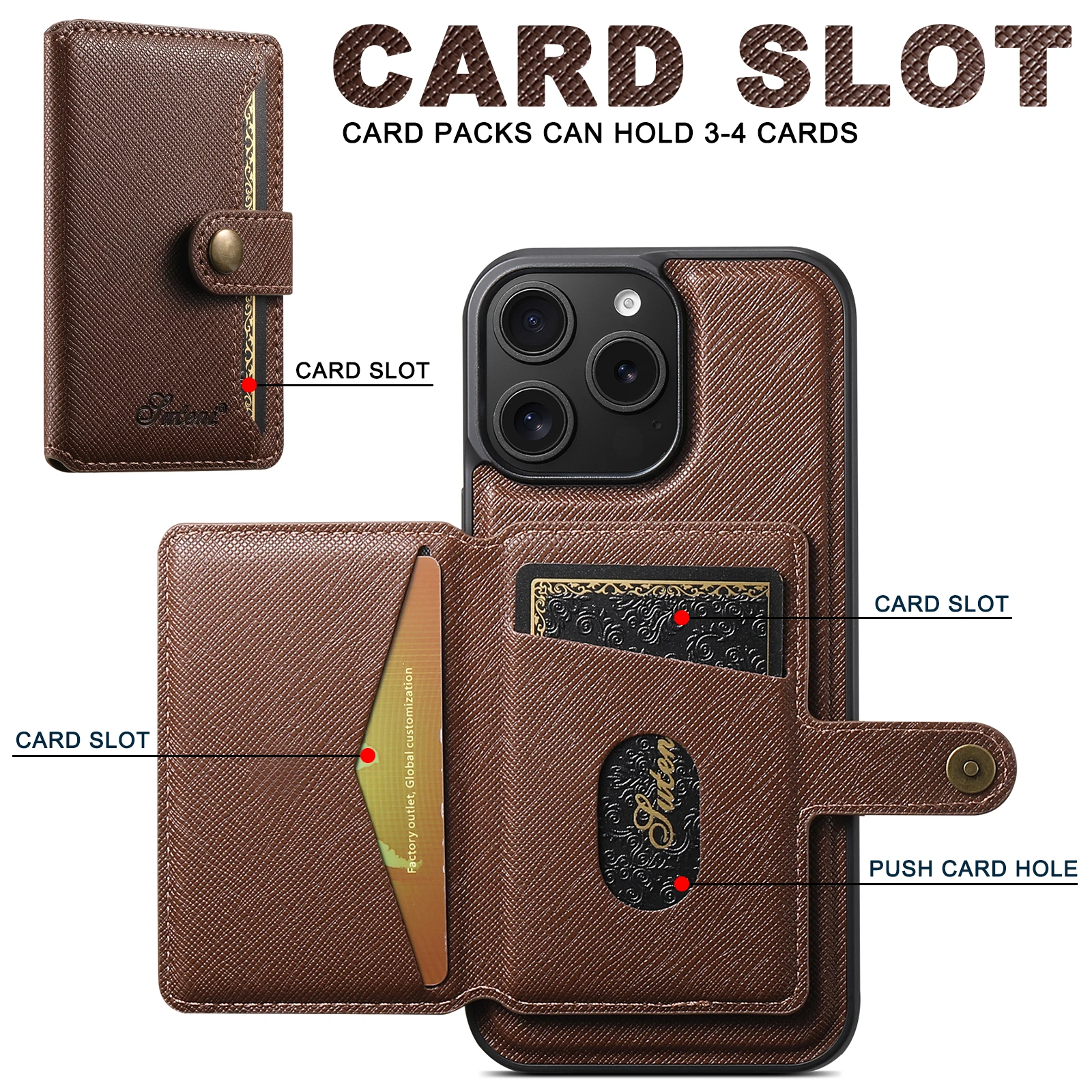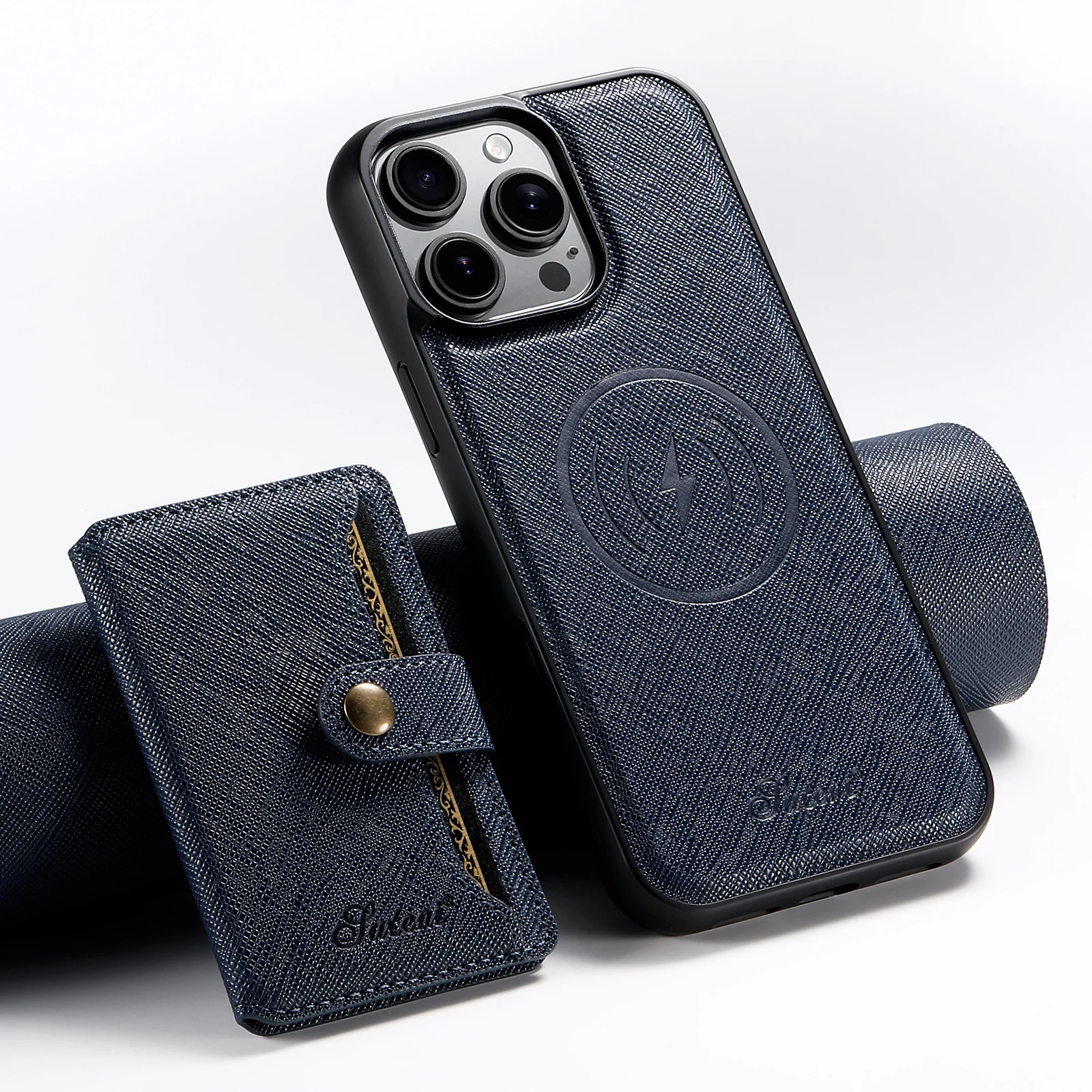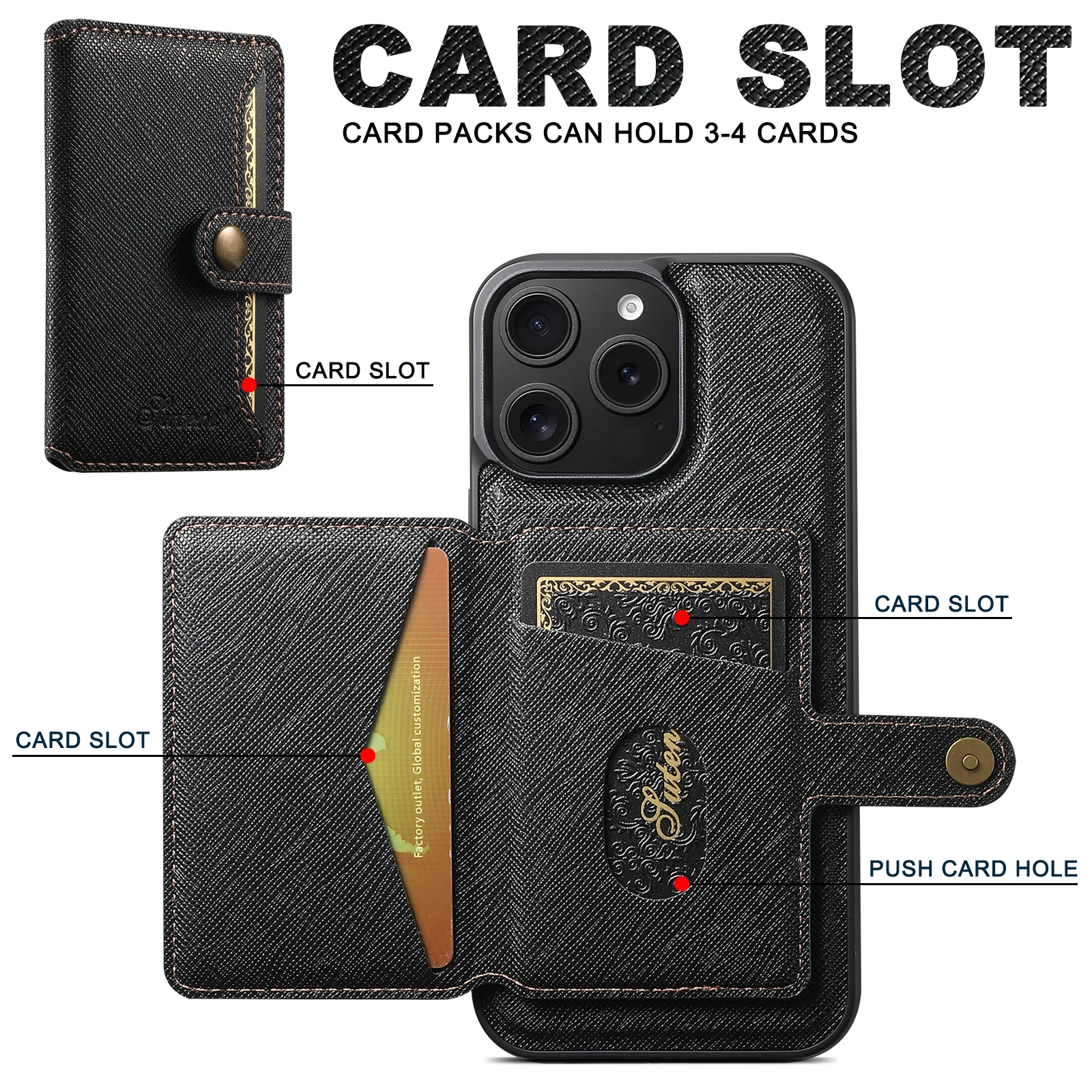 2-in-1 Card Holder Leather Wallet Case Support Wireless Charging for iPhone