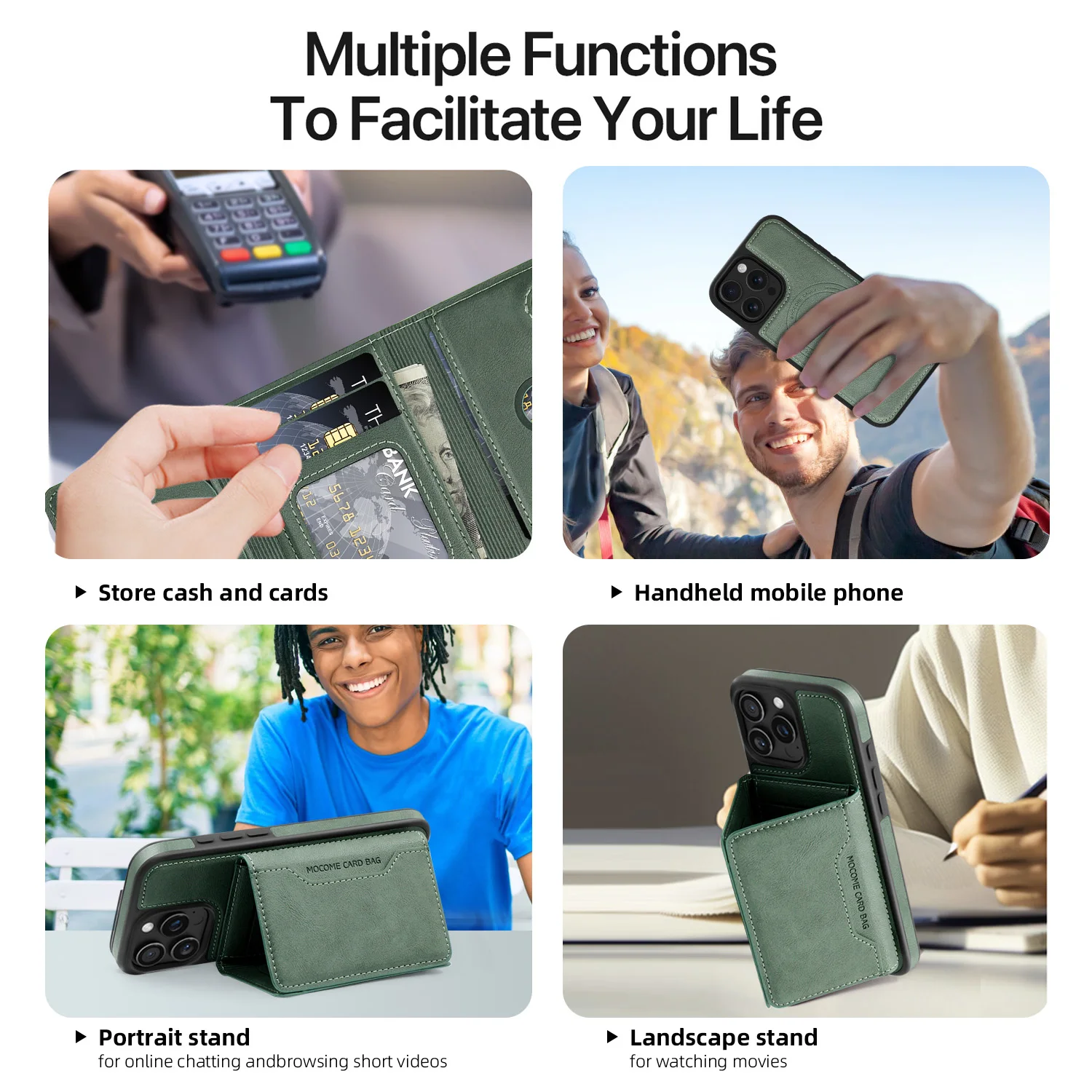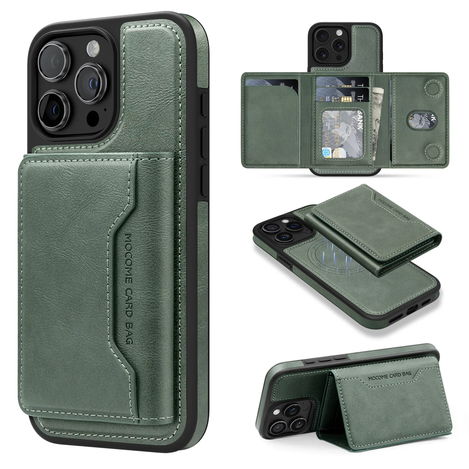 Magsafe Magnetic Multifunctional Card Holder Leather Case For iphone