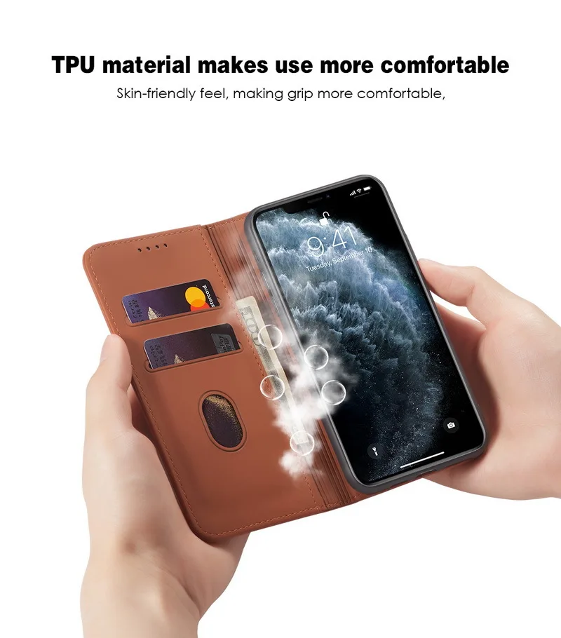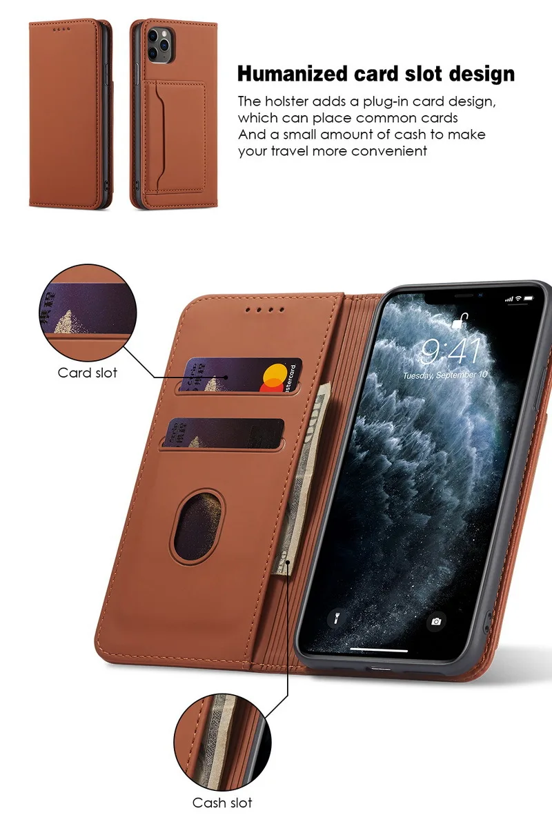 Luxury Leather Magnetic Card Slots Flip Wallet Case For iPhone