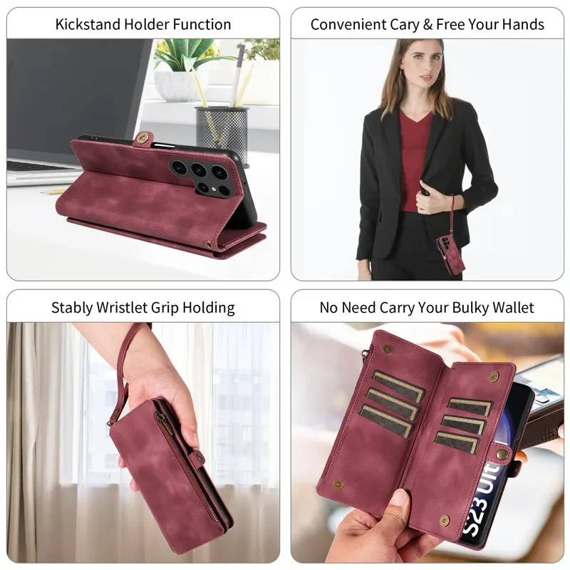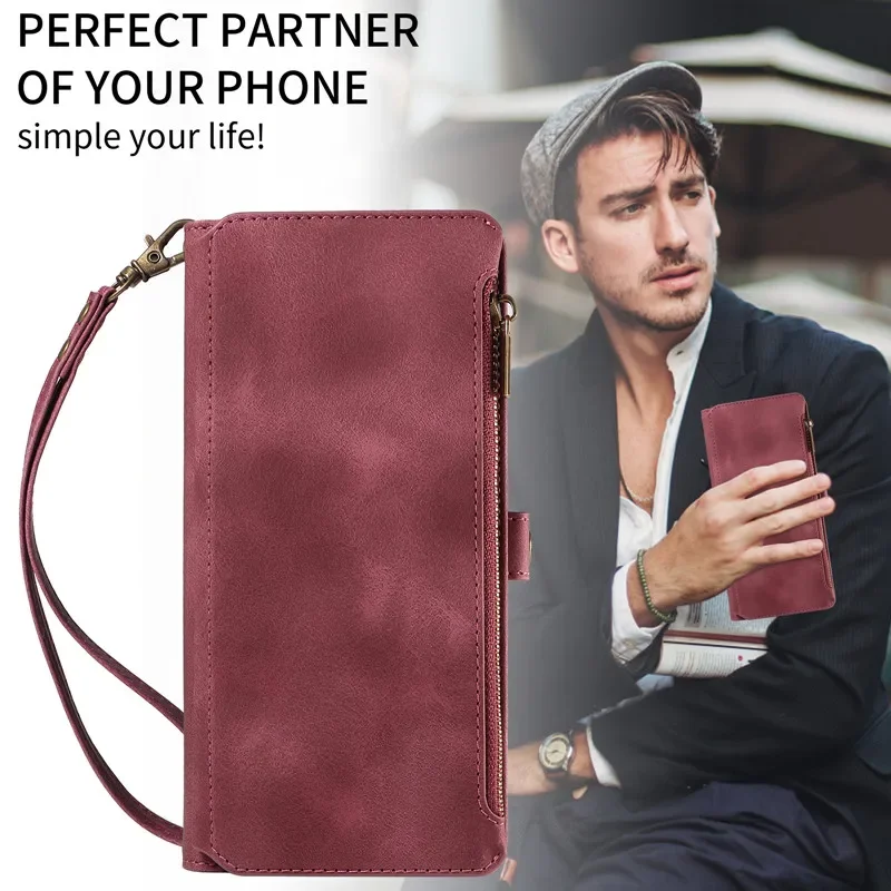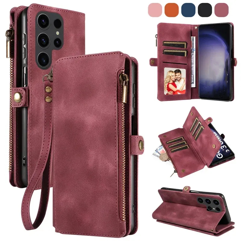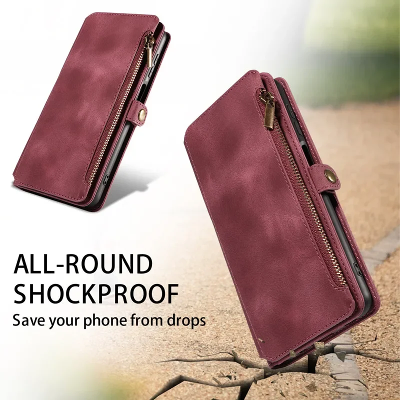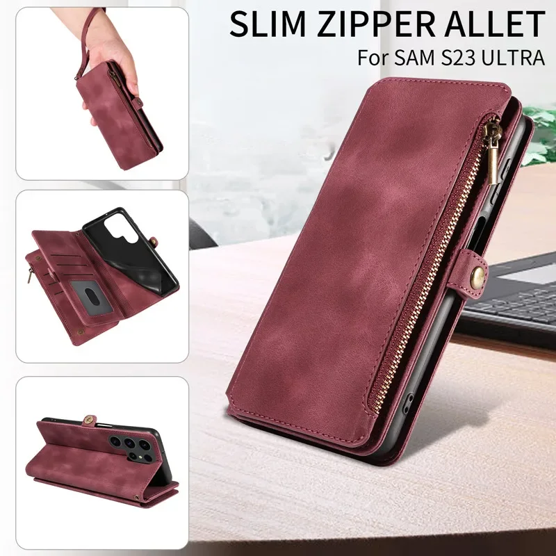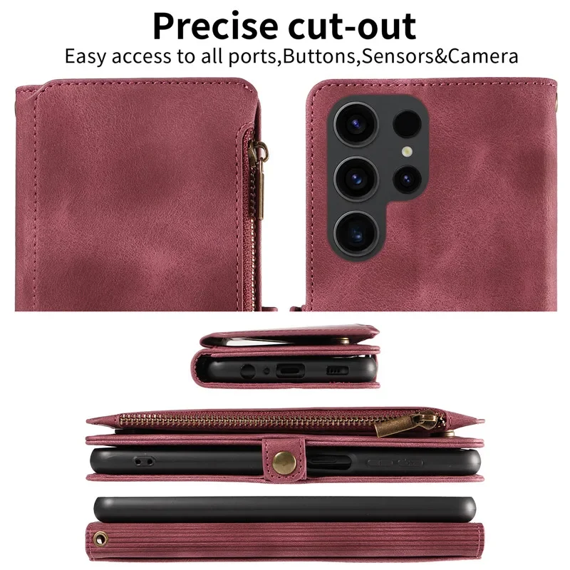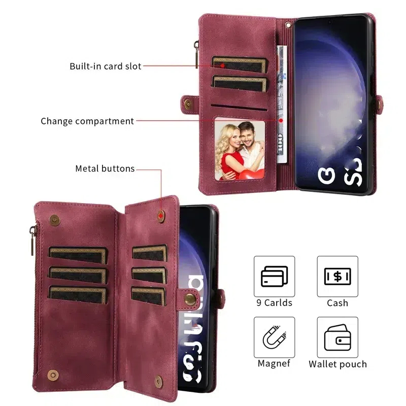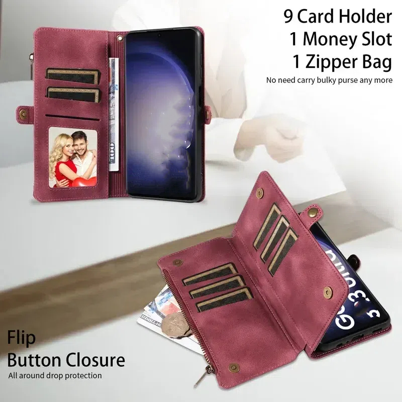 Flip Zip Leather Wallet Case for Samsung
