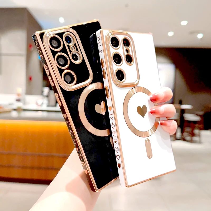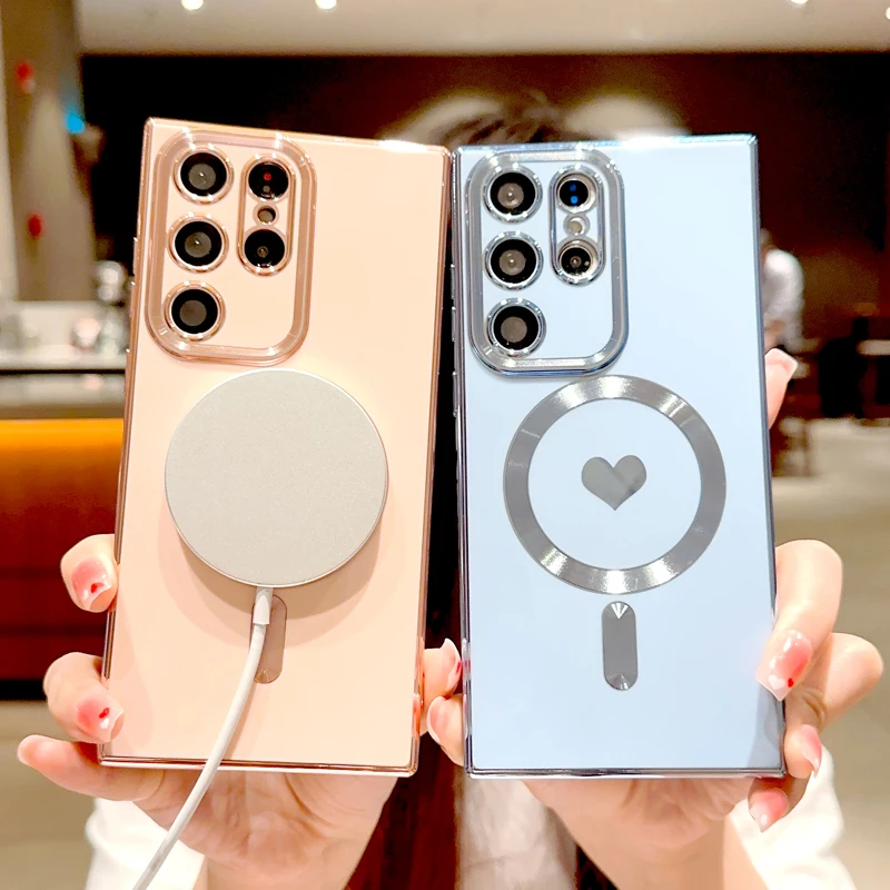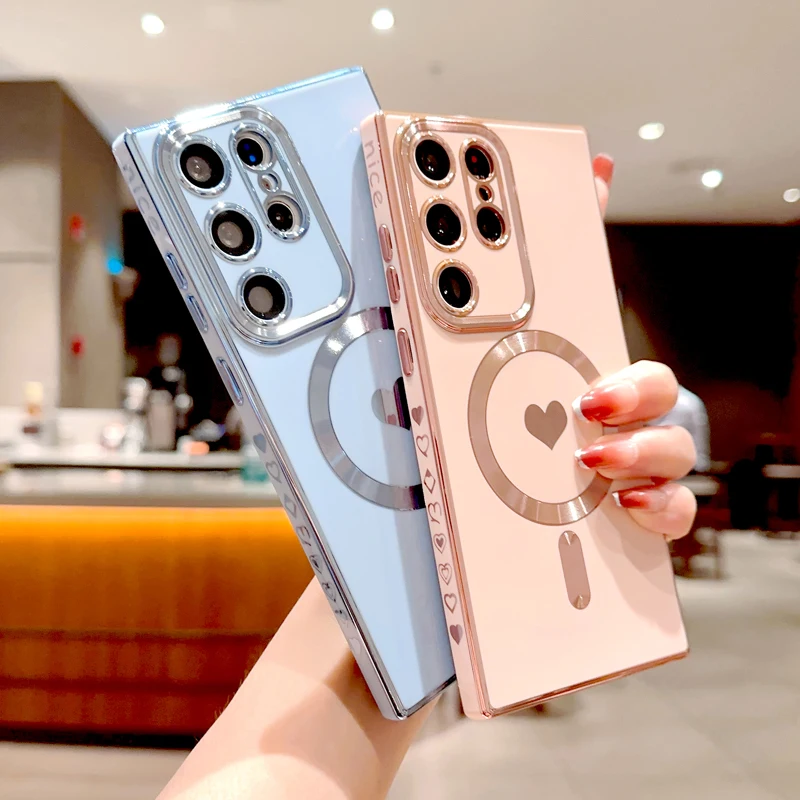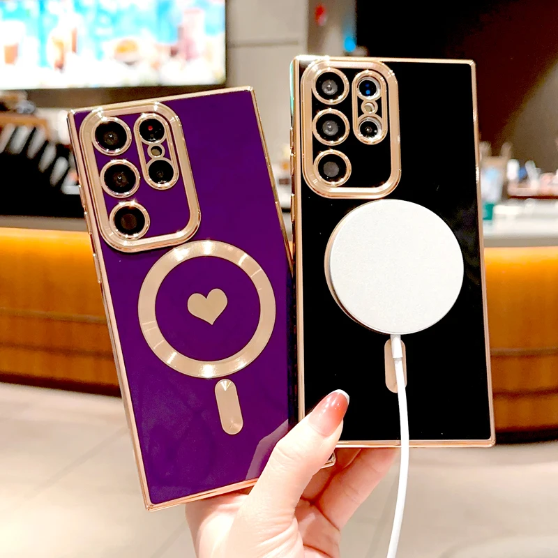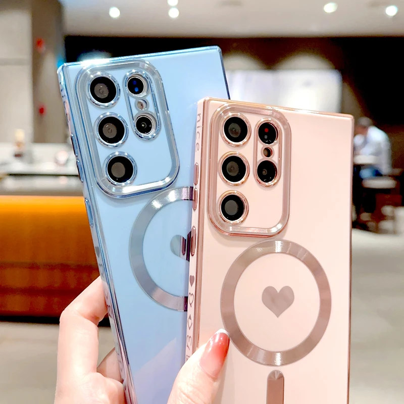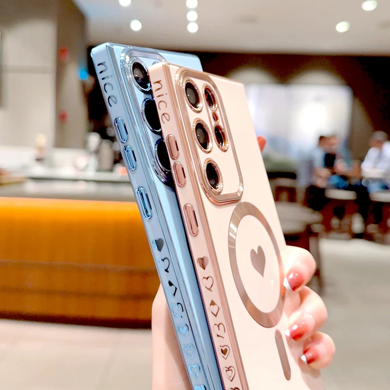 Magsafe Magnetic Love Heart Plating Soft Case For Samsung