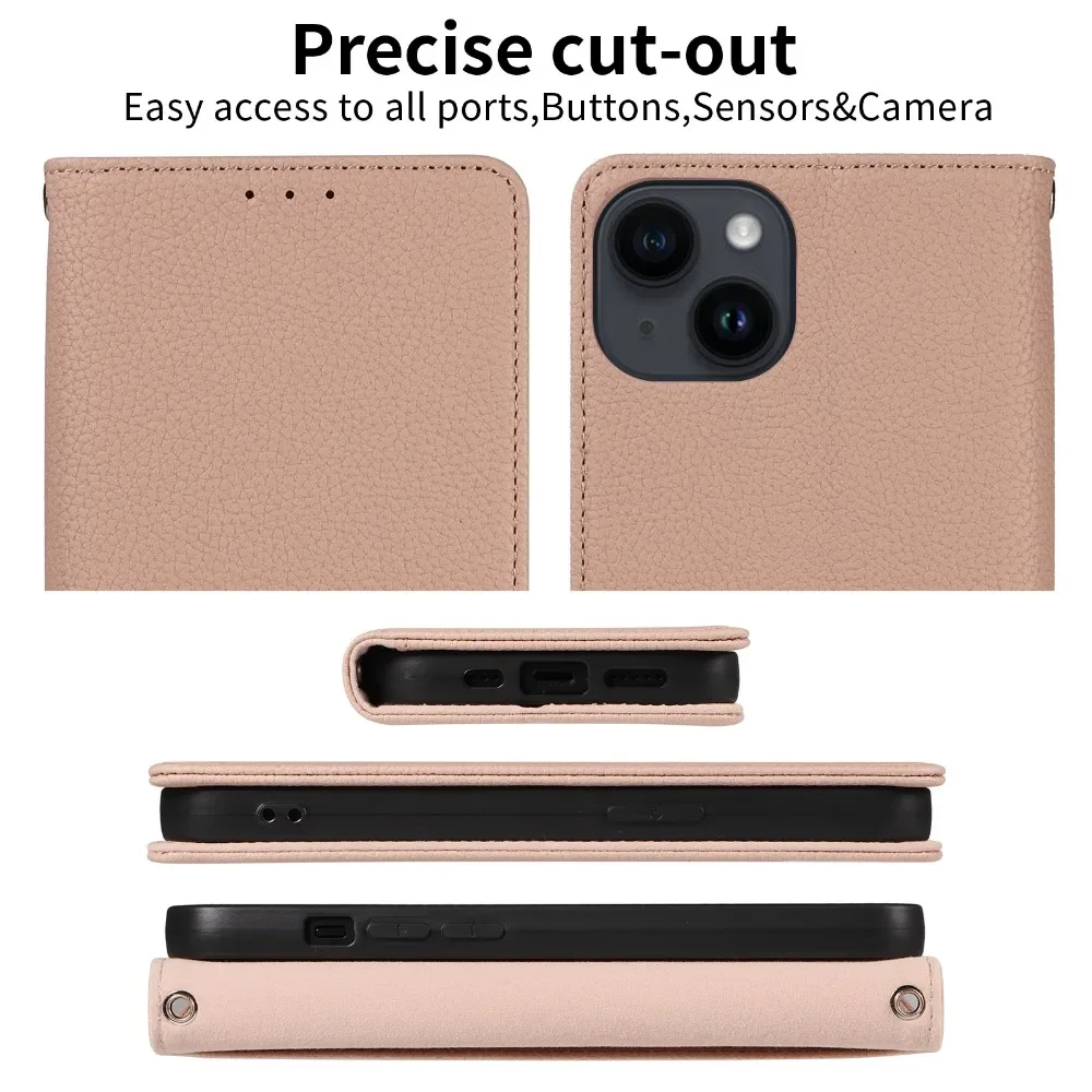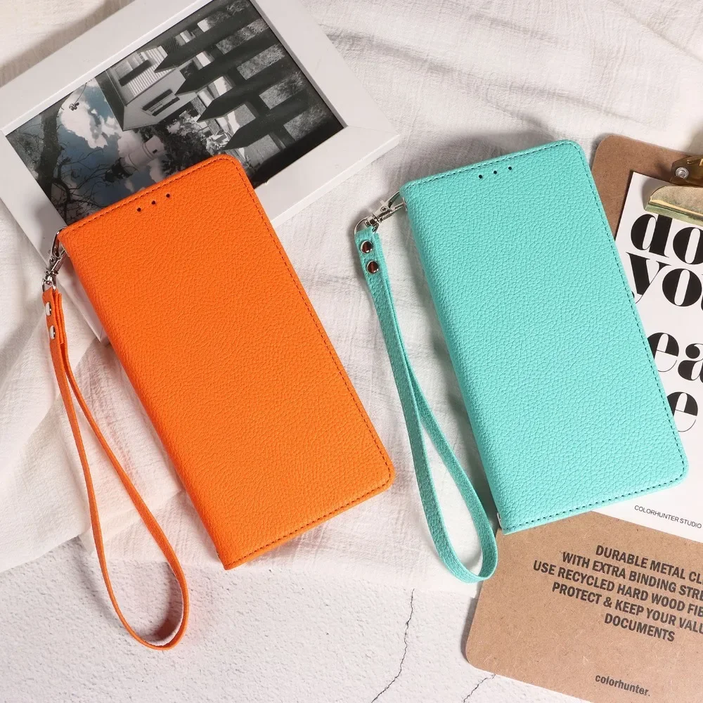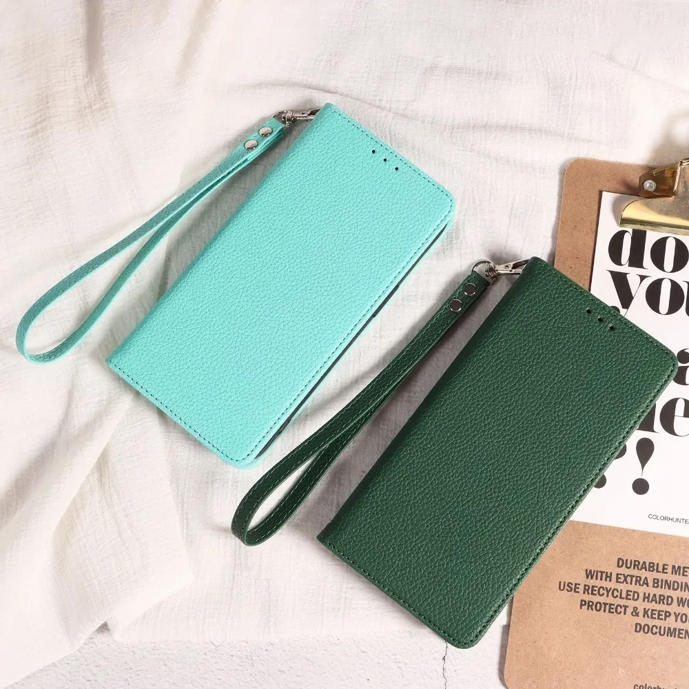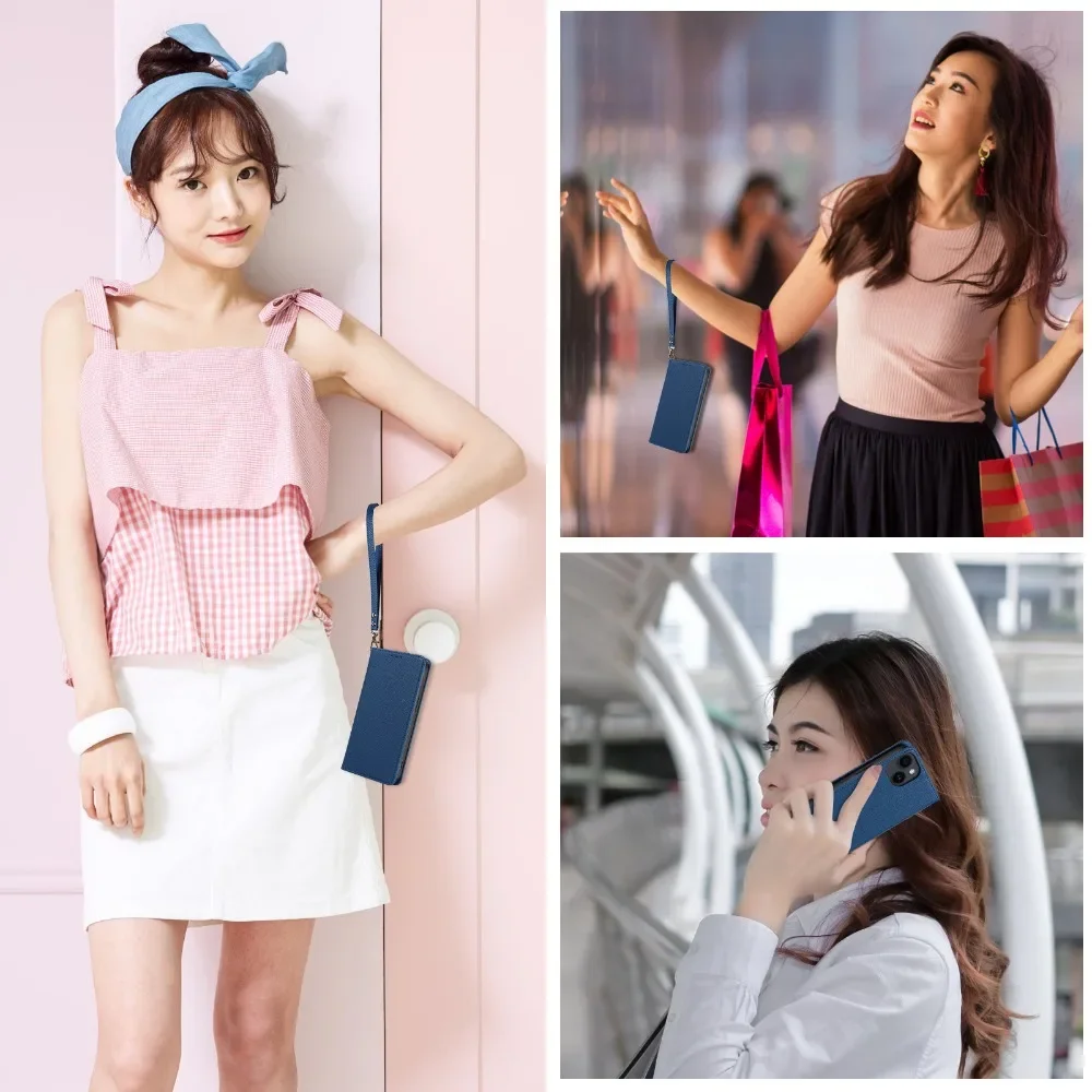Flip Wrist Strap Card Slot Holder Leather Case for iPhone