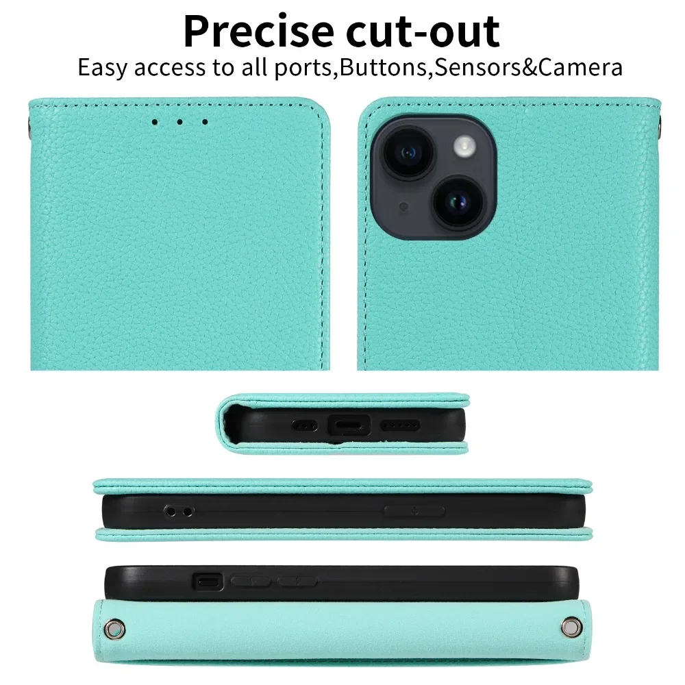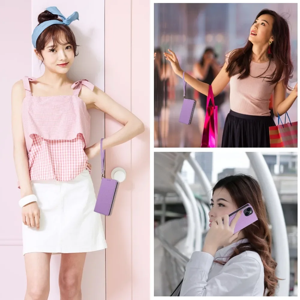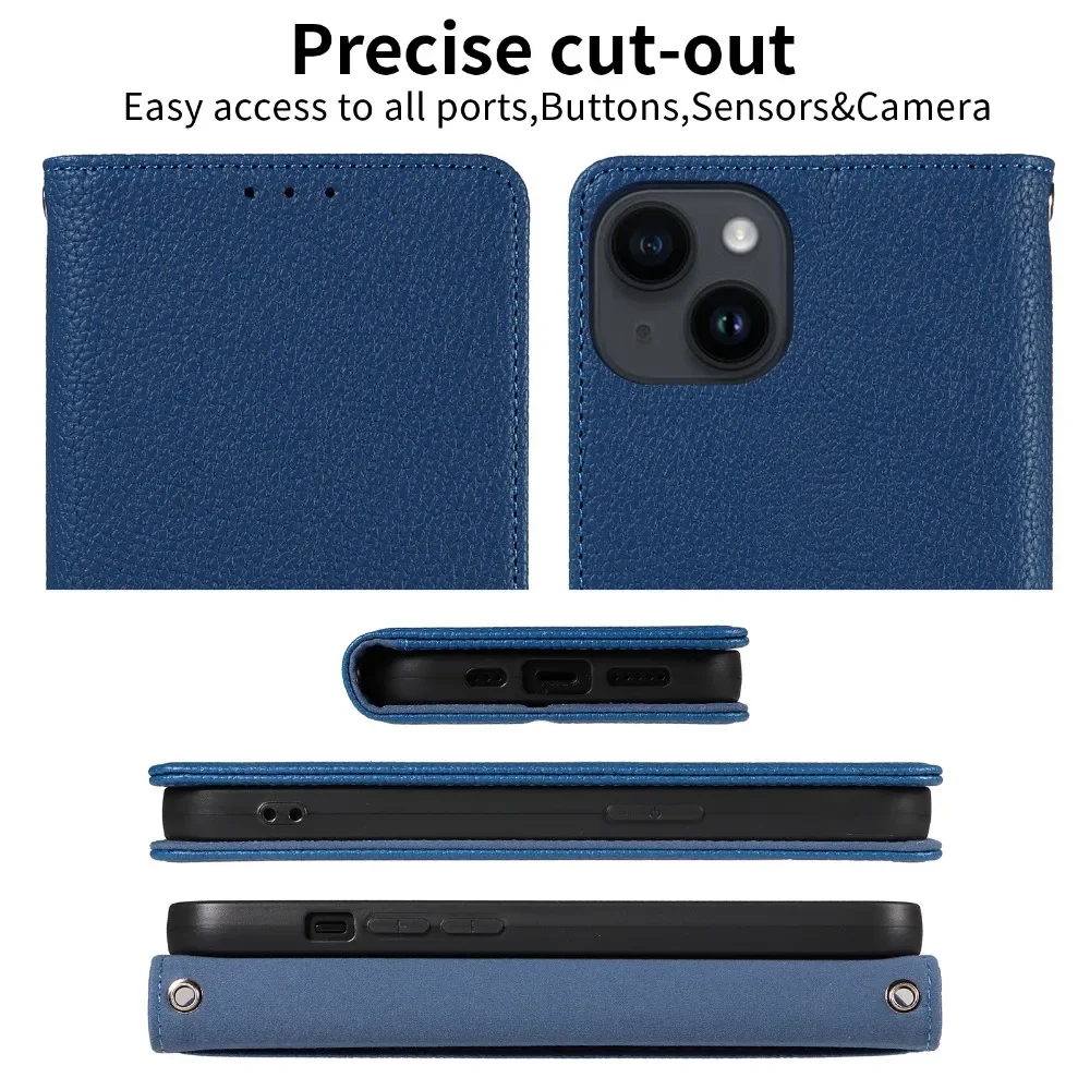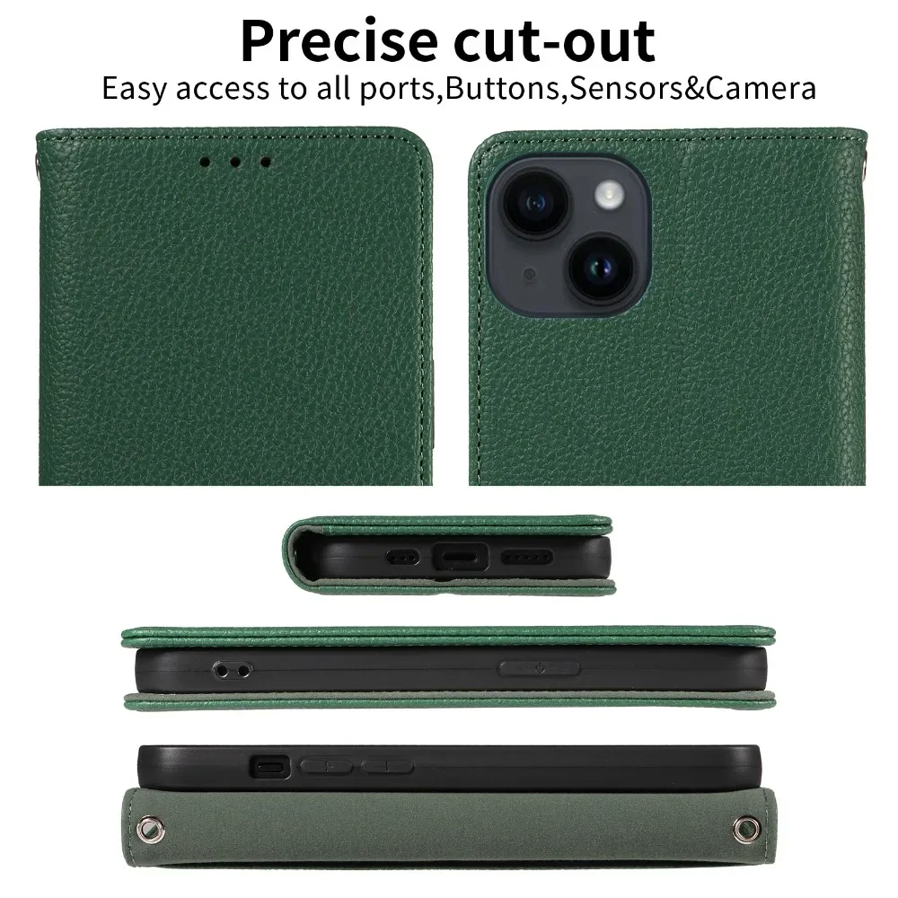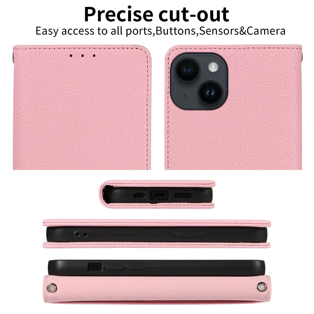 Flip Wrist Strap Card Slot Holder Leather Case for iPhone