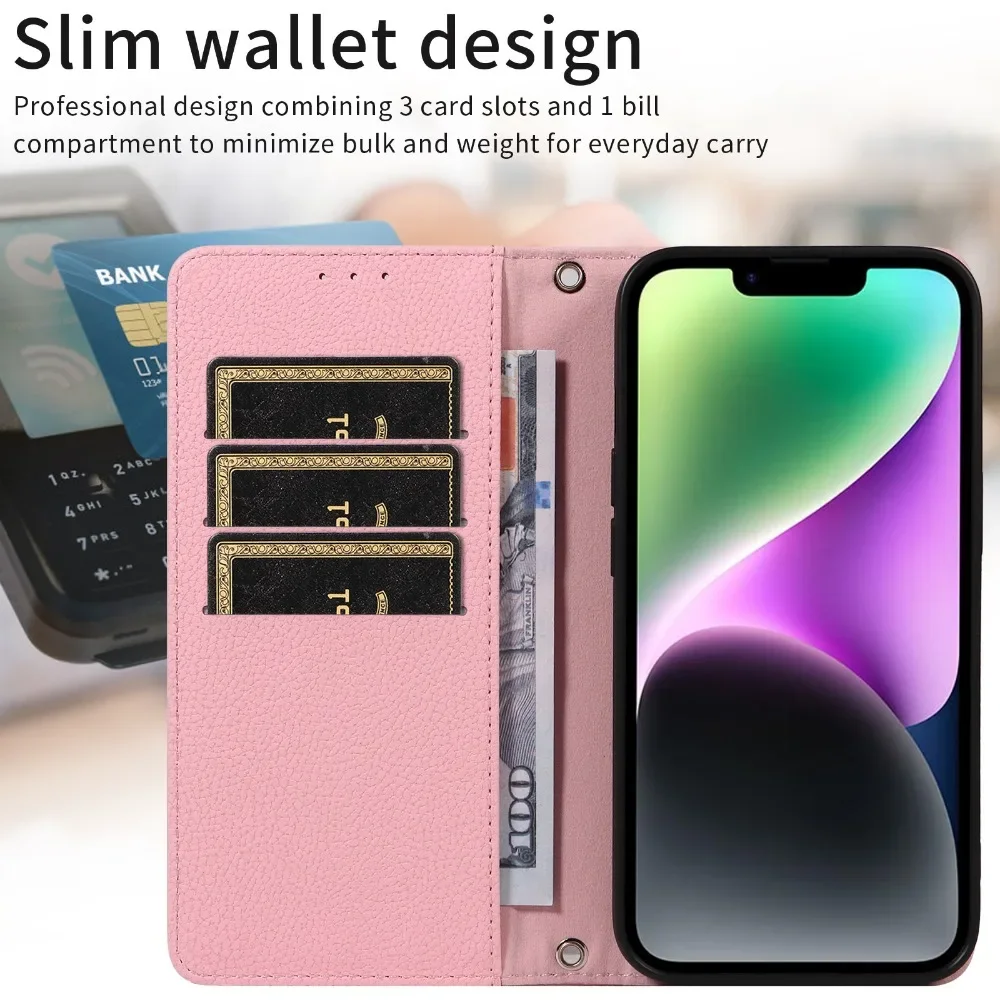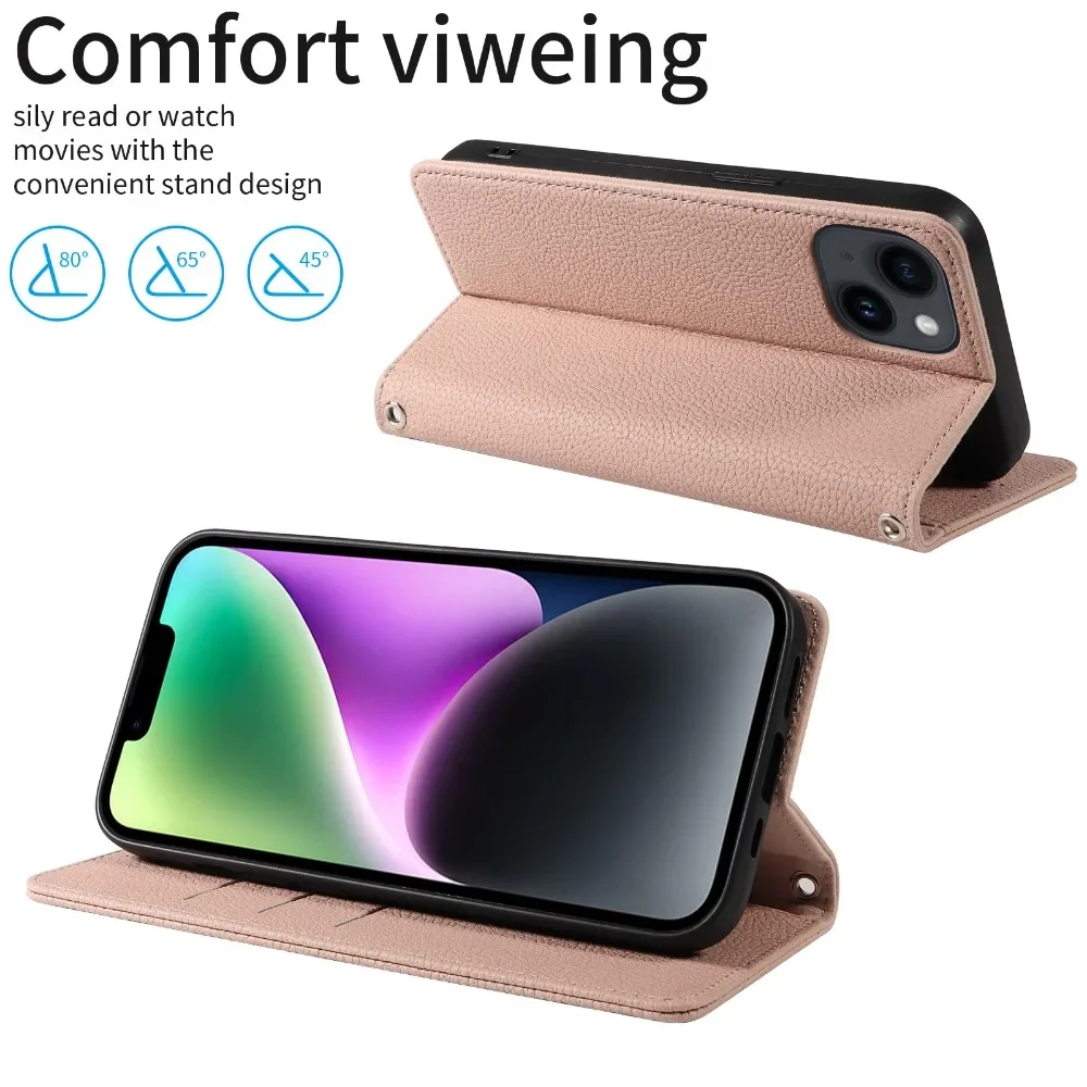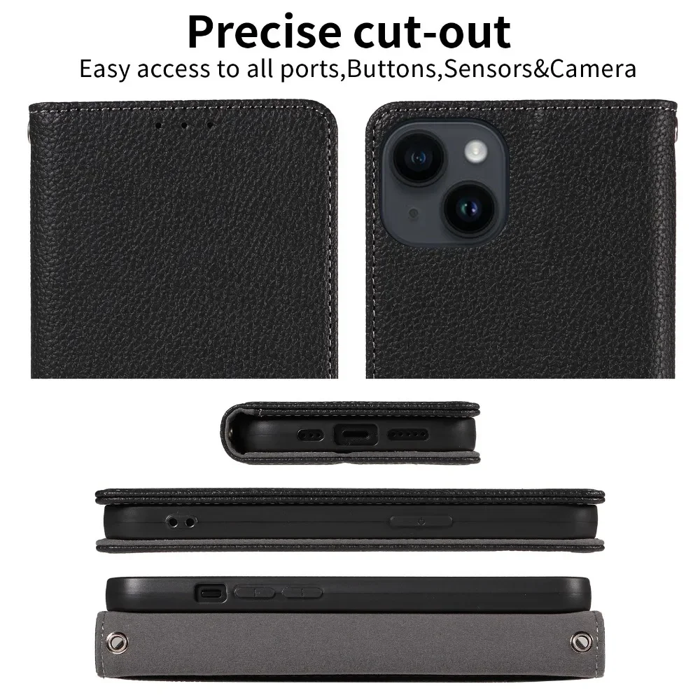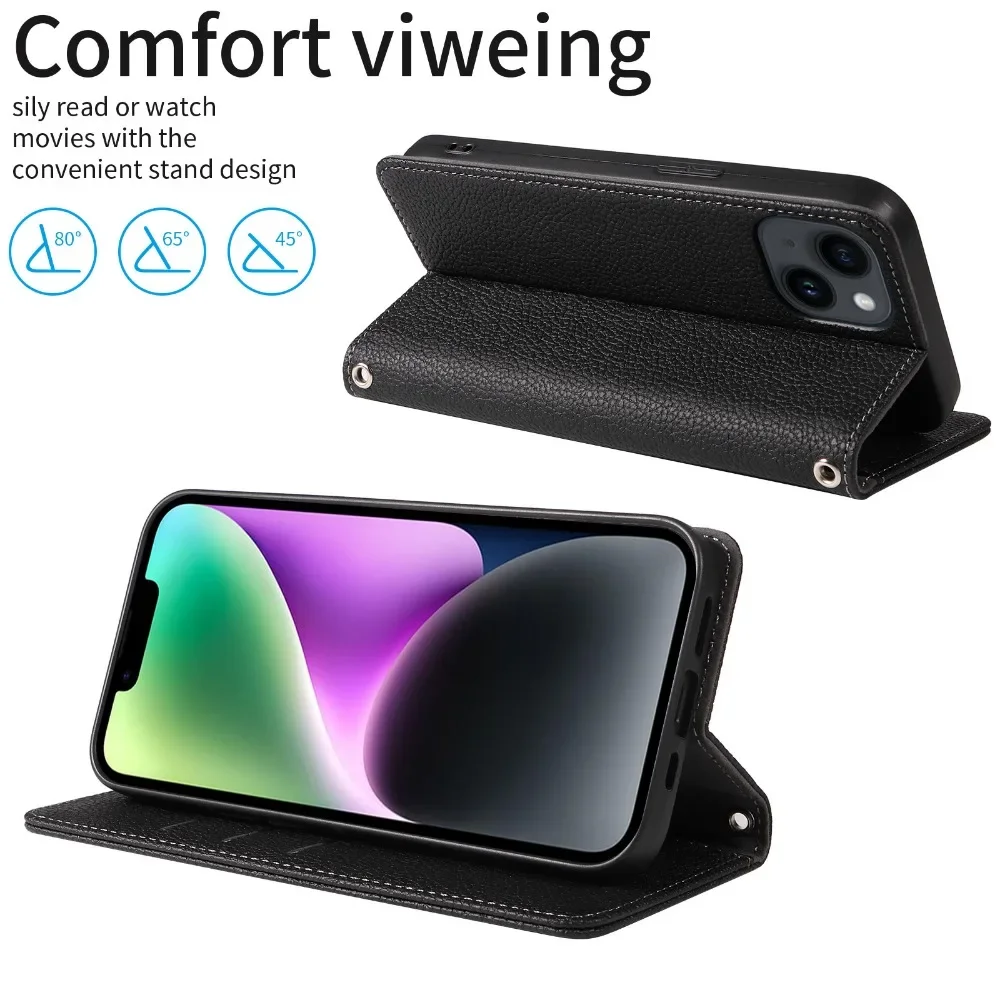 Flip Wrist Strap Card Slot Holder Leather Case for iPhone