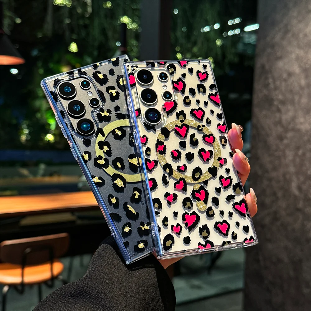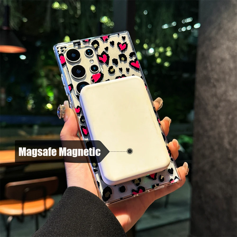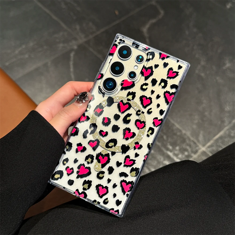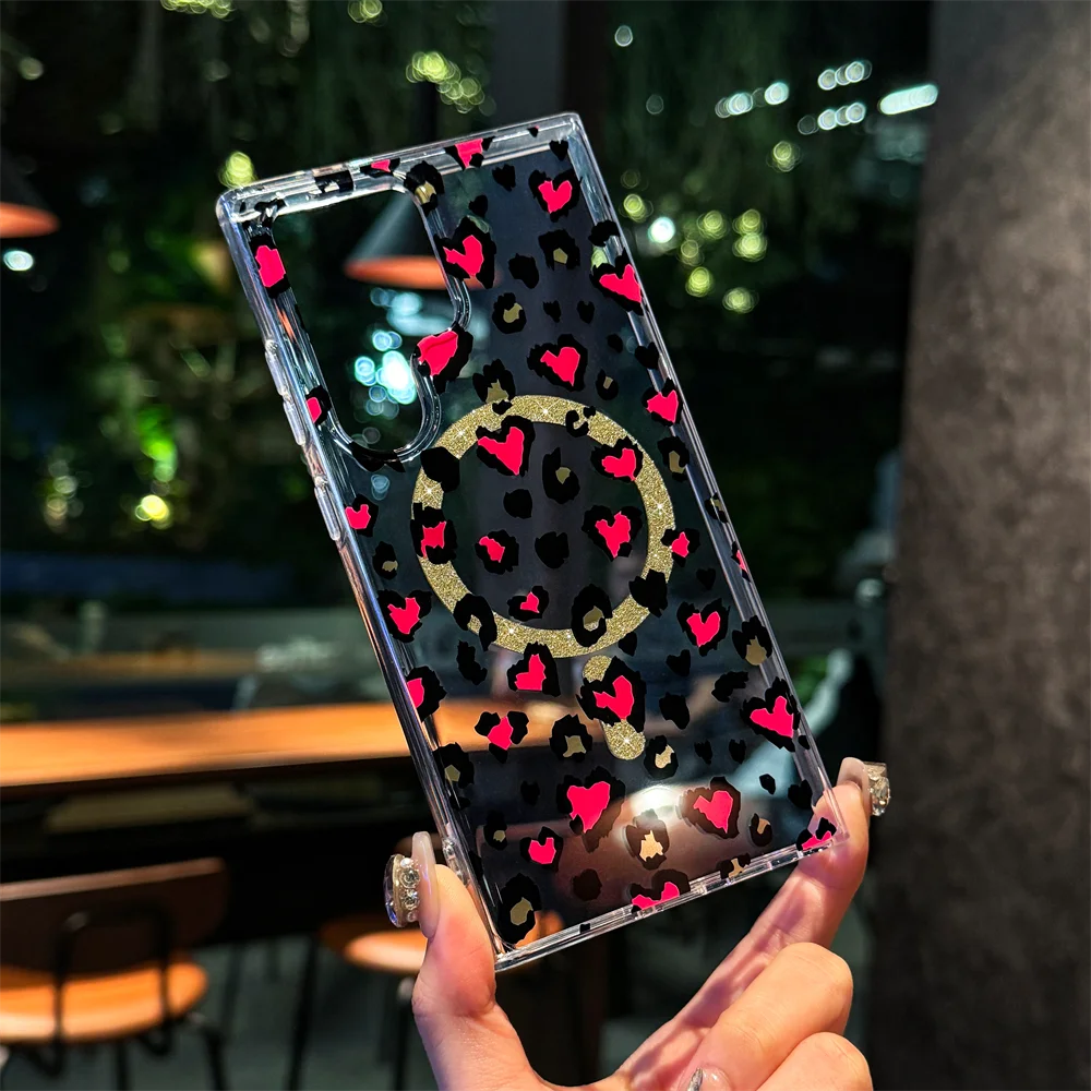 Magsafe Magnetic Slim Heart Shaped Leopard Print Case for Samsung