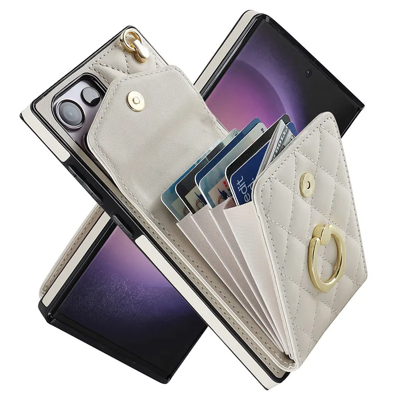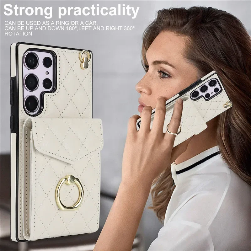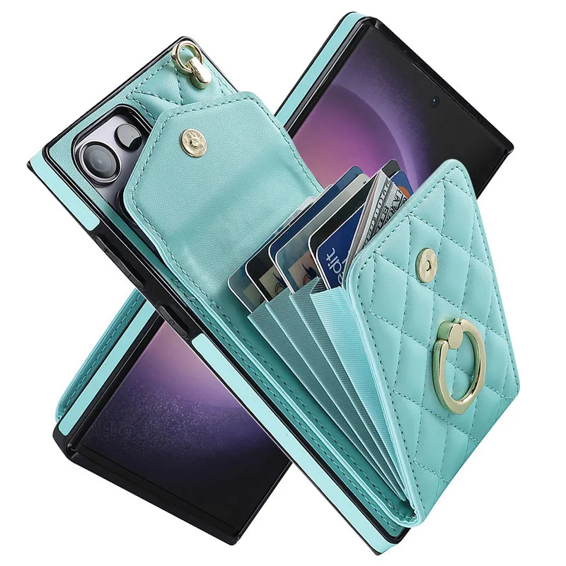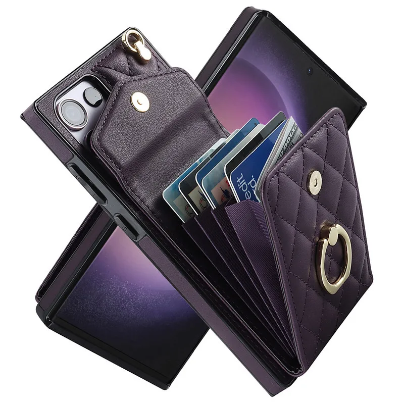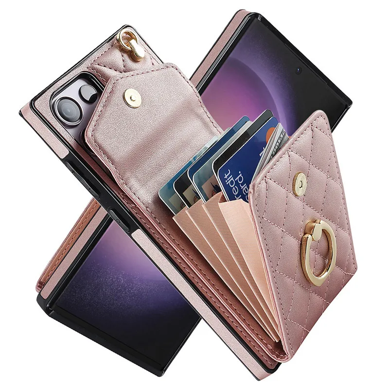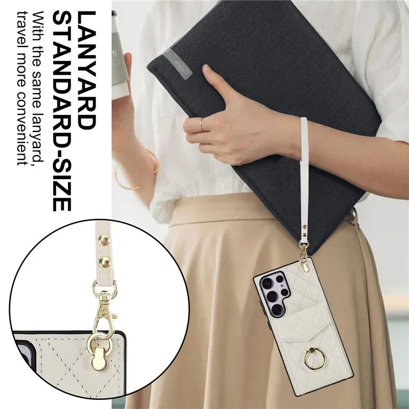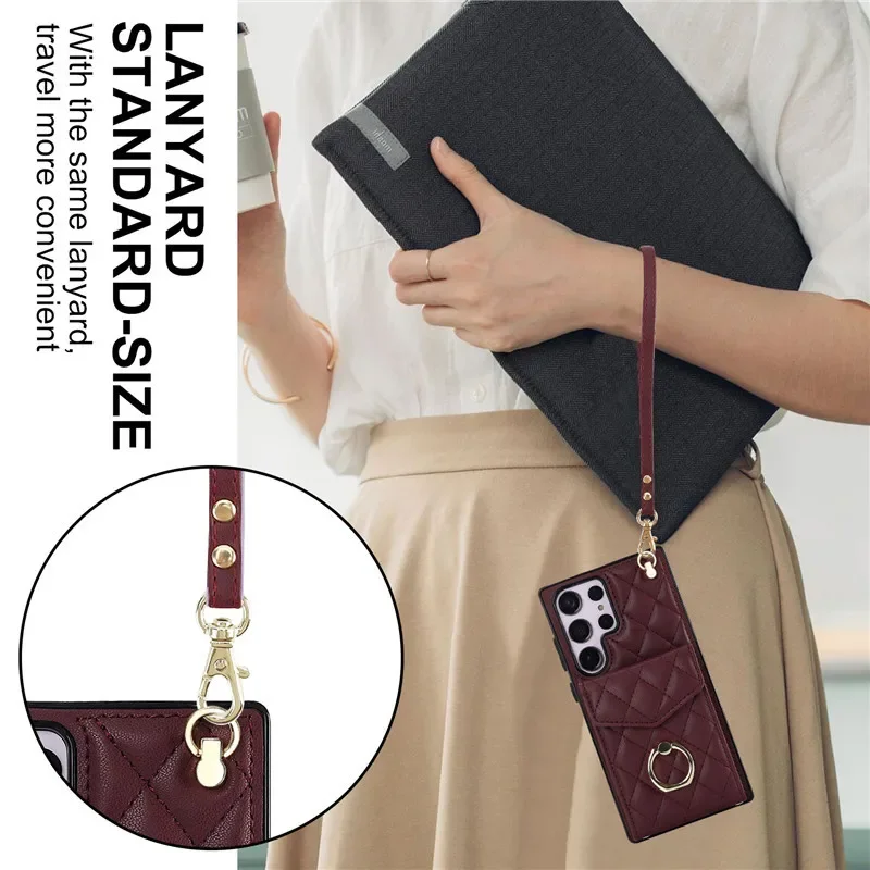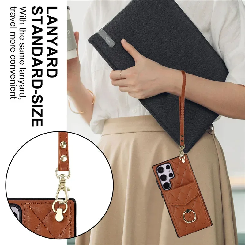 Lanyard Leather Wallet Card Case for Samsung