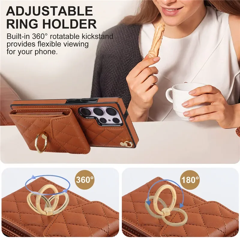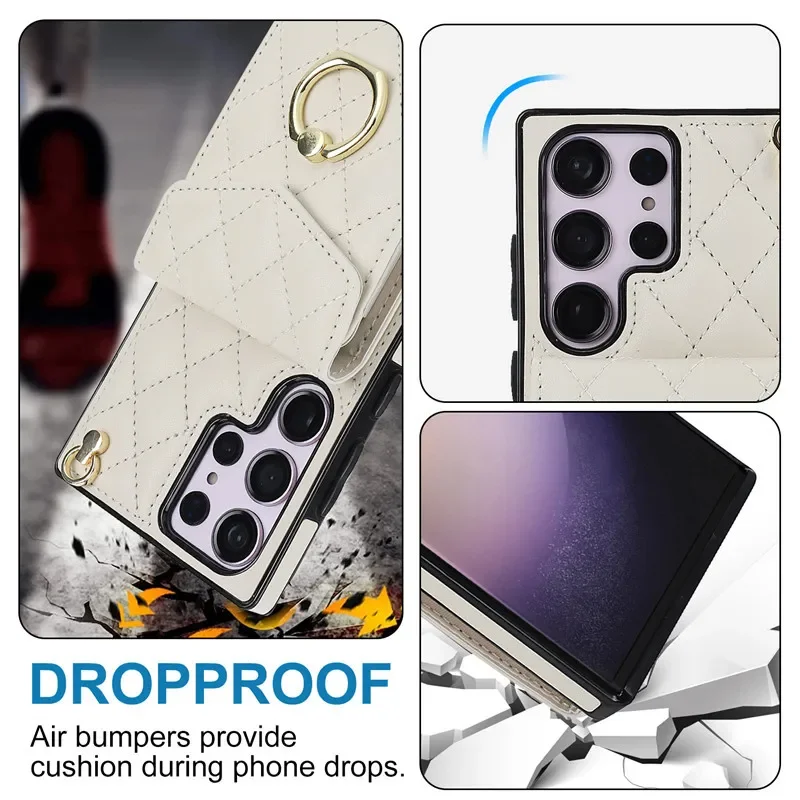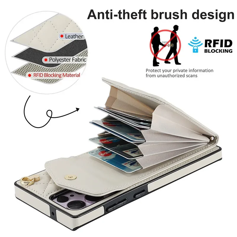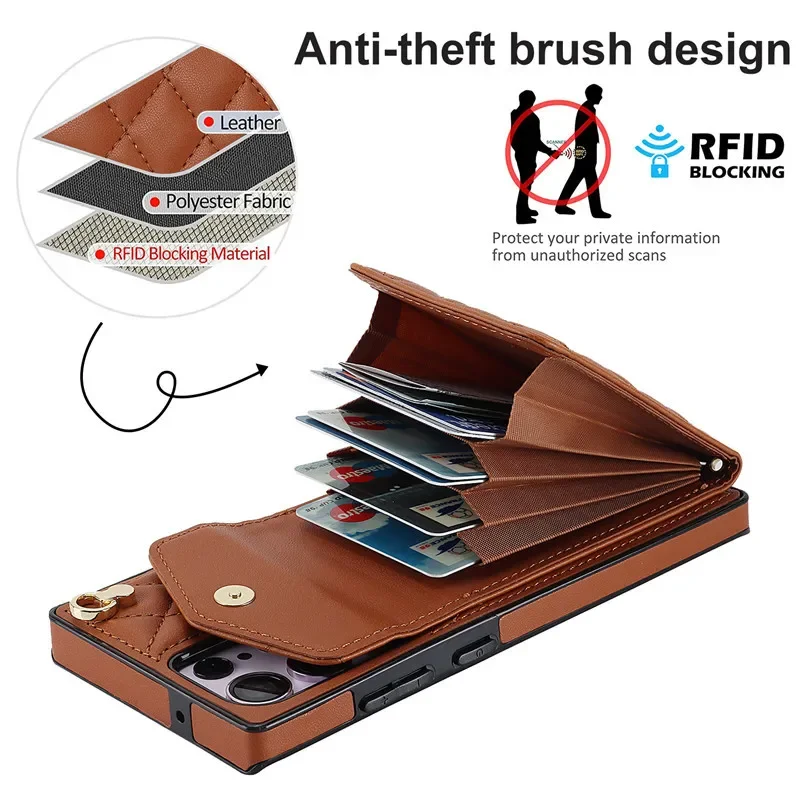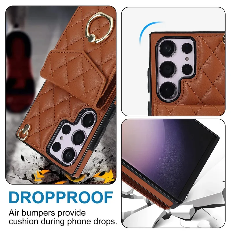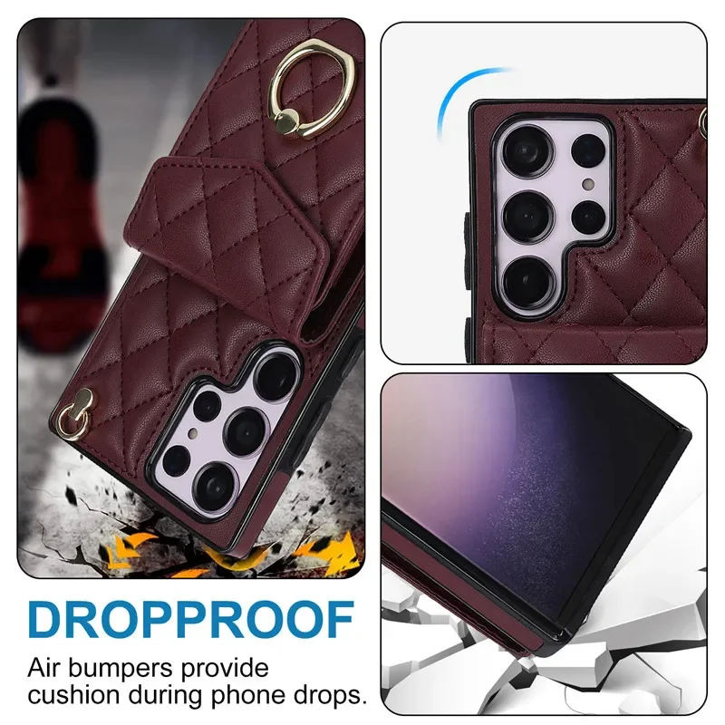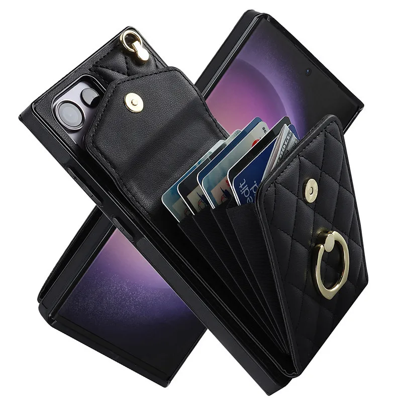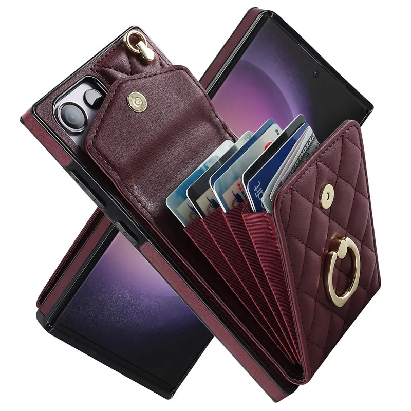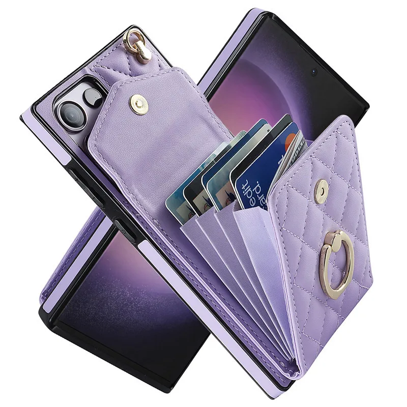 Lanyard Leather Wallet Card Case for Samsung
