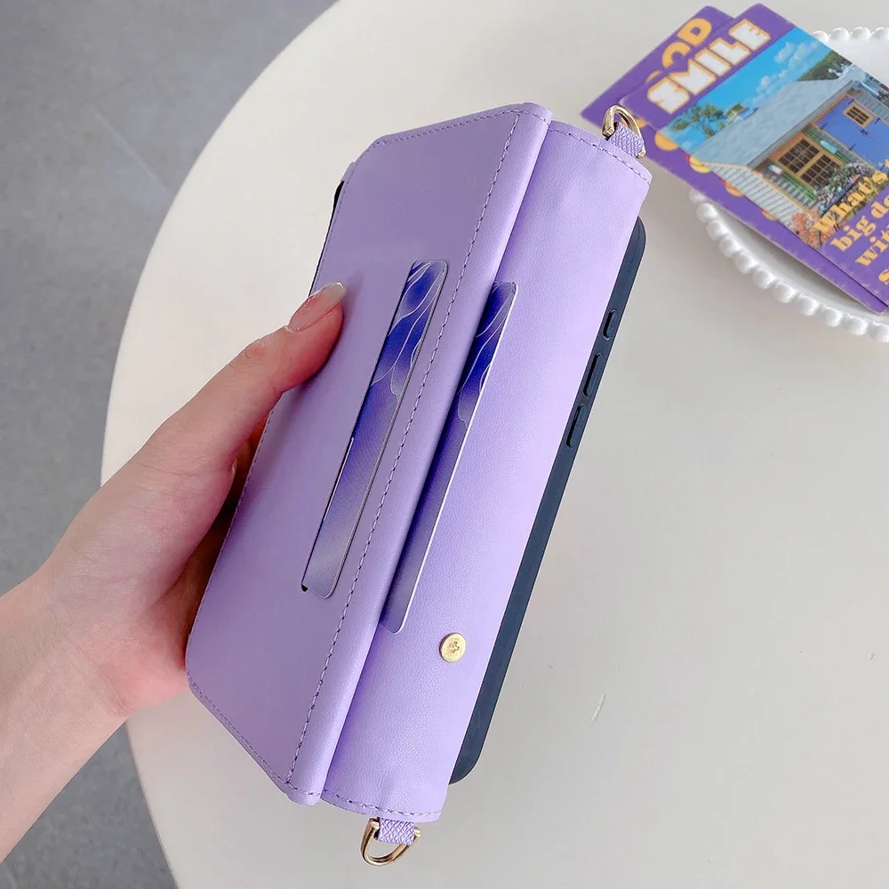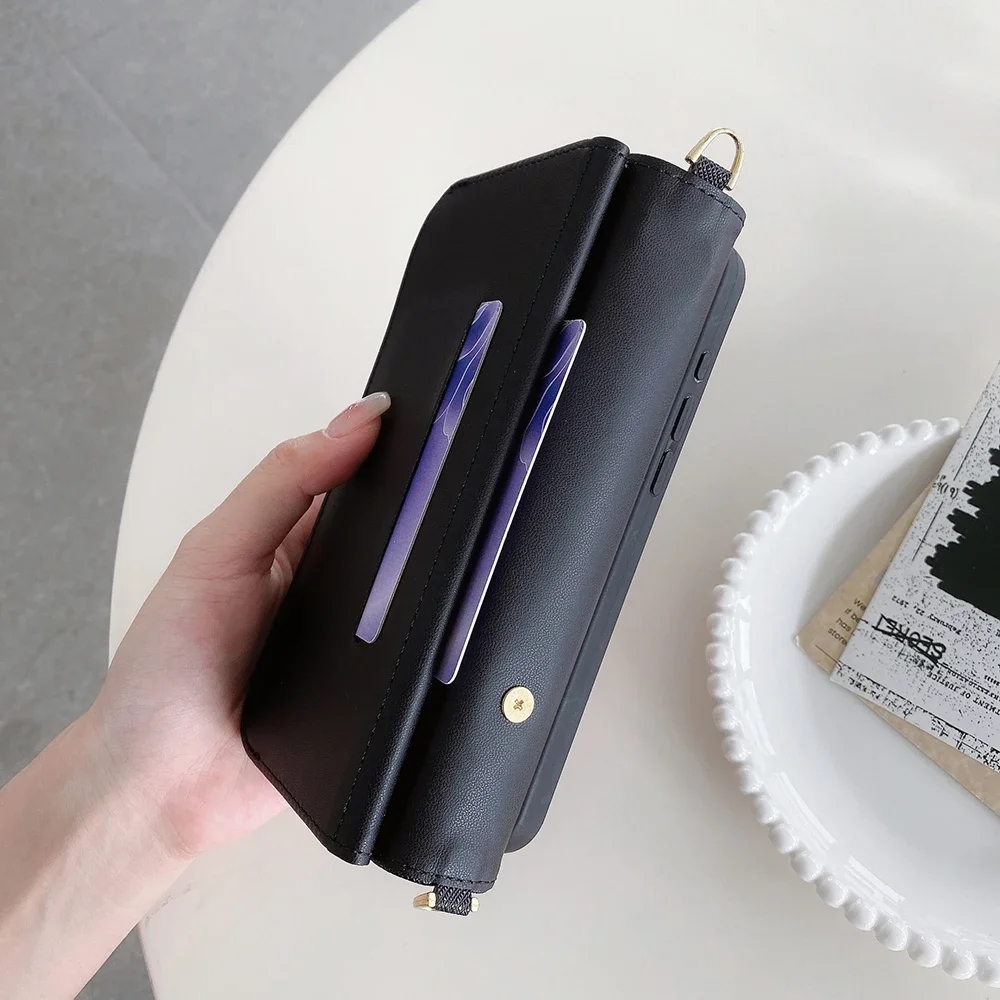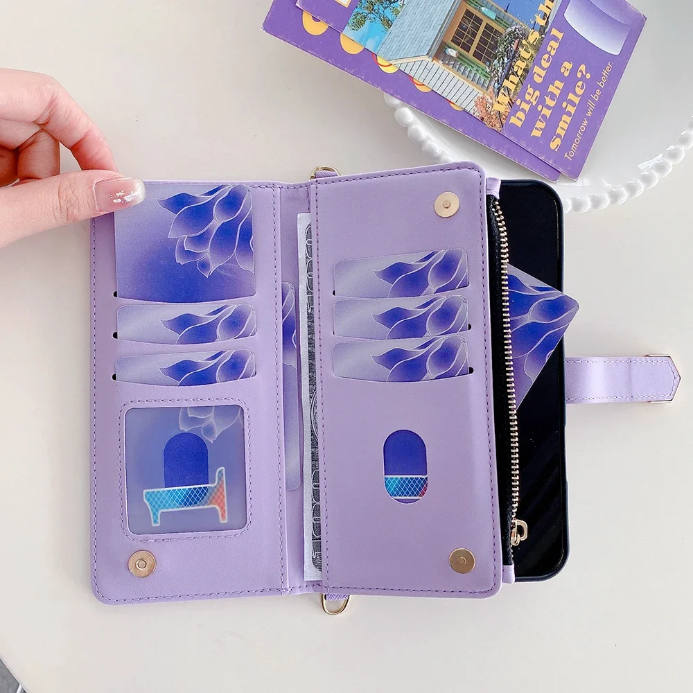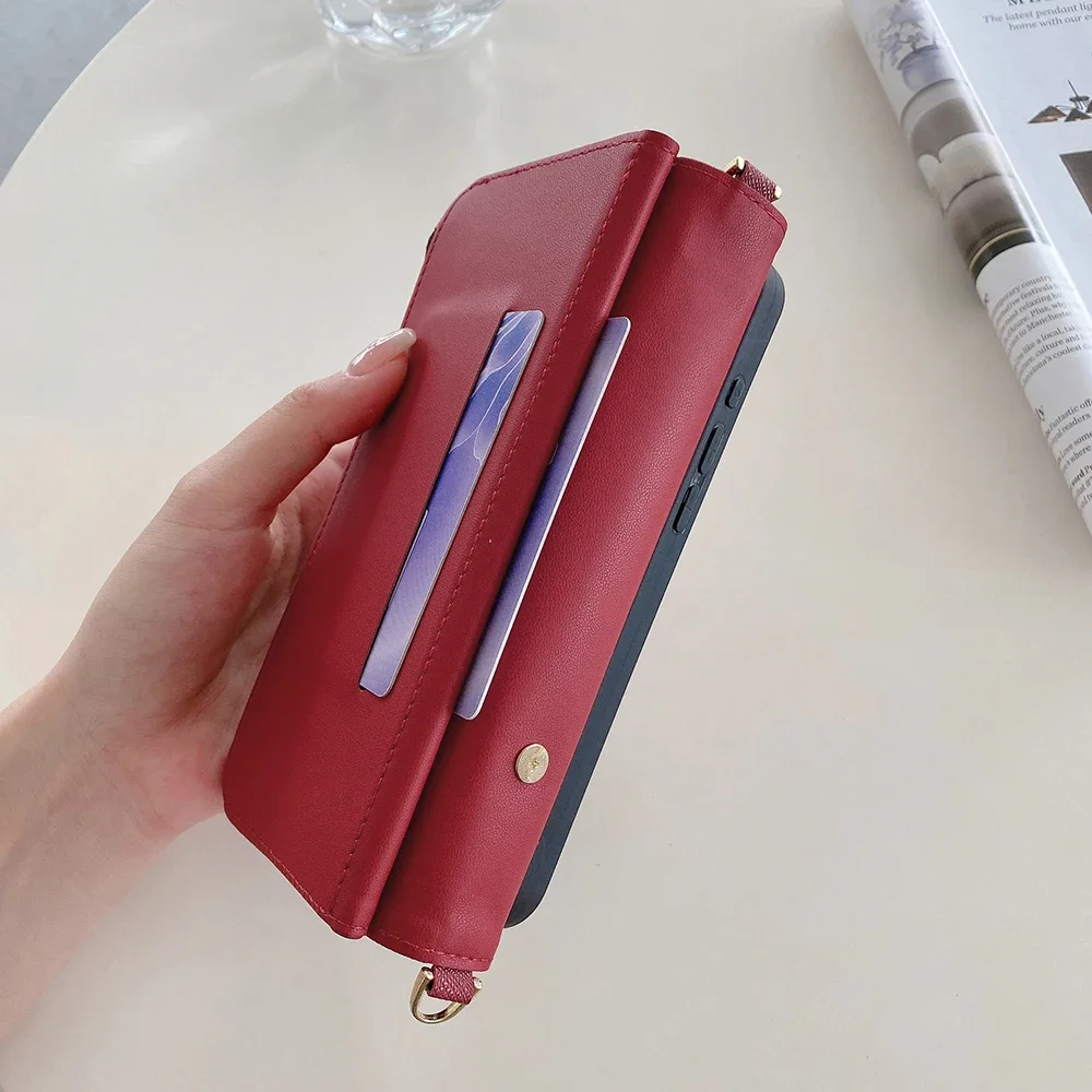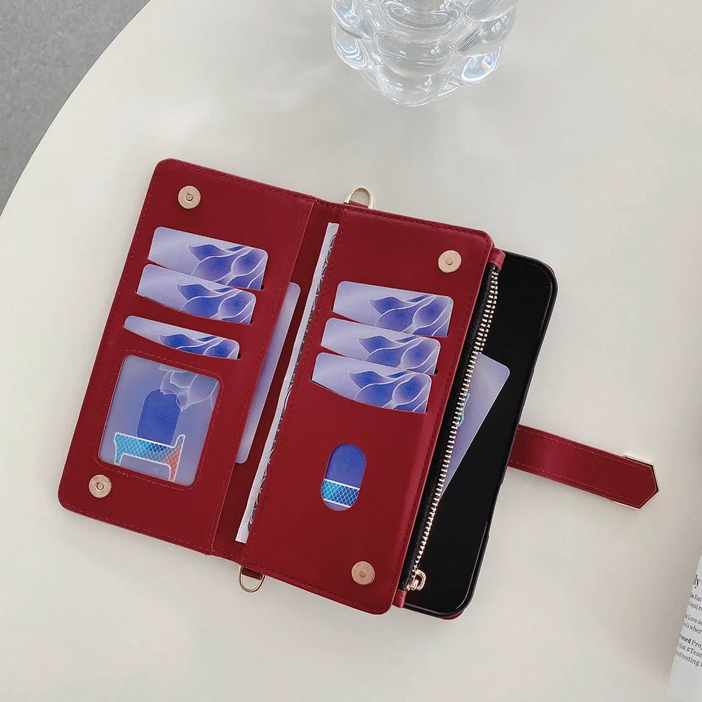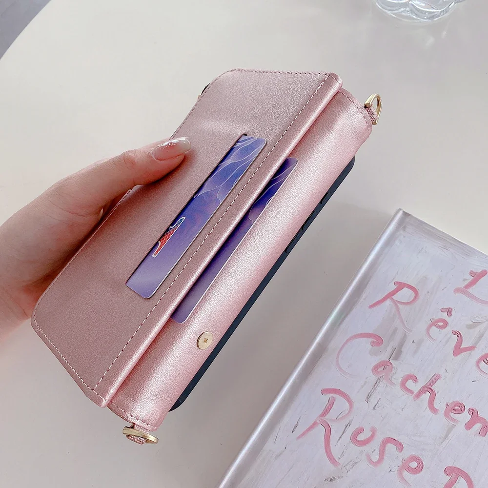 Fashion Flip Card Slots Leather Wallet Case for iPhone With Metal Strap