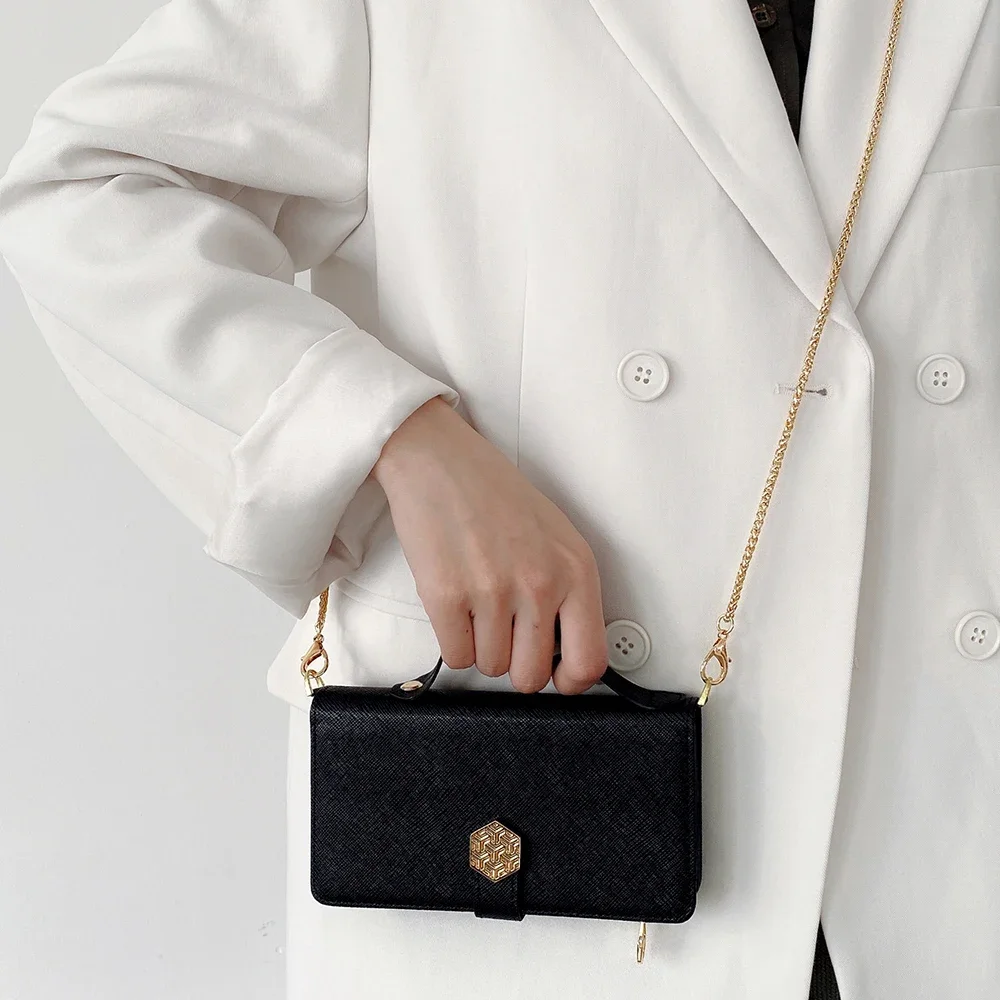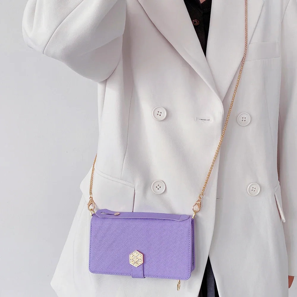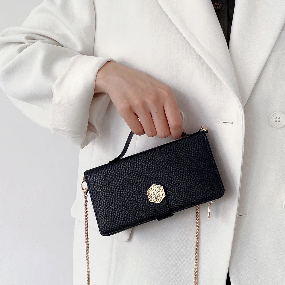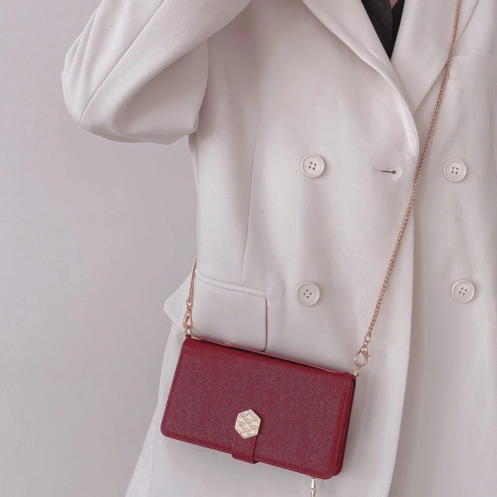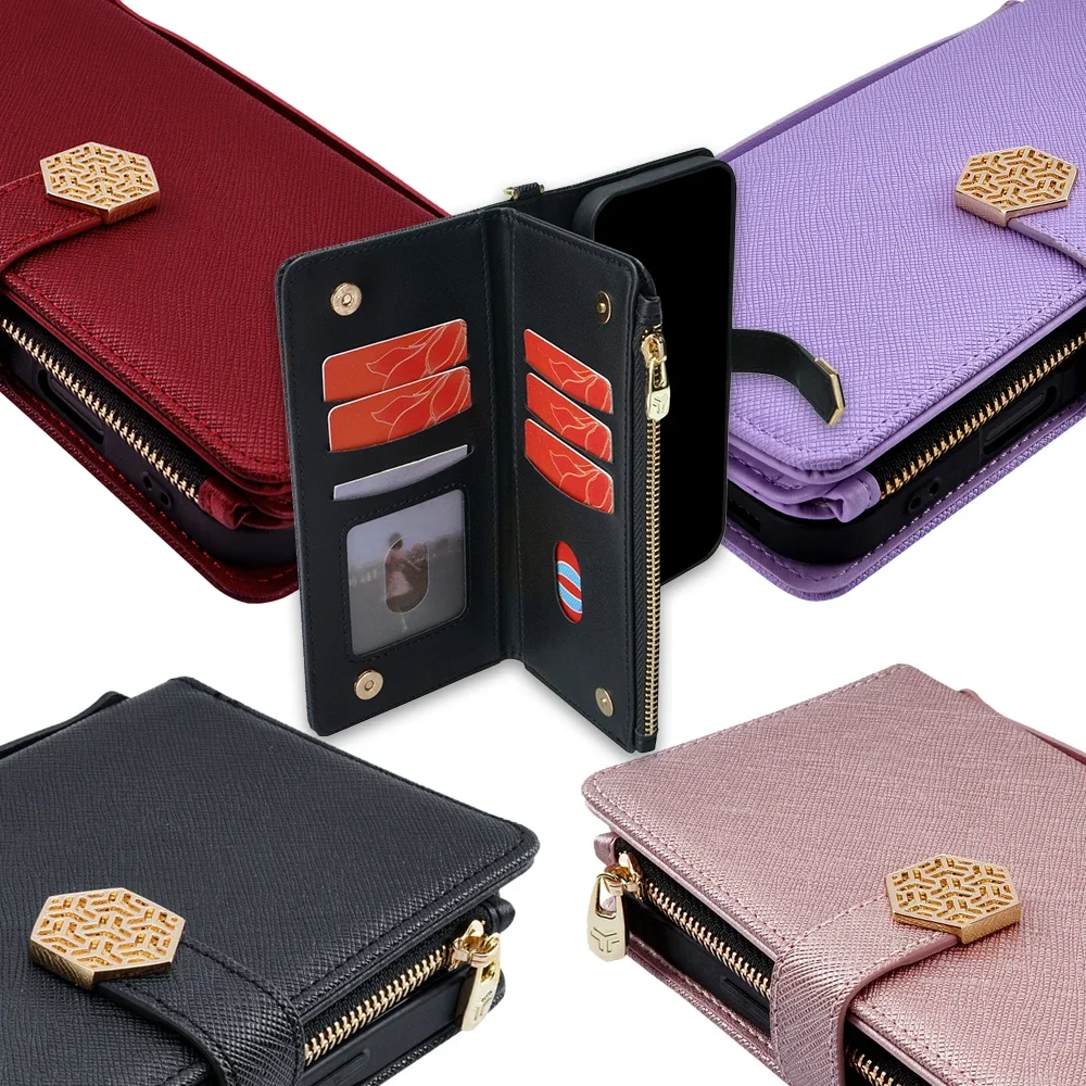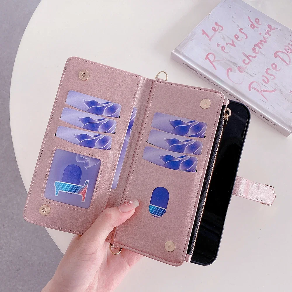 Fashion Flip Card Slots Leather Wallet Case for iPhone With Metal Strap
