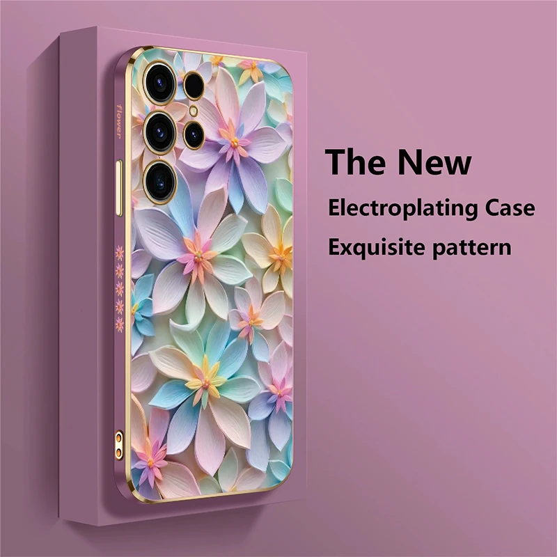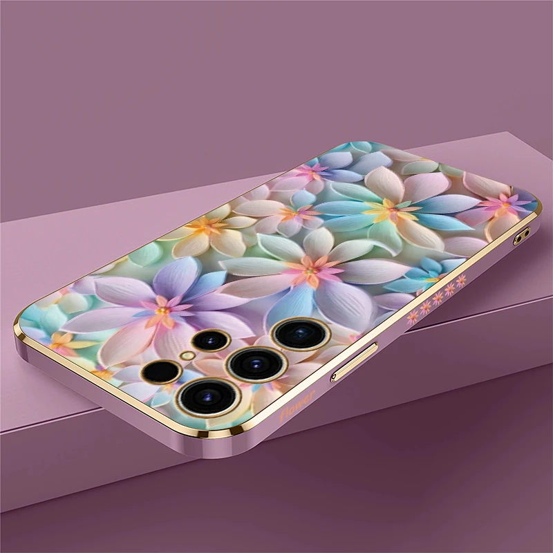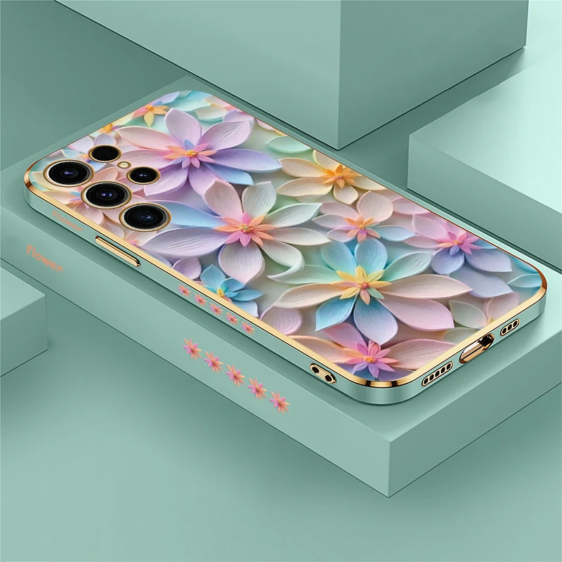 Flower Pattern Plating Silicone Shockproof Case For Samsung