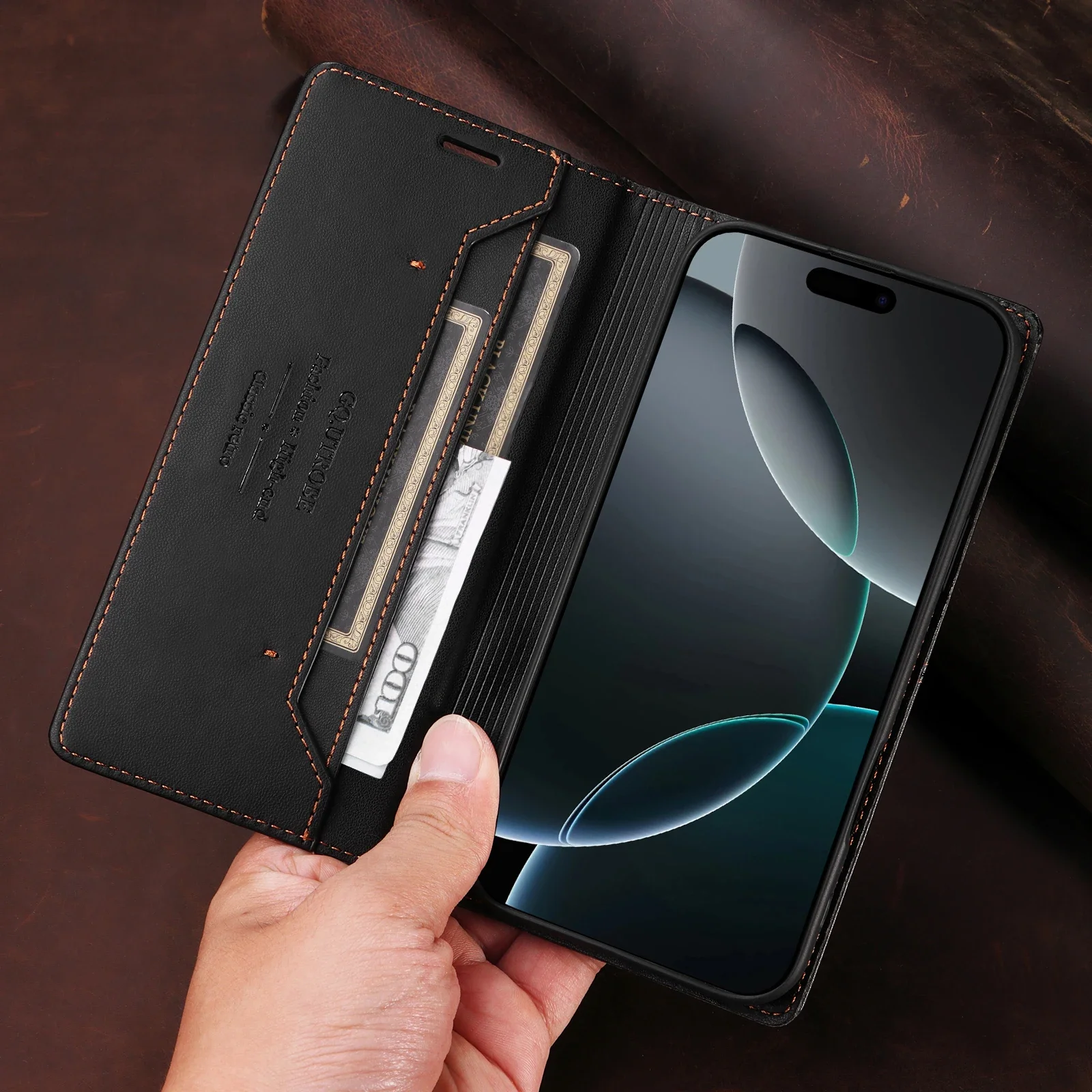 RFID Flip Leather Magnetic Wallet Case for Samsung
