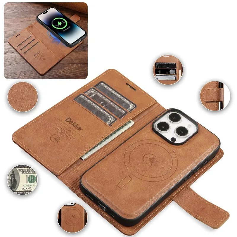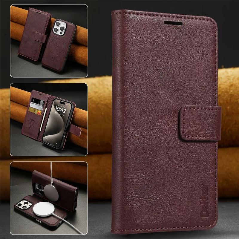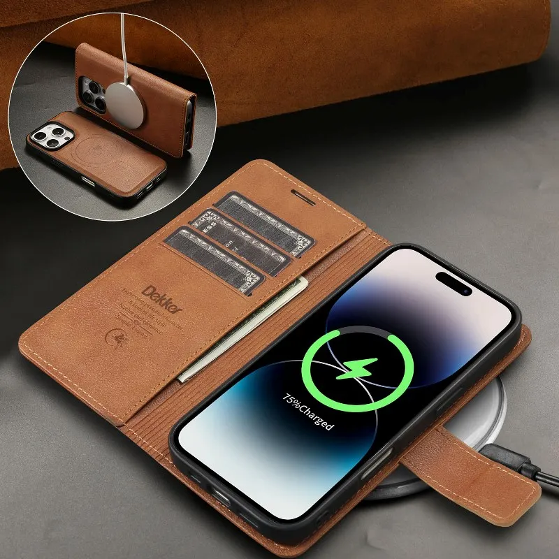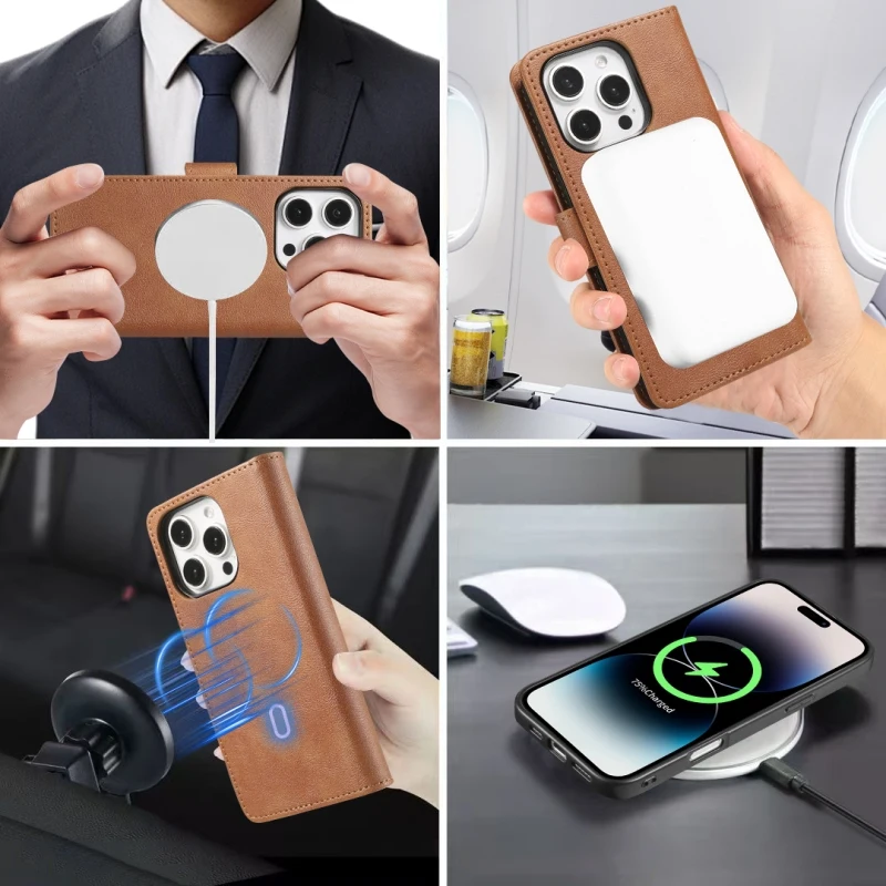 Magsafe Magnetic Leather Detachable Flip Wallet Case For iPhone