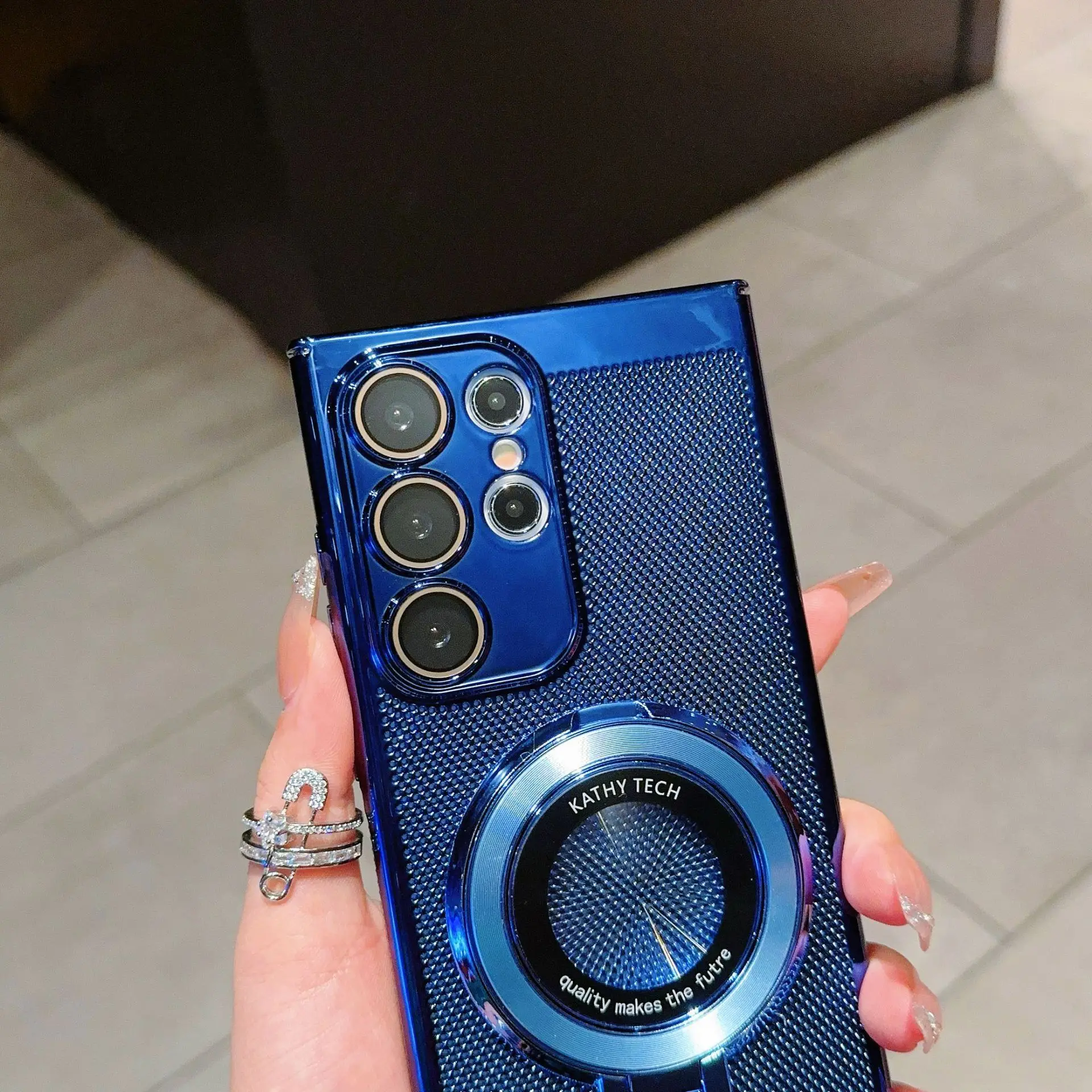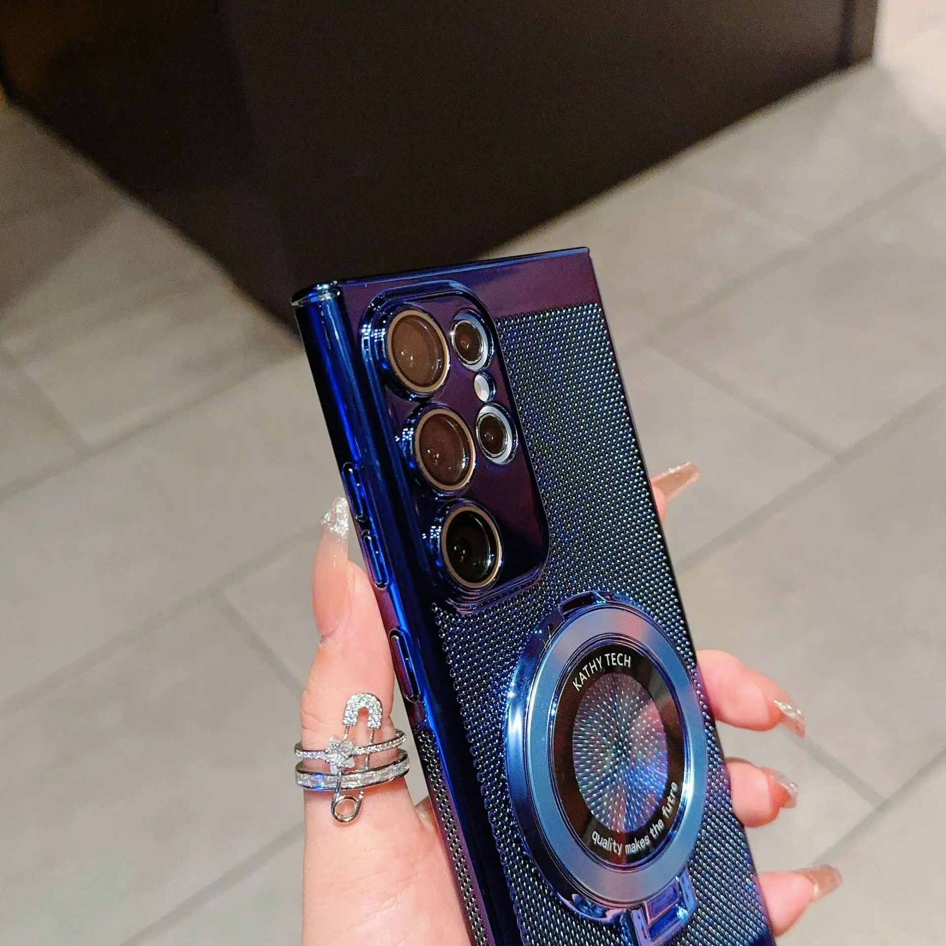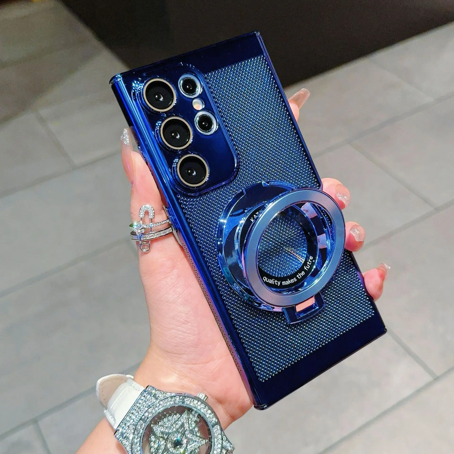 Heat Dissipate Stand Lens Film Anti-fall Electroplated Case for Samsung