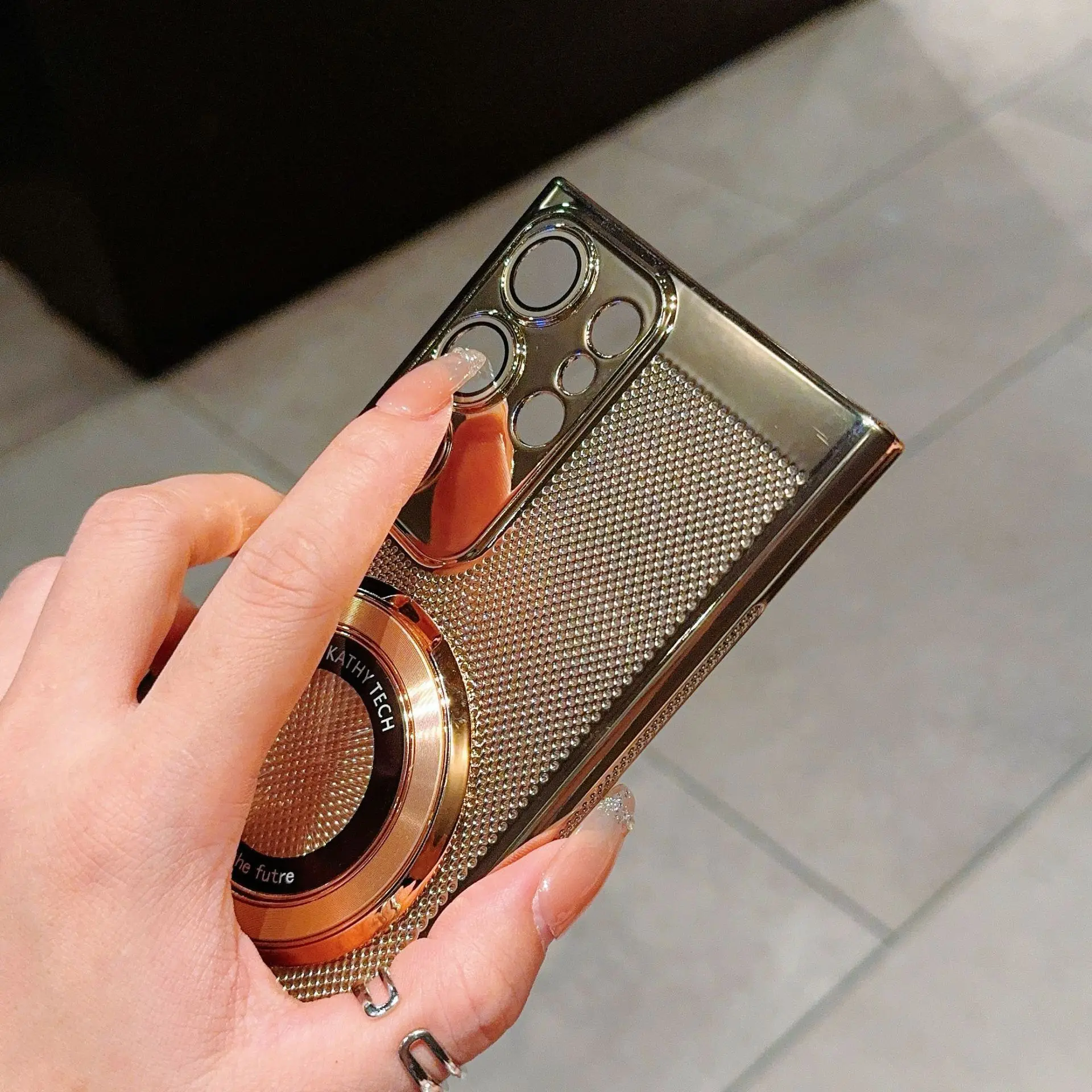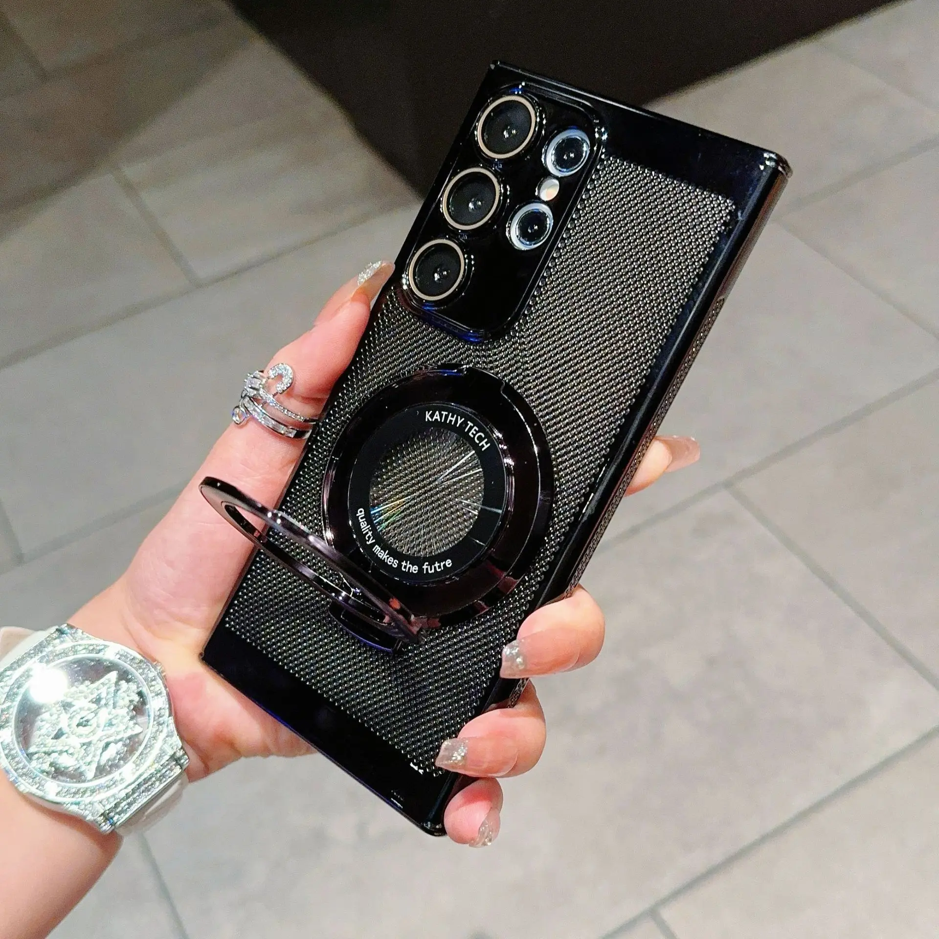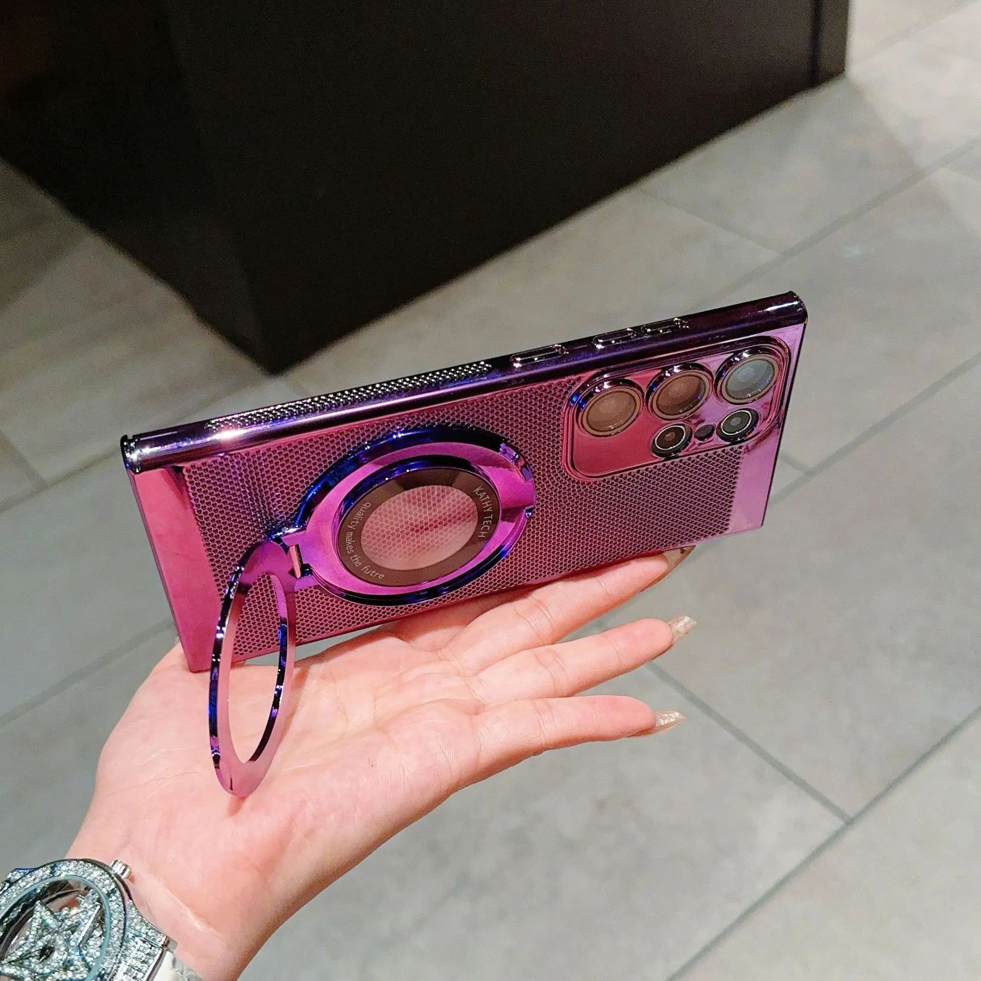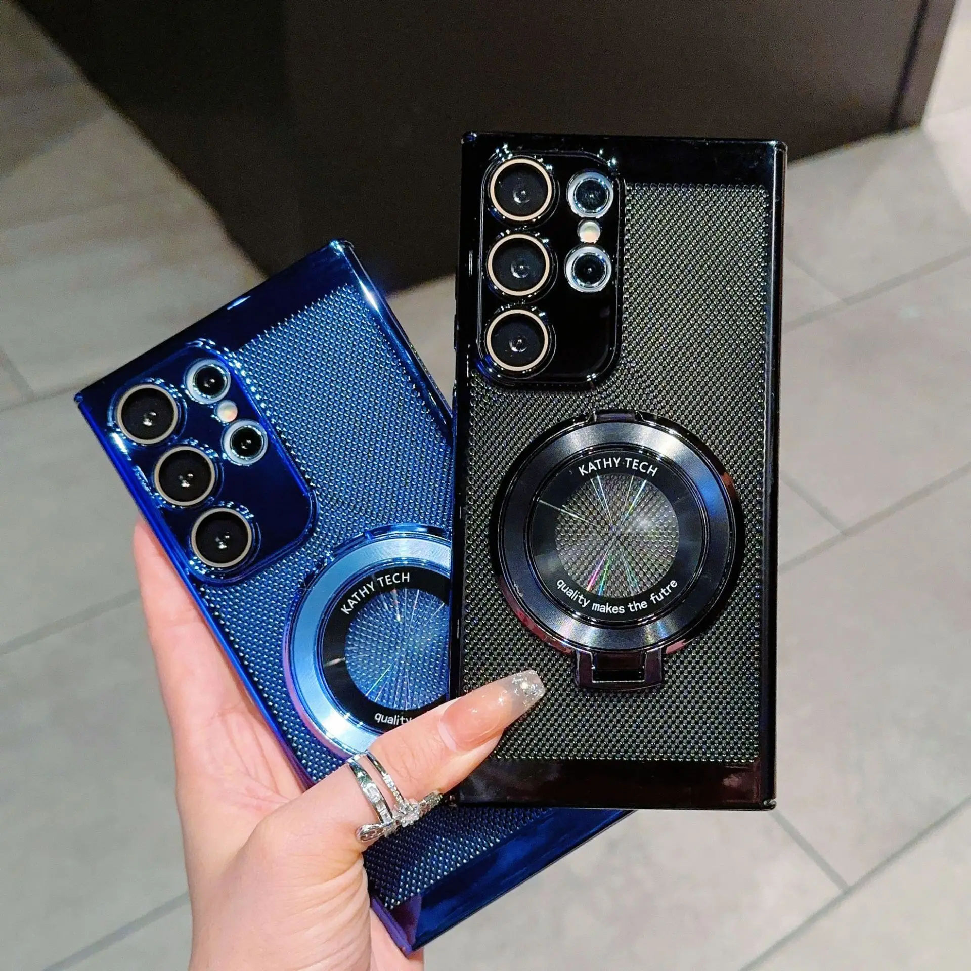 Heat Dissipate Stand Lens Film Anti-fall Electroplated Case for Samsung