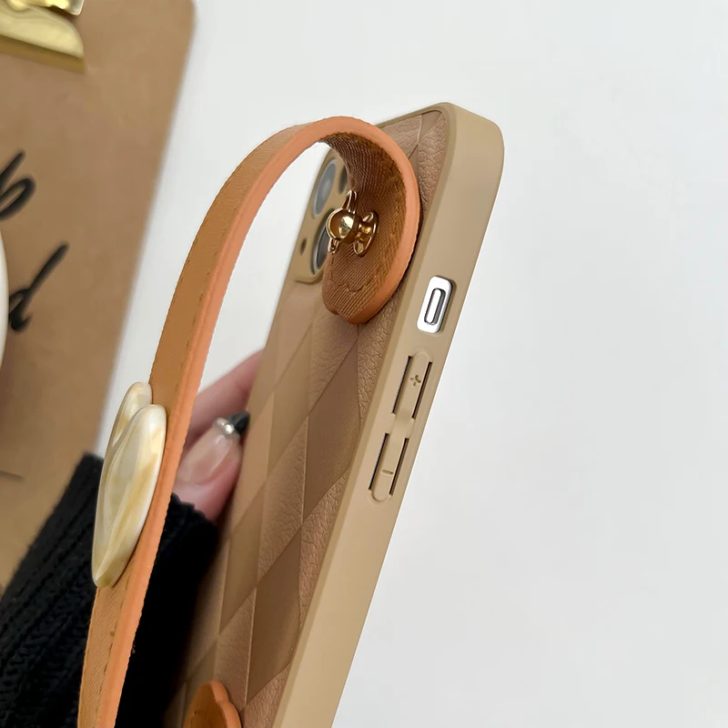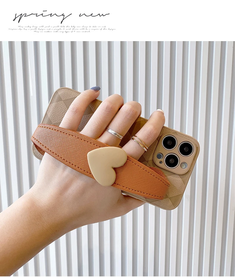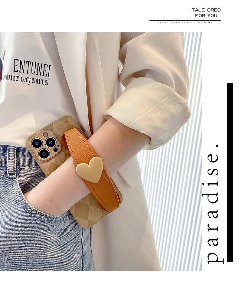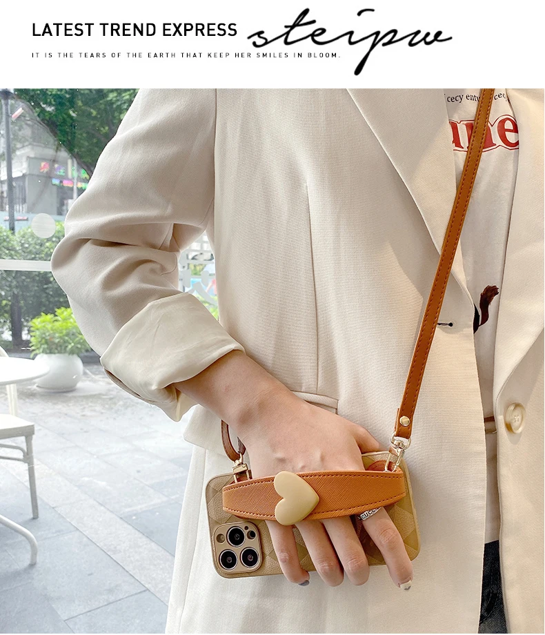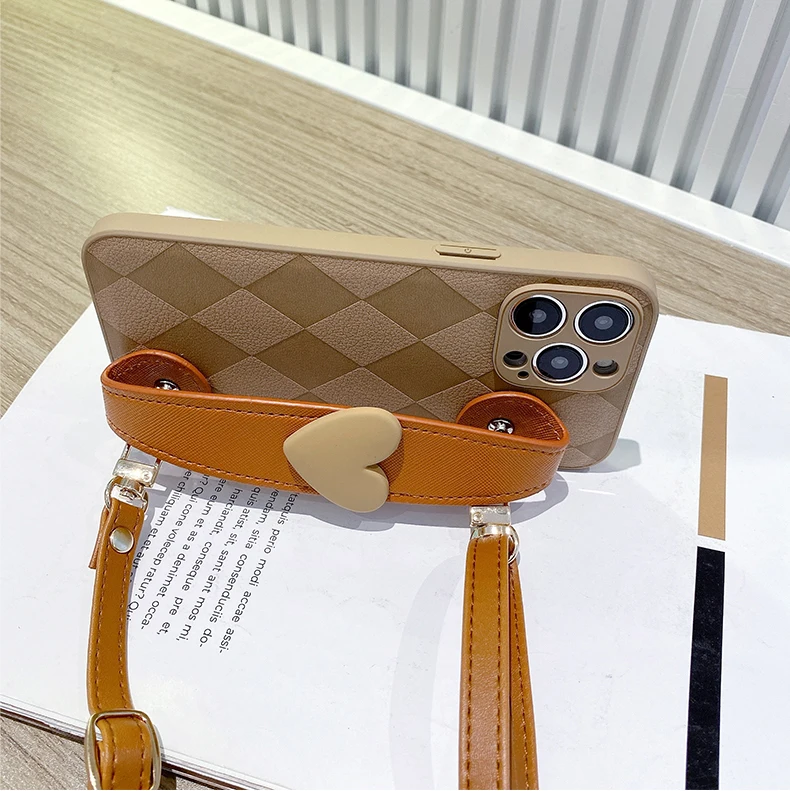 Rhombus Heart Wristband Crossbody Case for IPhone