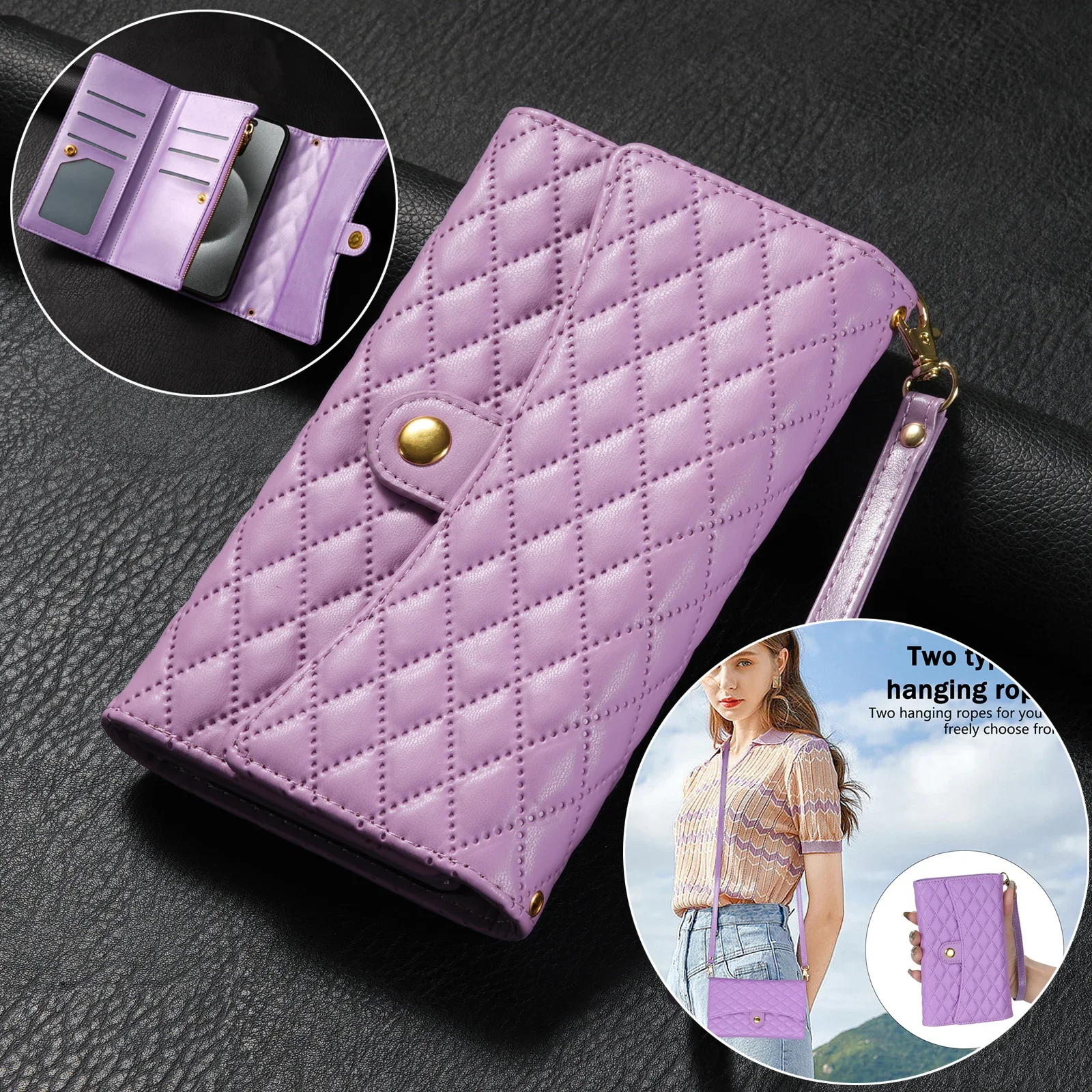 Crossbody Lanyard Card Wallet Leather Case For Samsung