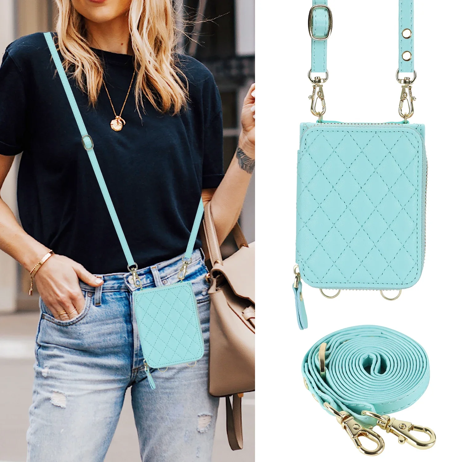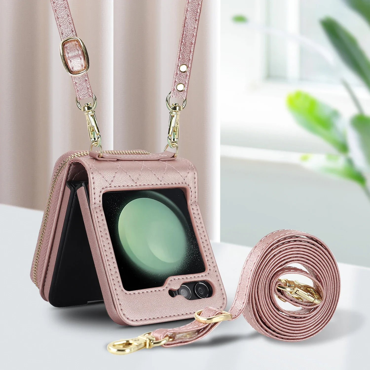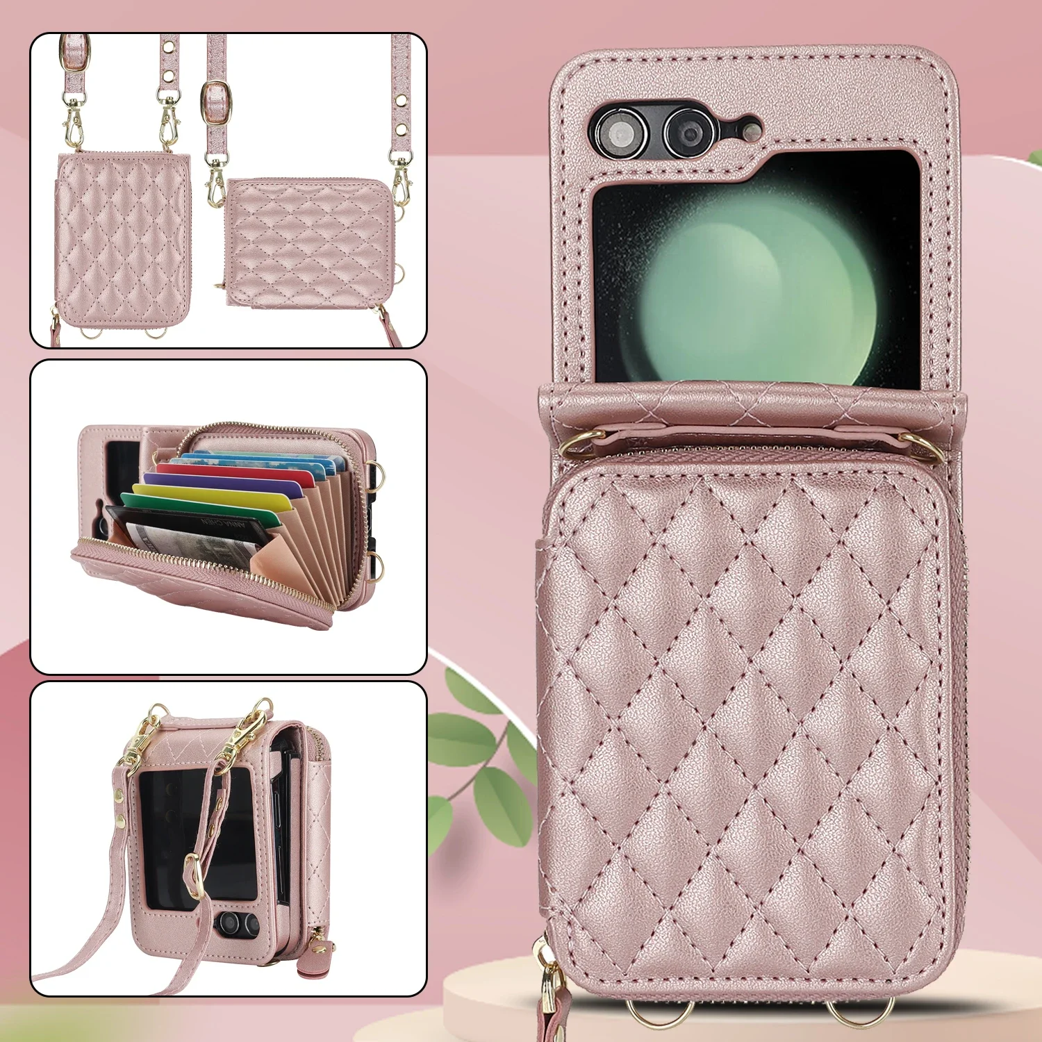 Crossbody Zipper Leather Case for Samsung